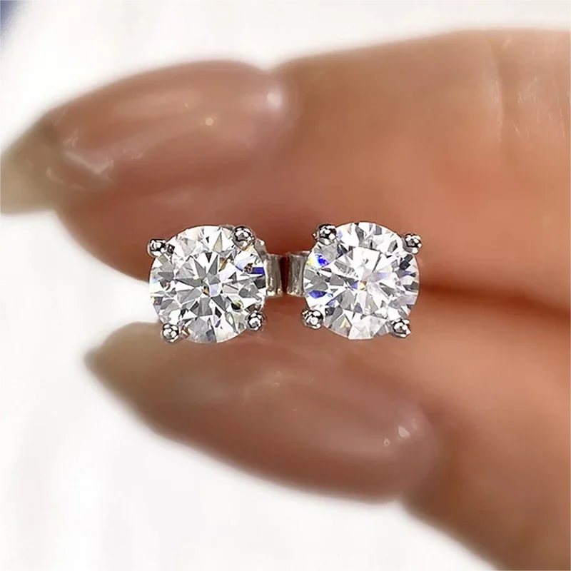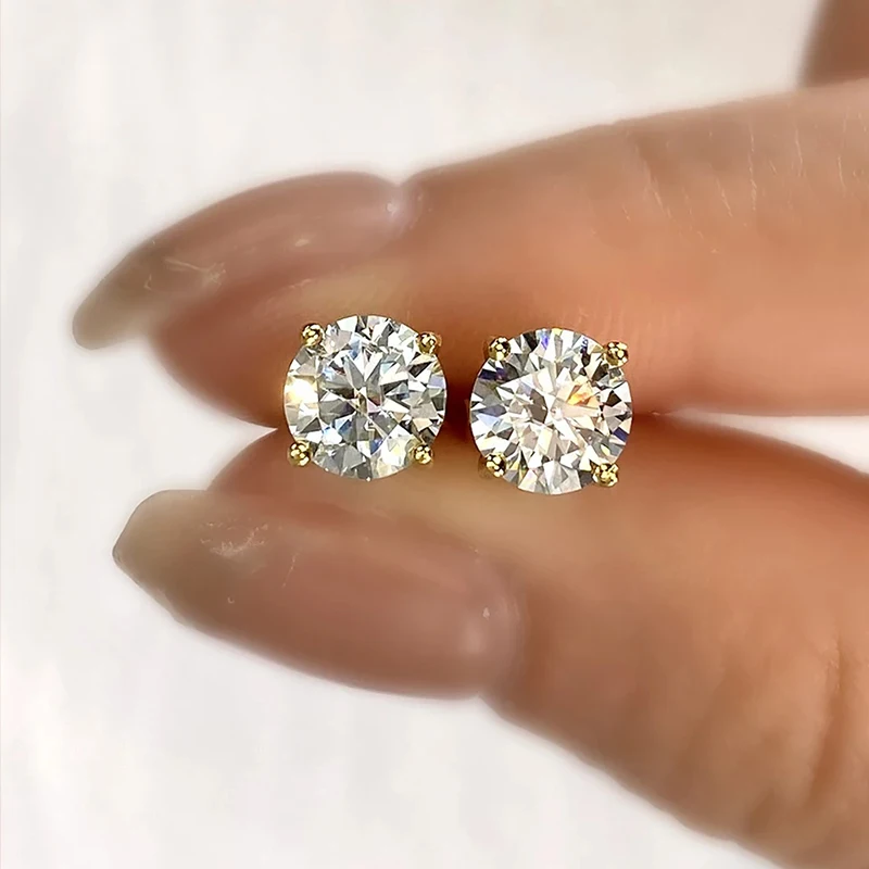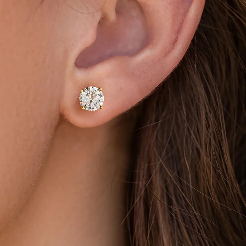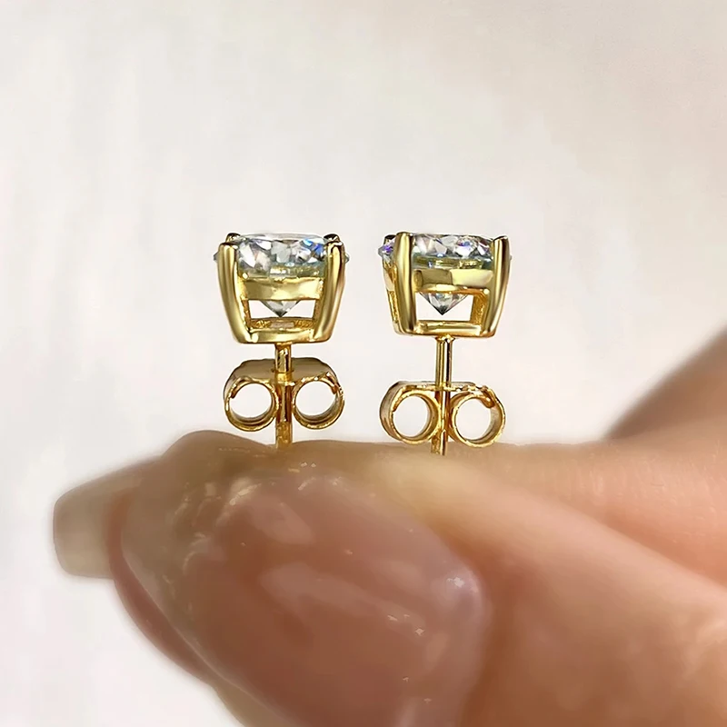 0.5ct-2ct D Color Certified Moissanite Stud Earrings Lab Created Diamond 925 Sterling Silver 18k Gold Plated Wedding Jewelry