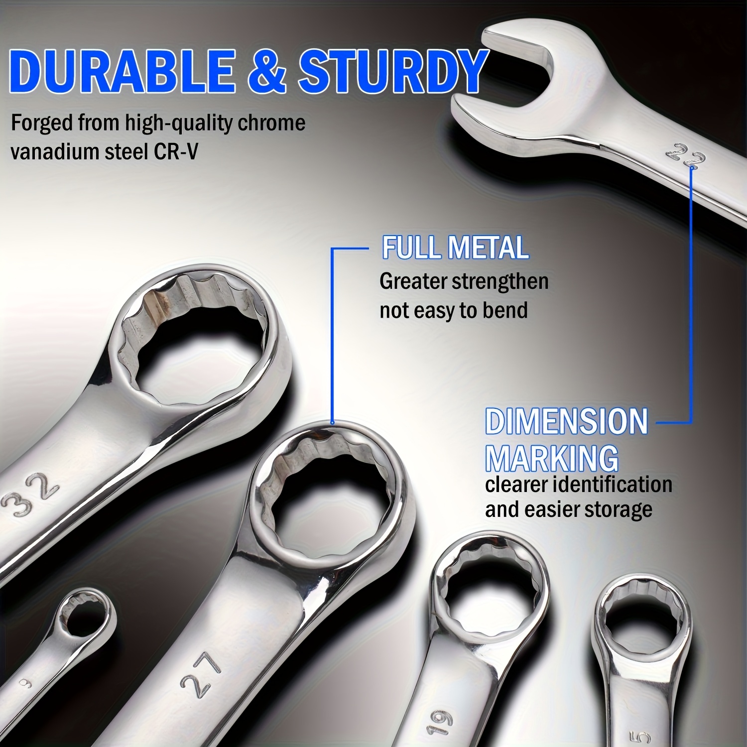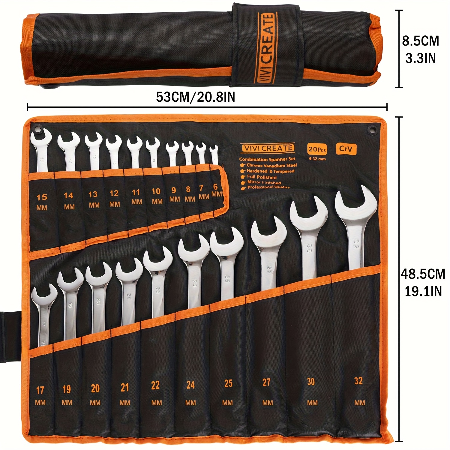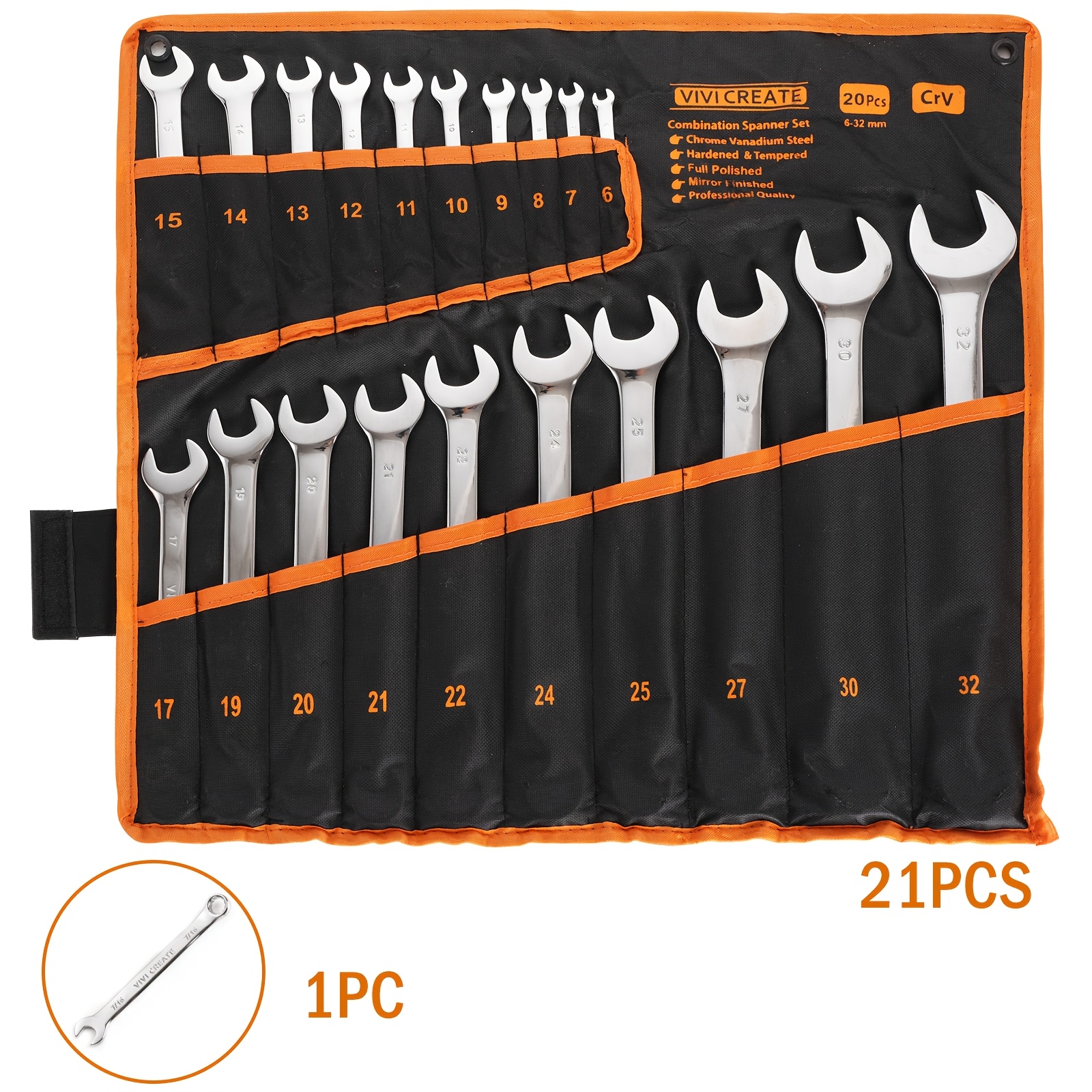 1/21pcs Metric Combination Wrench Set(with Roll-up Pouch), 6-32mm, Open End, Cr-V, Ideal for Household, Garage, Workshop, Auto Repairs