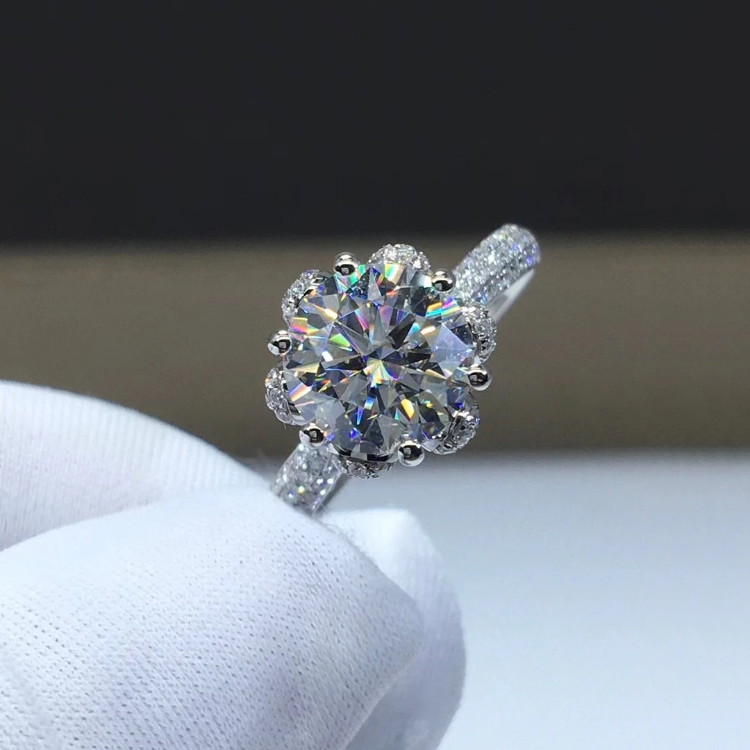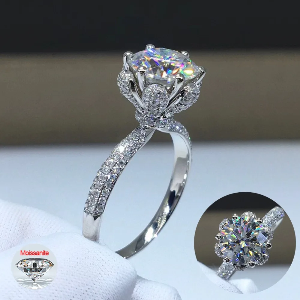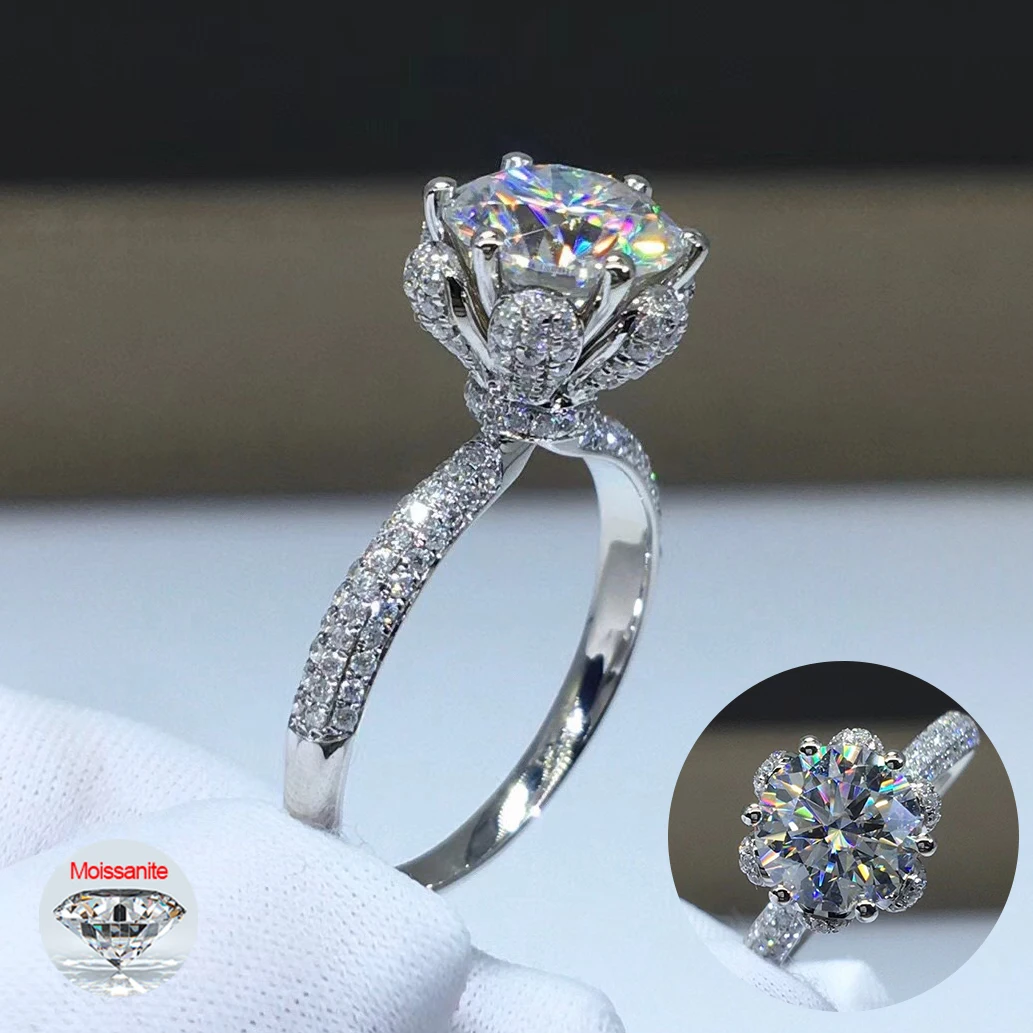 1/2CT Real Moissanite Ring For Women 925 Sterling Silver Flower Shape Diamond Wedding Engagement Band Fine Jewelry Certified