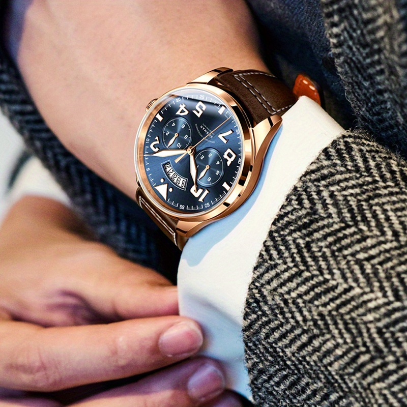 1 Men’s Automatic Mechanical Watch, Synthetic Faux Sapphire Mirror, Wear- And Scratch-, Integrates The Functions Of Month, Calendar, Week And Leap Year, 0.47-inch Slim Case, with 8.66-inch, No Battery Required 1968.5inch Waterproof, Men’s Watch