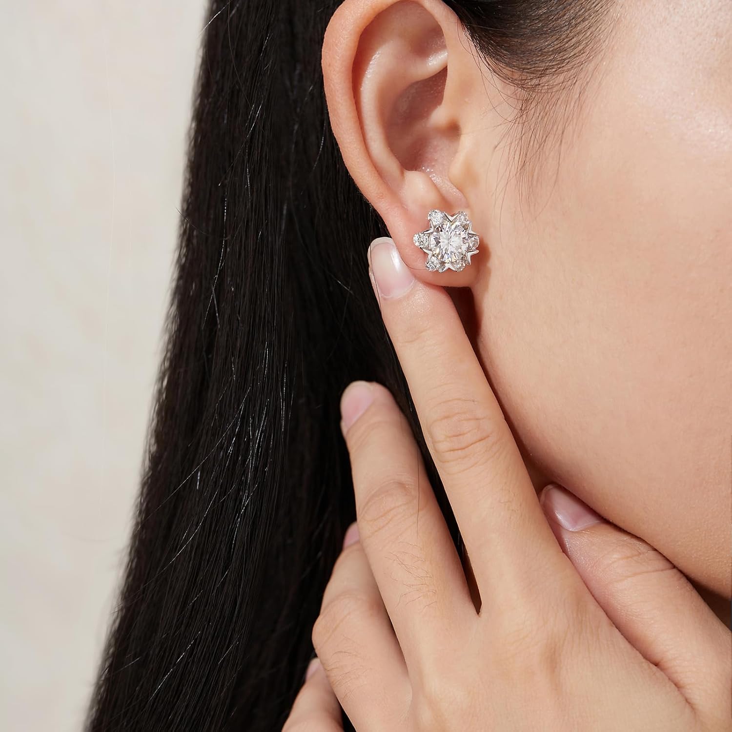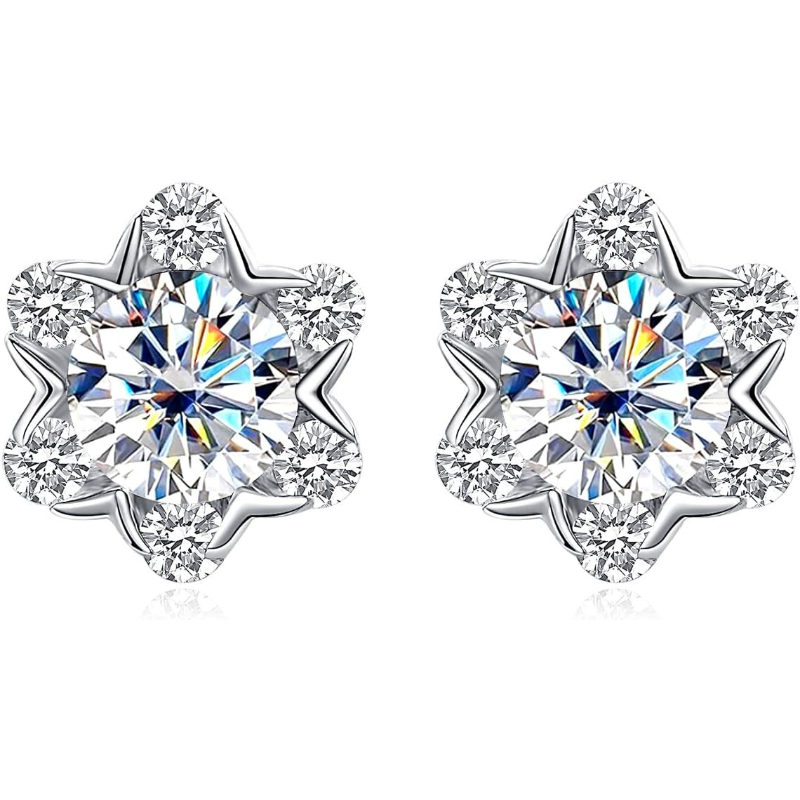 1 Pair Lab-Grown Earrings | Six-Prong Ice Flower Design, D Color VVS1 Clarity, 1 Carat Round Cut, S925 Sterling Silver, Includes IGI Certificate, Suitable for Parties/Travel/Weddings