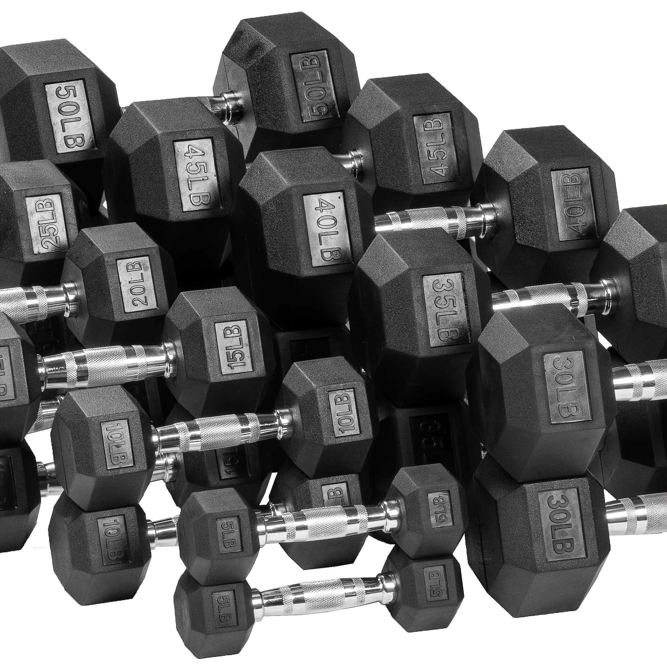 10/15/20/25/30/35/40/45/50 LB Heavy-Duty Hex Rubber Coated Dumbbell with Non-Slip Textured Handle – Rustproof Chrome Weight for Total Body Strength Training, Home Gym Workouts – Durable Weightlifting Equipment for &