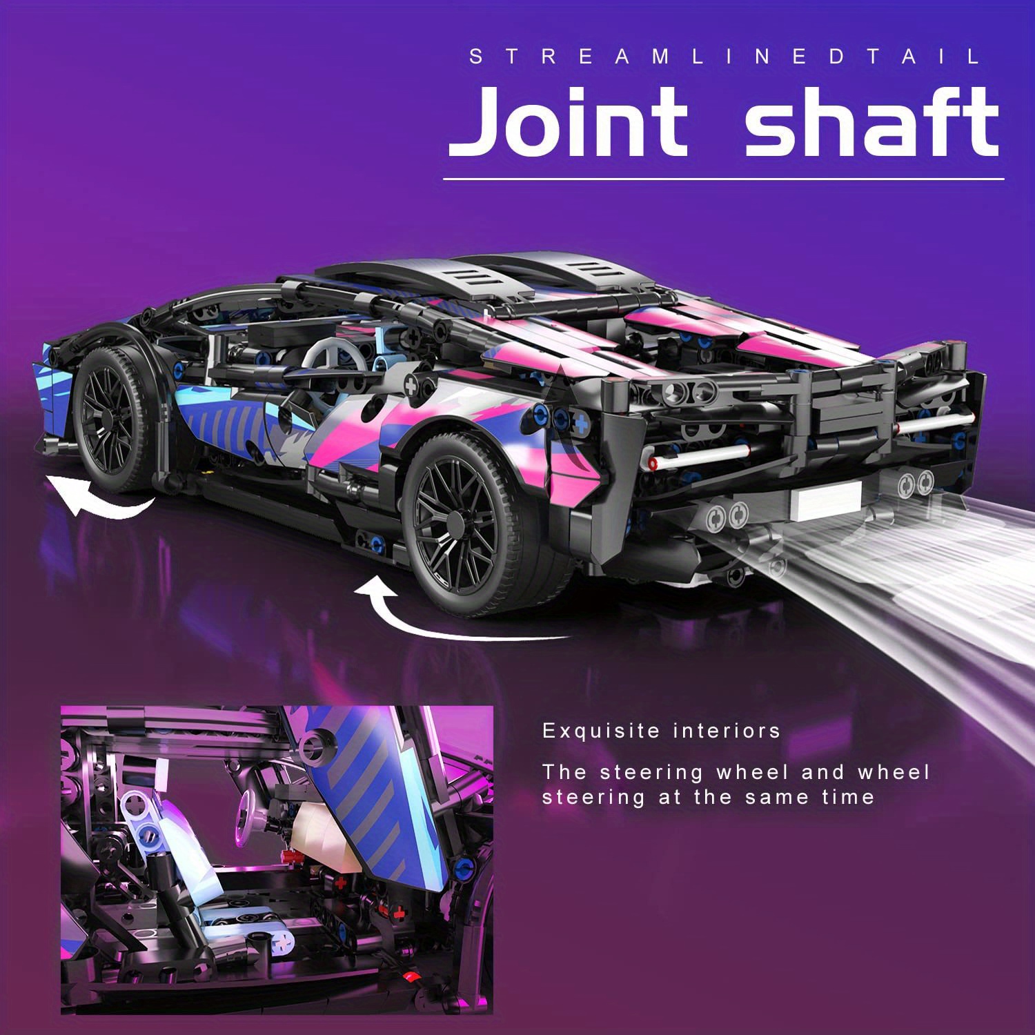 1:14 Scale MOC Supercar Model Set, Car with LED Lights, Dual Mode Dynamic Version, Controllable 1000+pcs DIY Construction Toy, Collectible Racing Car Toys for Boys, Birthday Gifts for Car Lovers