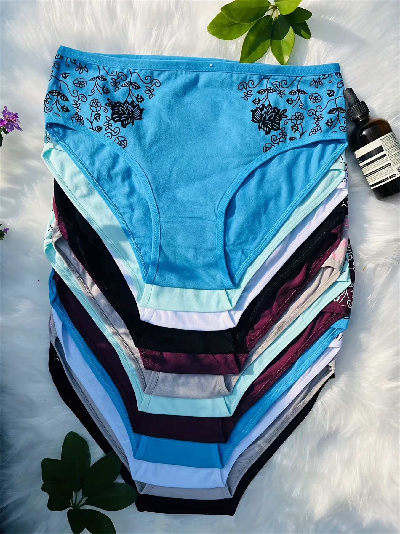12pcs/Set Mid Waist Pure Print Panties Women Body Slimming Underwear Breathable Ladies Briefs Sexy Comfort Ladies Lingerie (6 Color Random Delivery)
