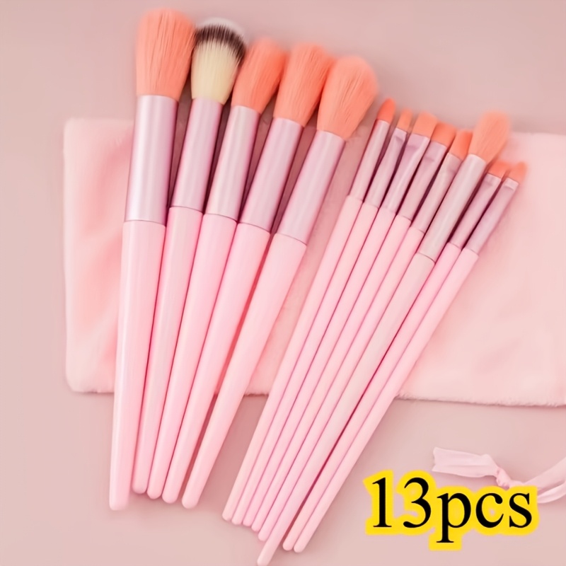 13pcs Soft Fluffy Makeup Brush Set | Ideal for Foundation, Powder, Eyeshadow, Mixing – Suitable for All Skin Types, Pink Brushes, Essential for Party and Daily Use, Plastic Material