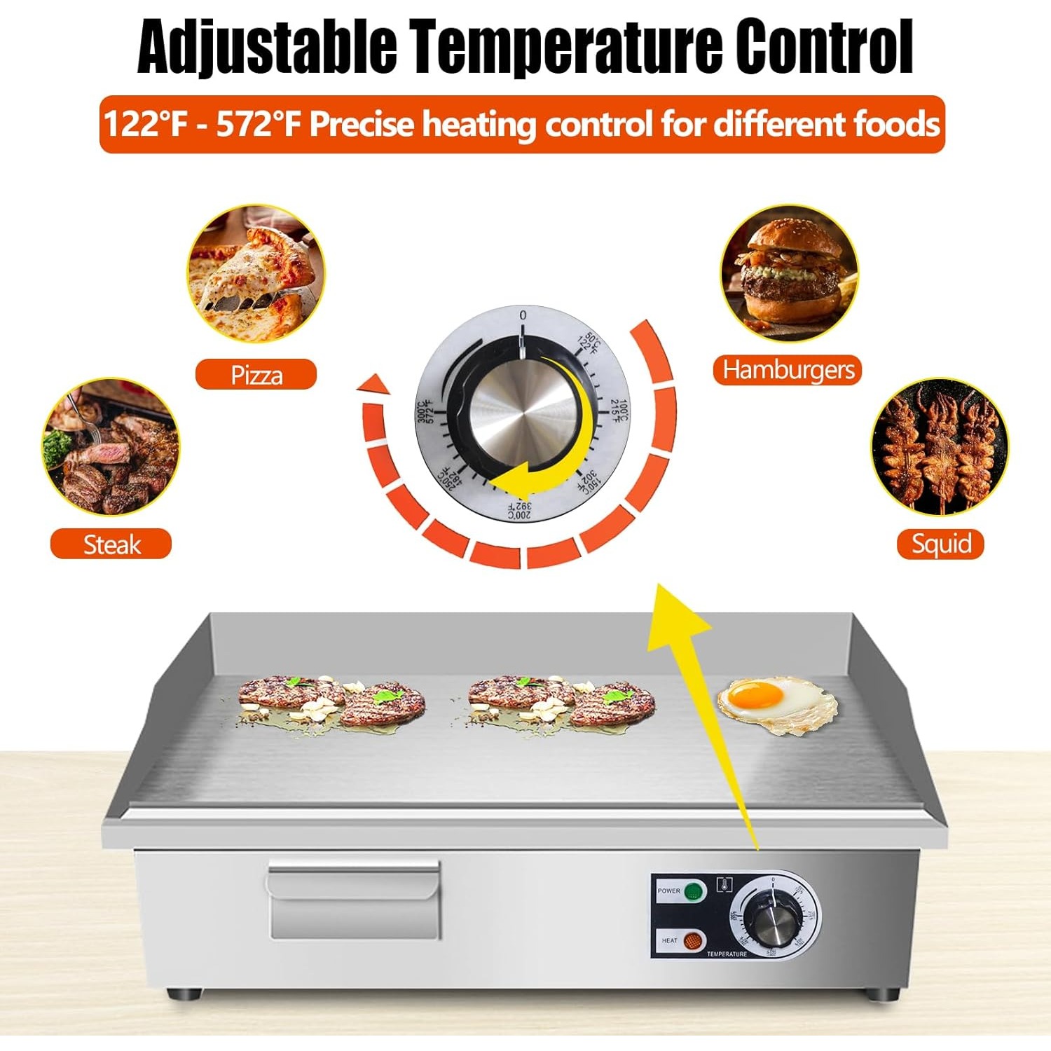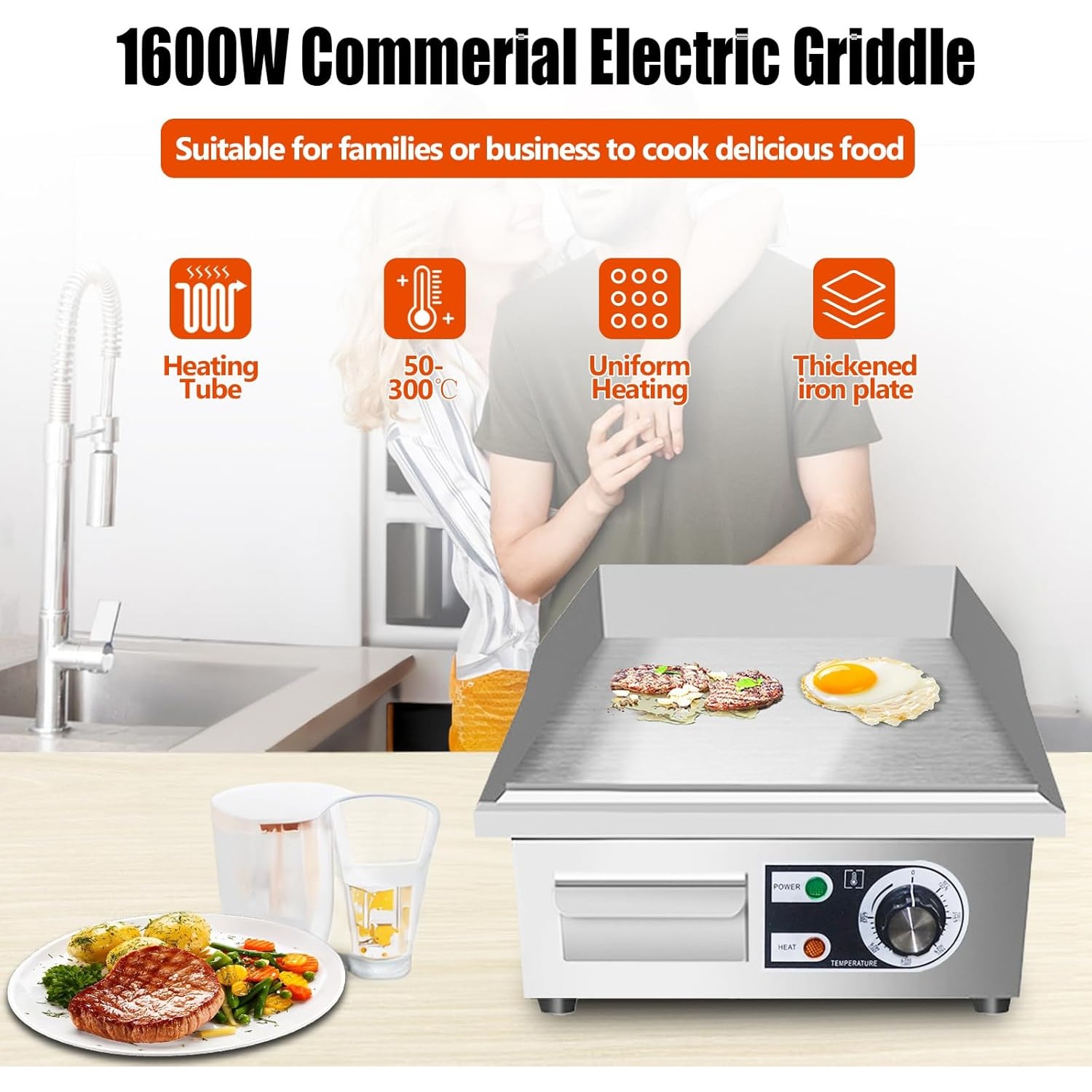 14 “commercial electric grill, radio surface flat-top grill, 110Velectric flat-top grill, non-stick restaurant teppanyaki stainless steel grill, adjustable temperature control