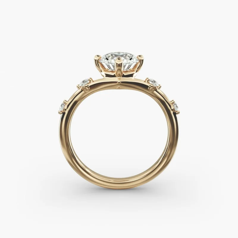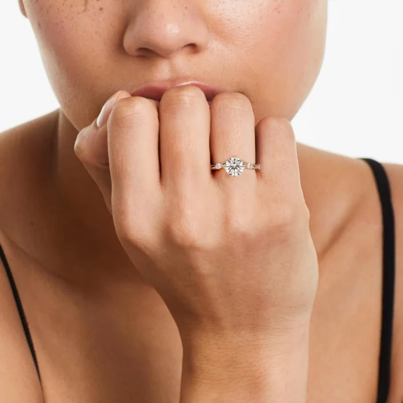 14K Yellow Gold Sidestone Diamond Engagement Ring 0.5-3.0ct Round Cut Lab Grown Diamond IGI Certified Genuine Diamond Ring quantity