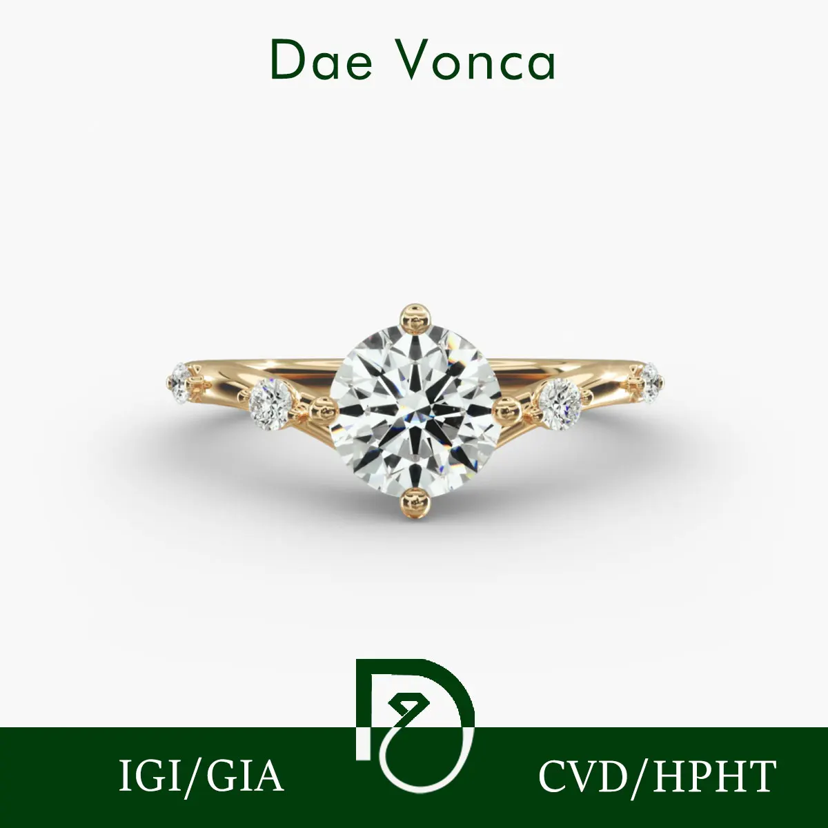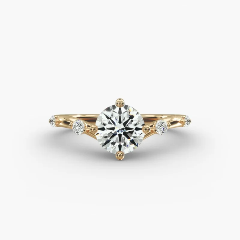 14K Yellow Gold Sidestone Diamond Engagement Ring 0.5-3.0ct Round Cut Lab Grown Diamond IGI Certified Genuine Diamond Ring