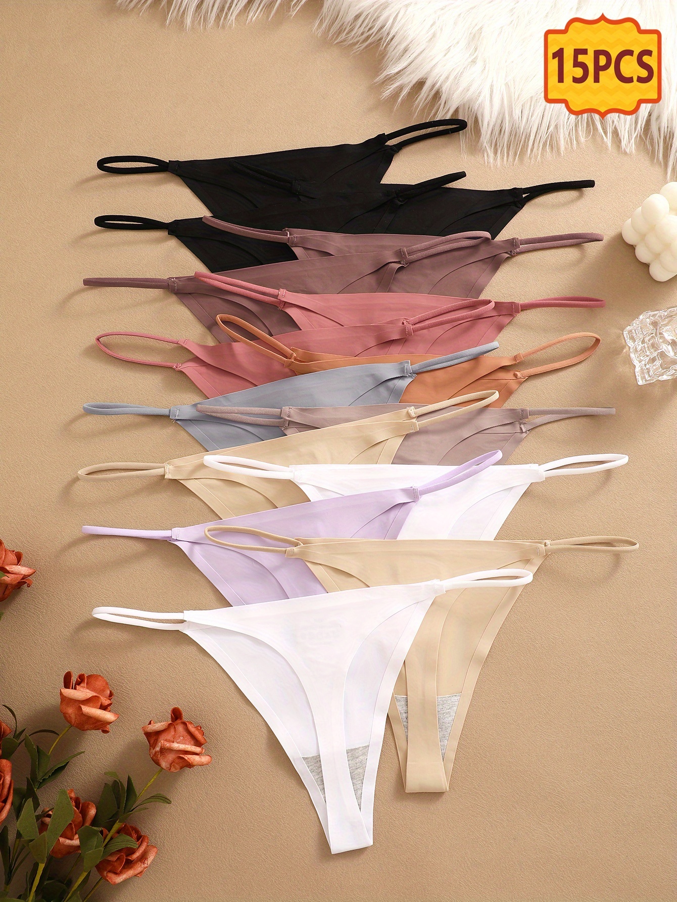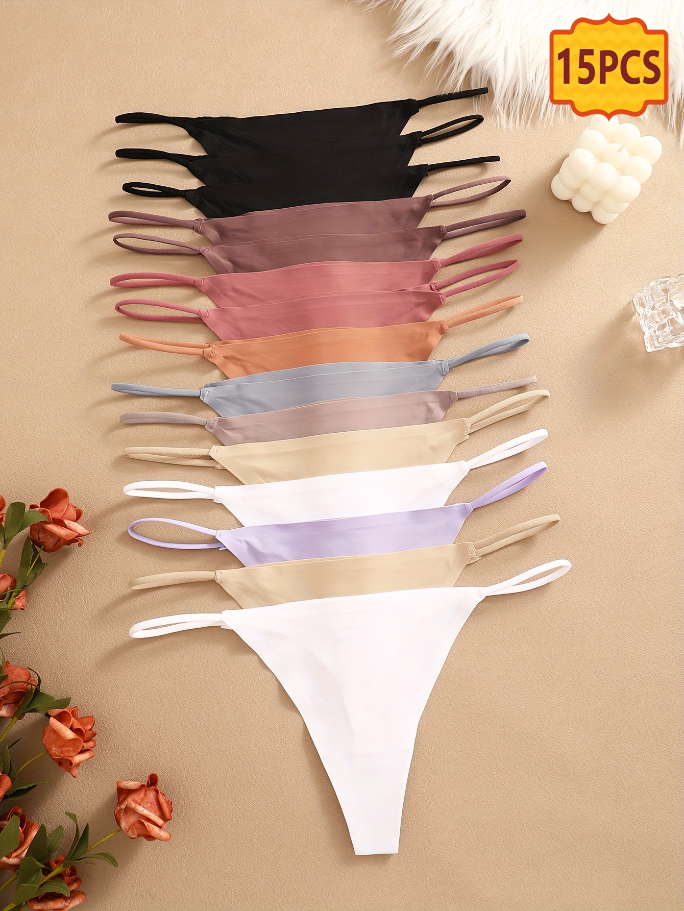 15pcs Seamless Thong Set, Sexy, Comfortable, Breathable, Skin Friendly Seamless Underwear, Suitable For Daily Commuting, Women’S Underwear And Underwear