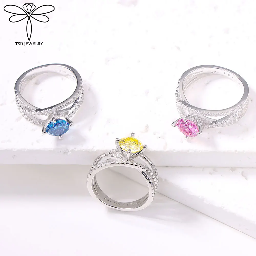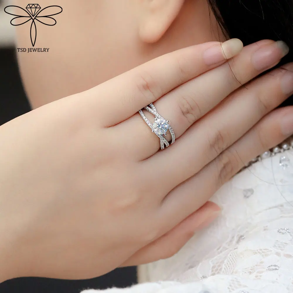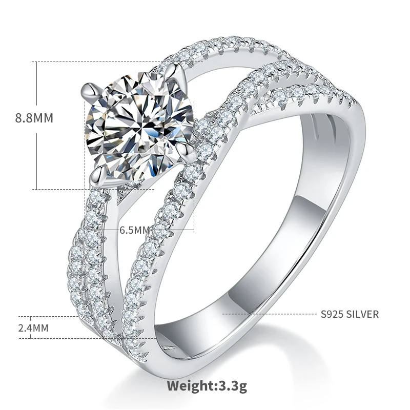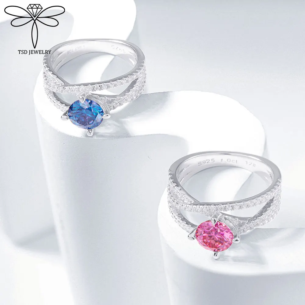 1ct D Color Moissanite Rings Certified Lab Grow Diamond Solid 925 Sterling Silver Wedding Rings Woman Party Sparkling Jewelry