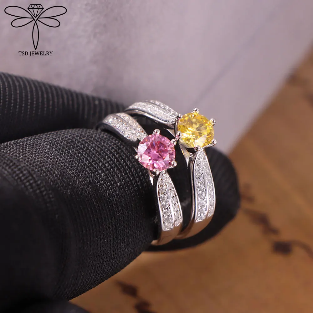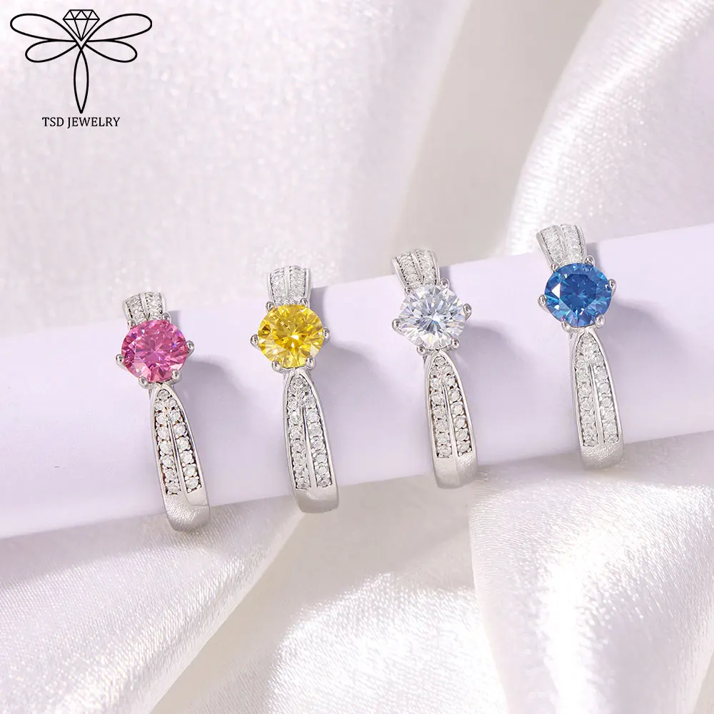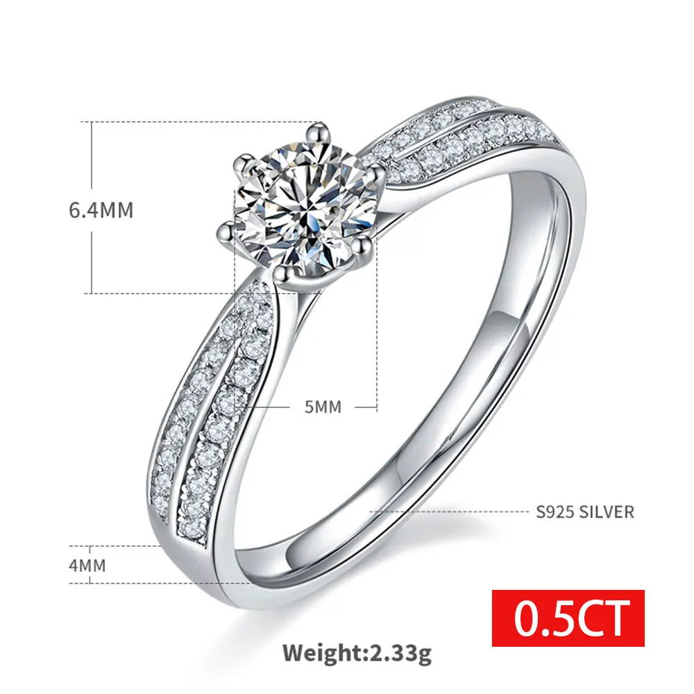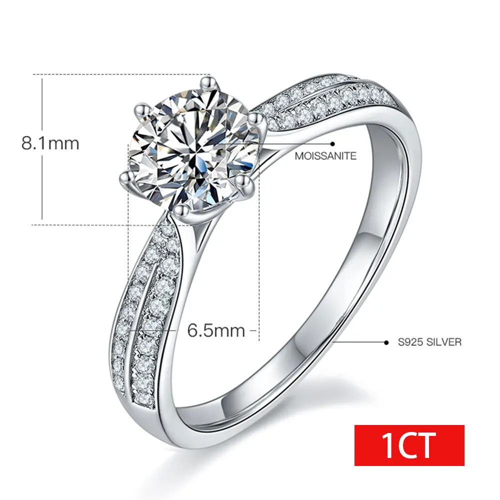 1ct S925 Sterling Silver Diamond Wedding Rings for Women D Color Certified Lab Grow Diamond Solid Band Moissanite Rings