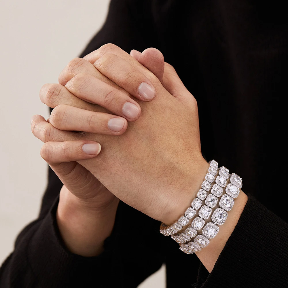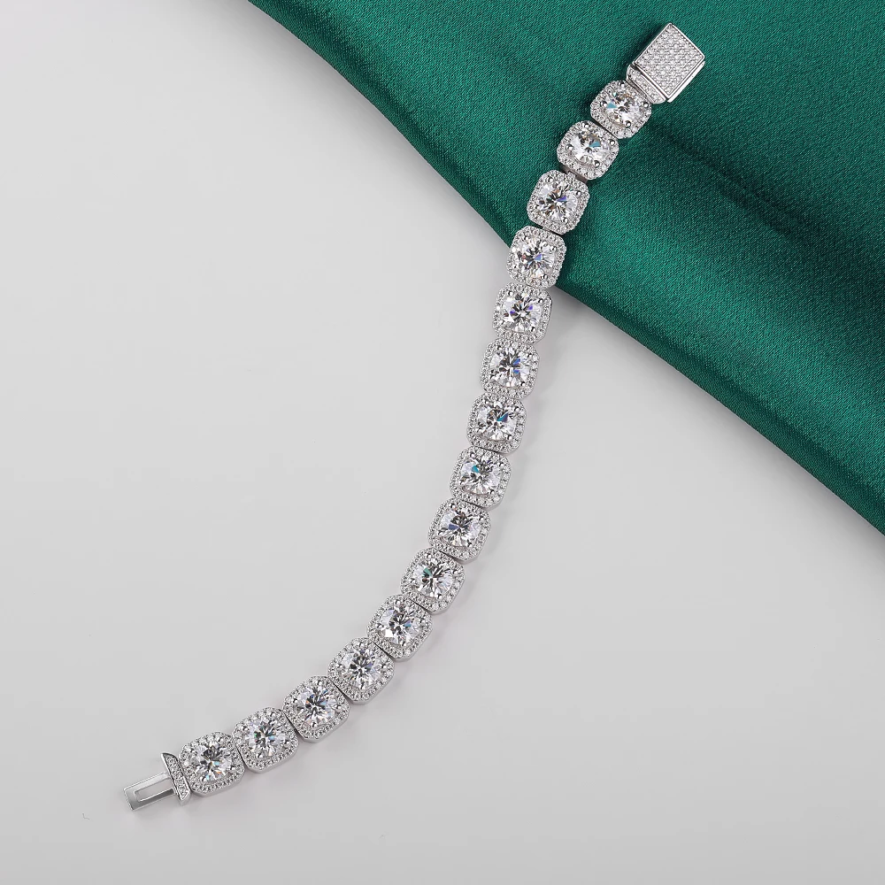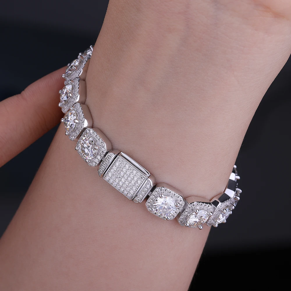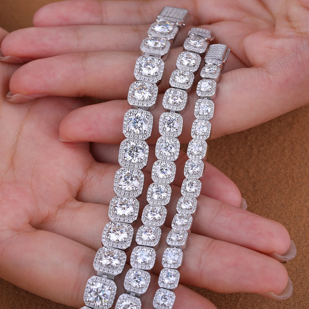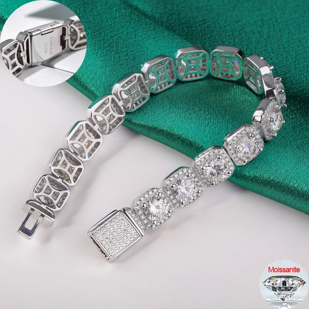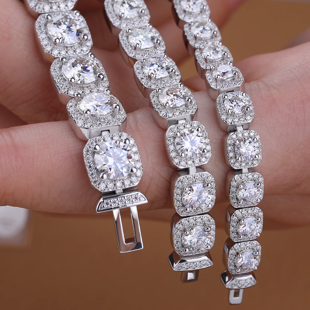 1CT Sparkling Full Moissanite Tennis Bracelet Certified Luxury Lab Diamond Bangle 925 Sterling Silver Fine Jewelry for Women Men
