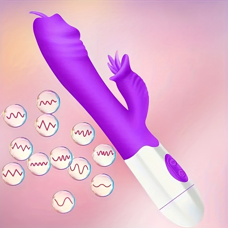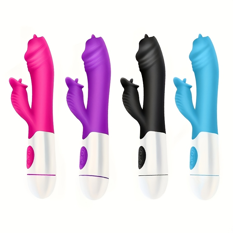 1pc 30 Speed Tongue Licking Dual Vibration Realistic Vaginal Massager (Battery Powered)