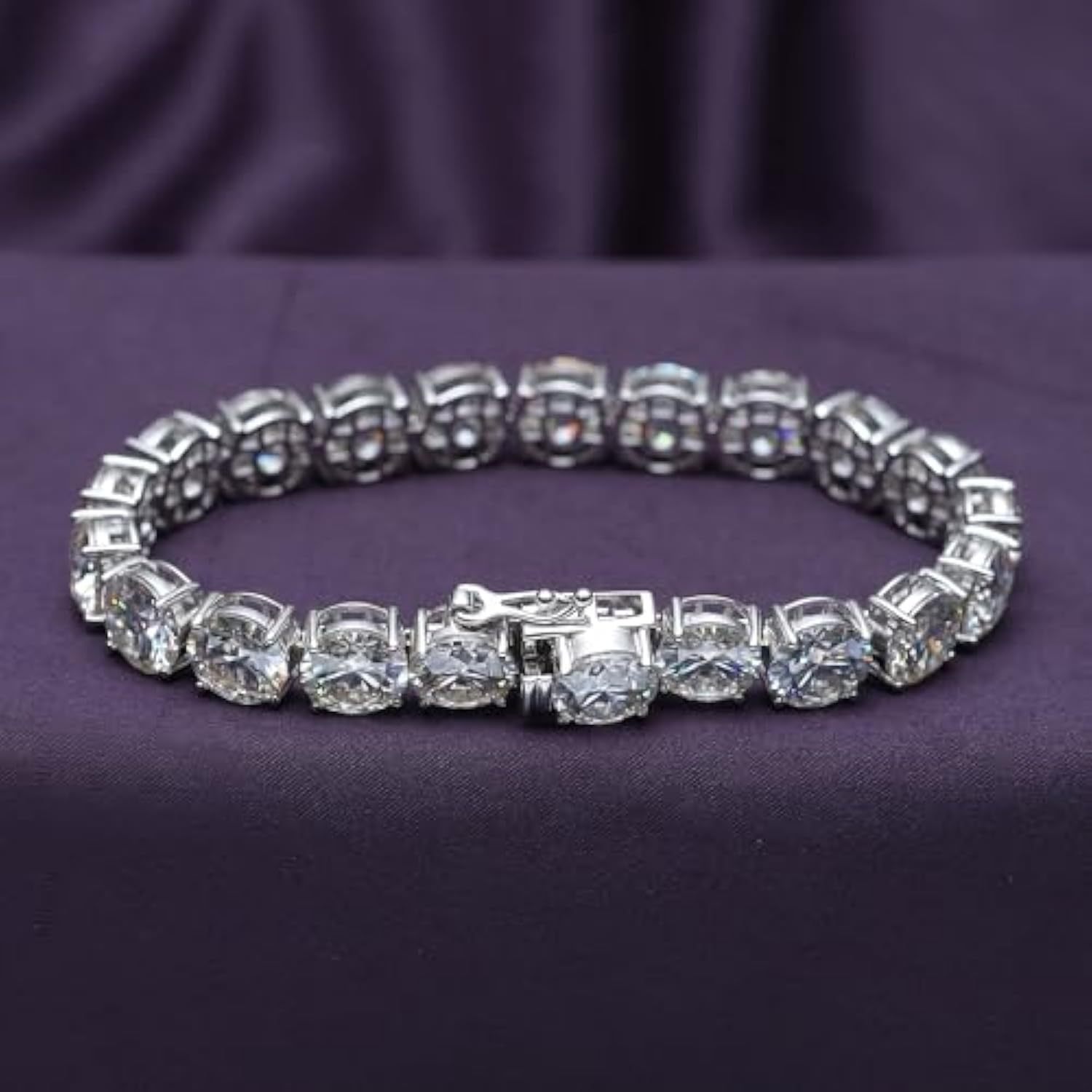 Solid 925 Sterling Silver Frame: To support the significant weight of the stones, the bracelet is forged in high-grade 925 Sterling Silver. It is finished with a thick rhodium plating to provide a brilliant white-gold luster and superior tarnish resistance.