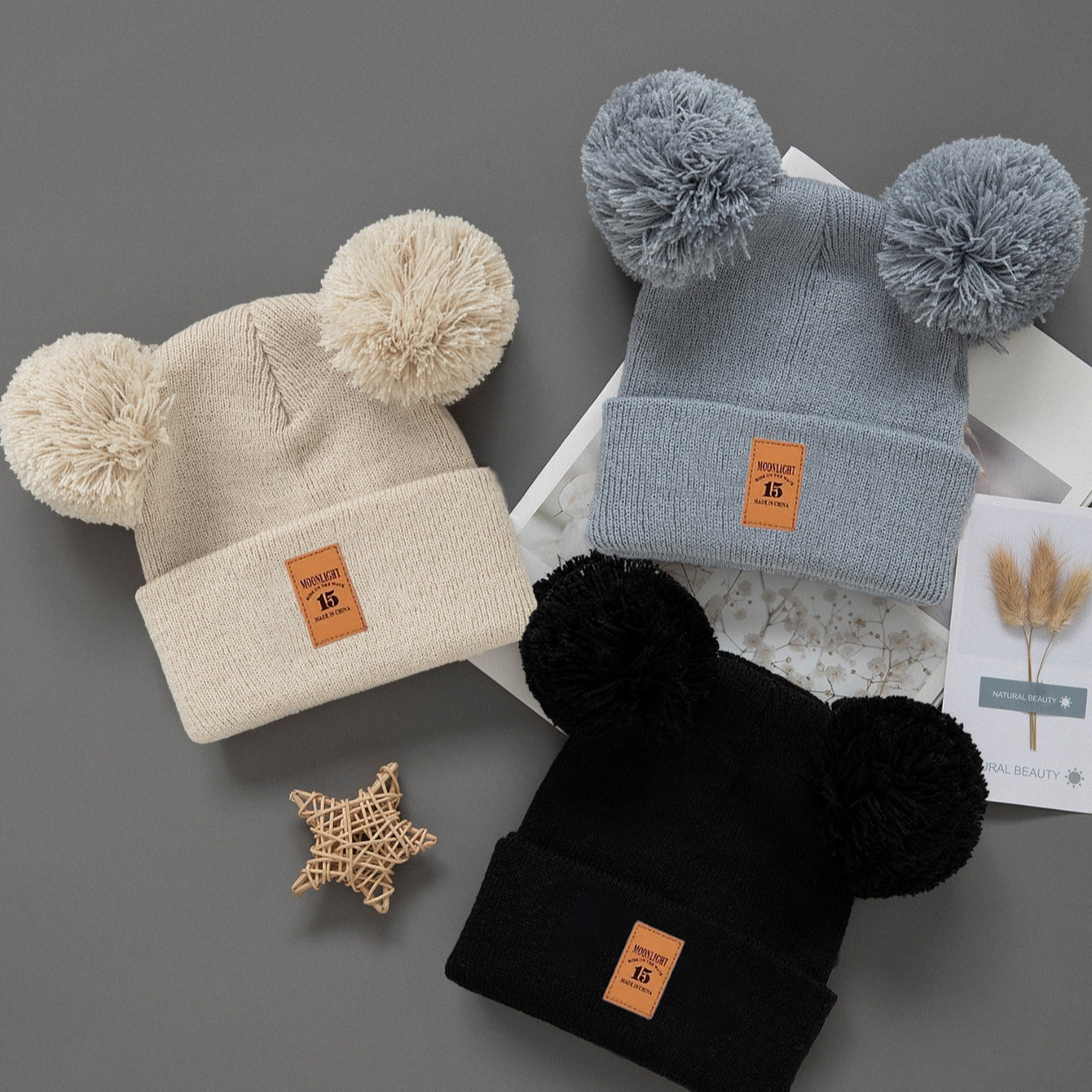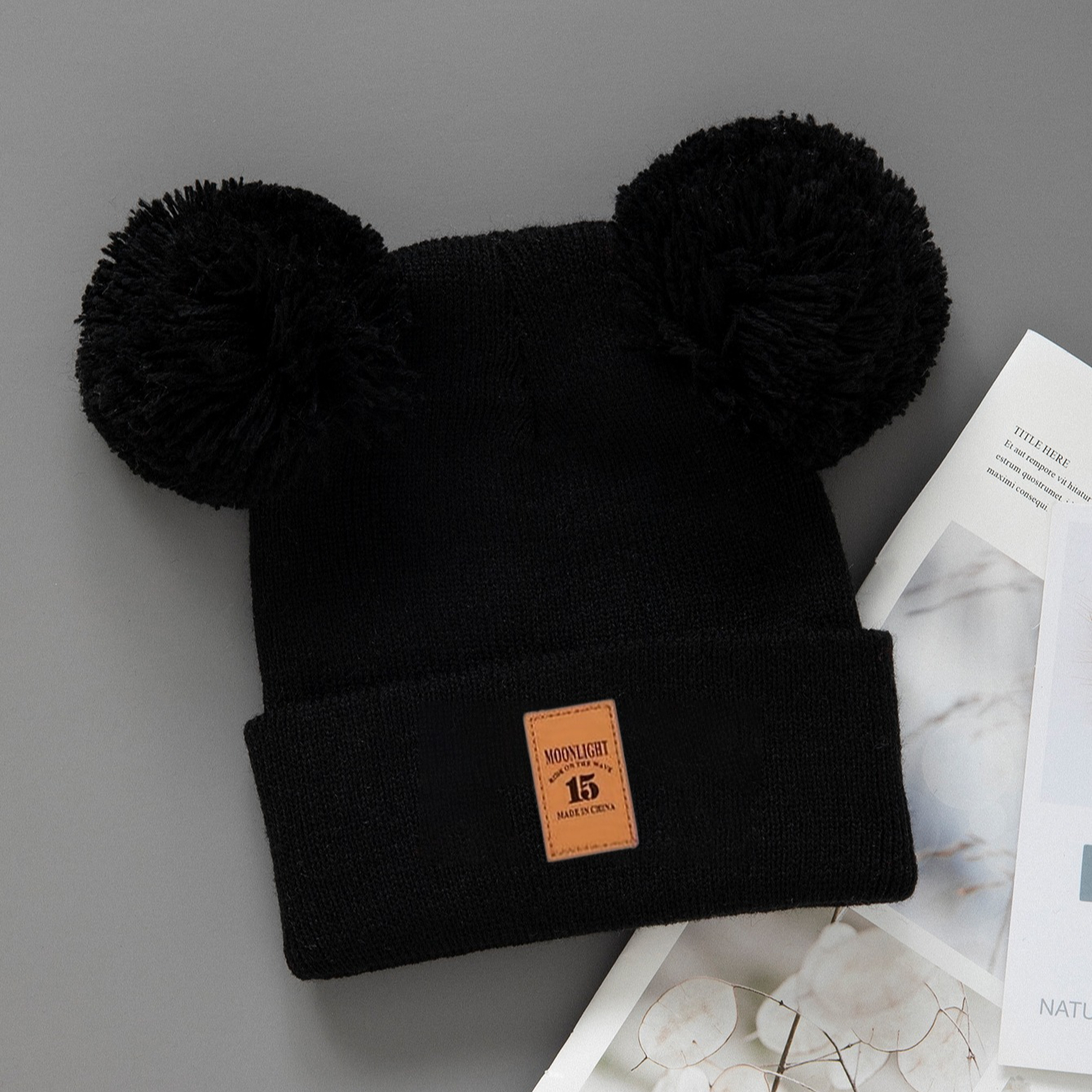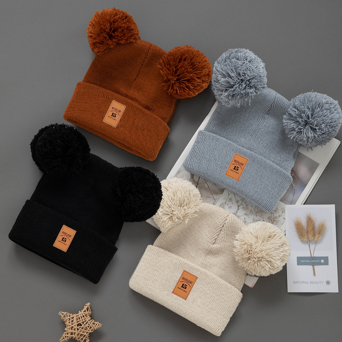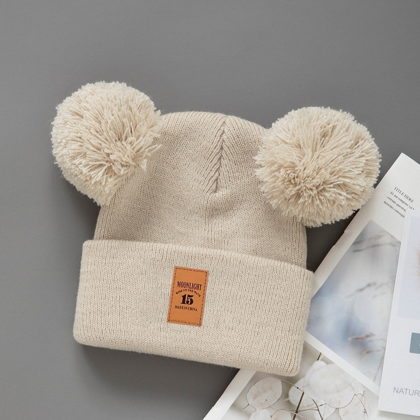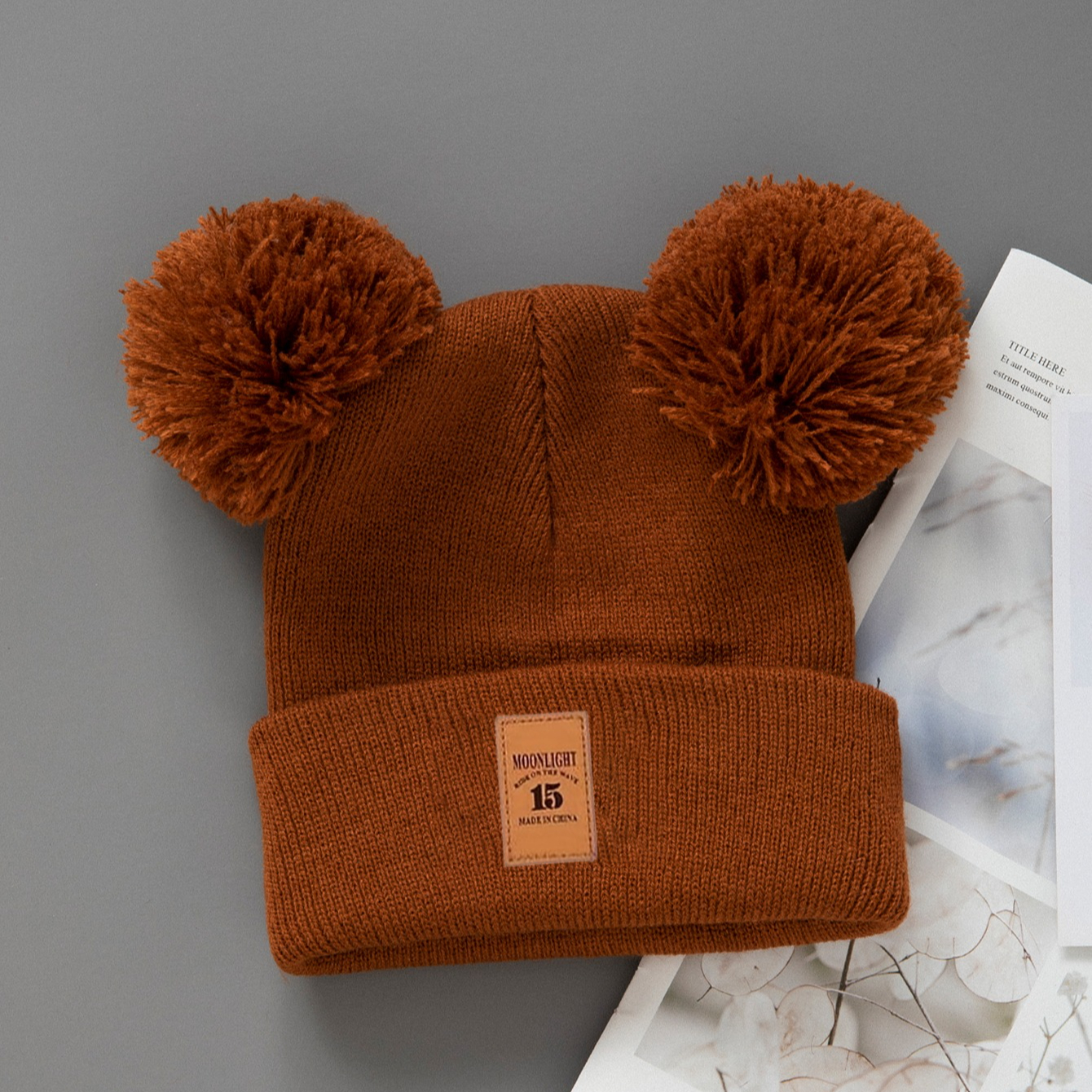 1pc Cozy Knit Beanie Hat with Double Pompom – Warm Winter Cap for Infants, Soft & Lightweight, Cute Cartoon Design, Mixed Colors, Perfect for Fall/Winter Casual Wear, Hand Wash Only, Infant Winter Hat, Playful Infant Accessory, Soft Texture Hat, Winter Hat Girl