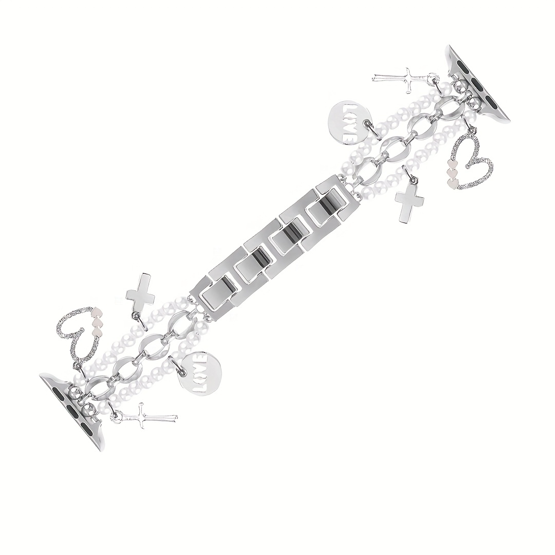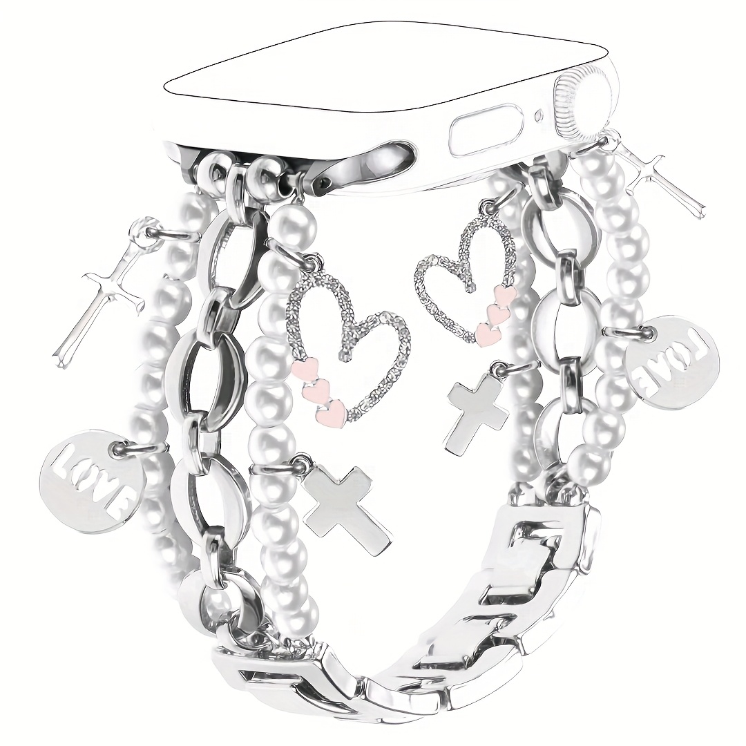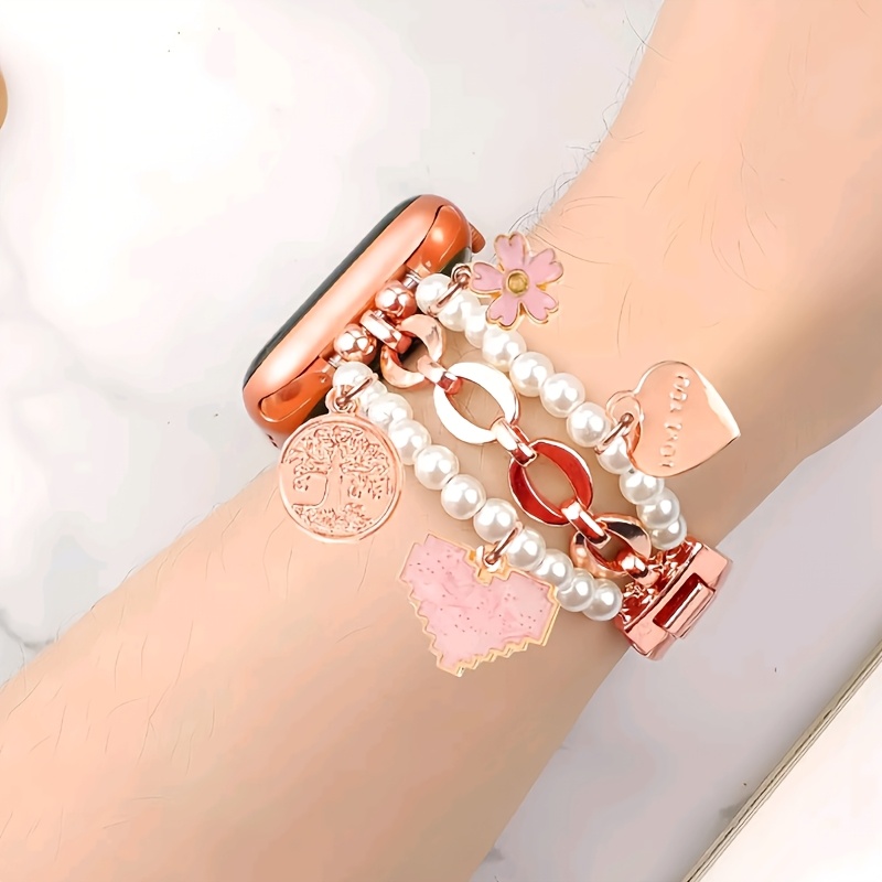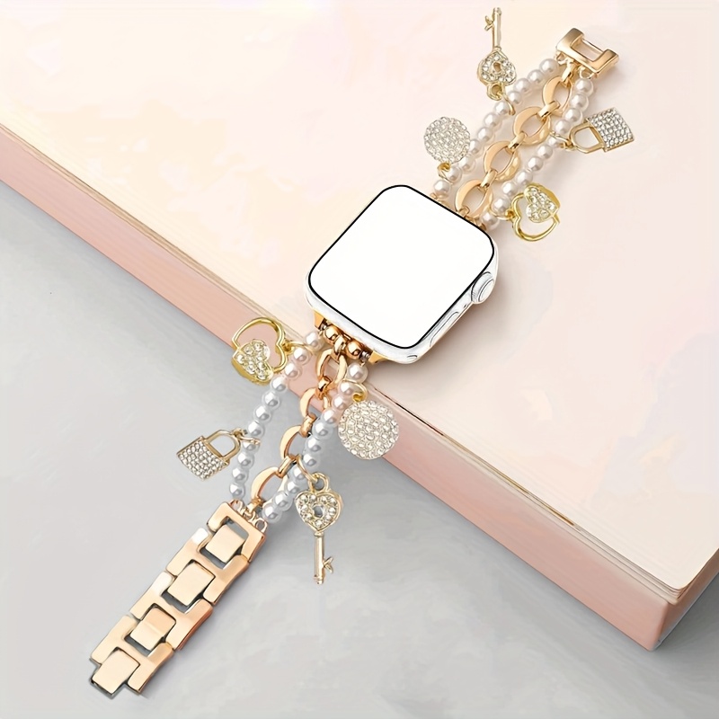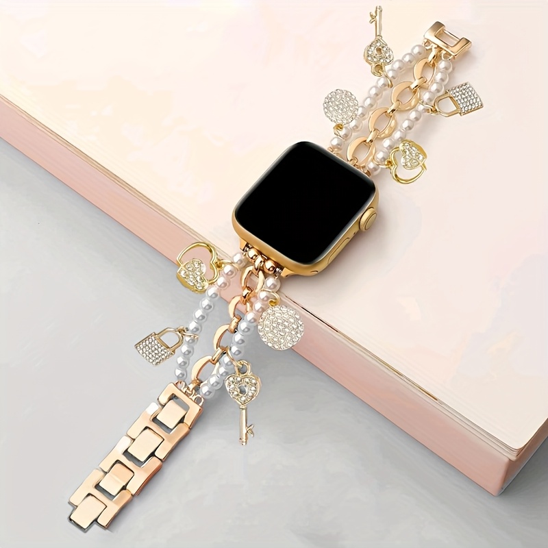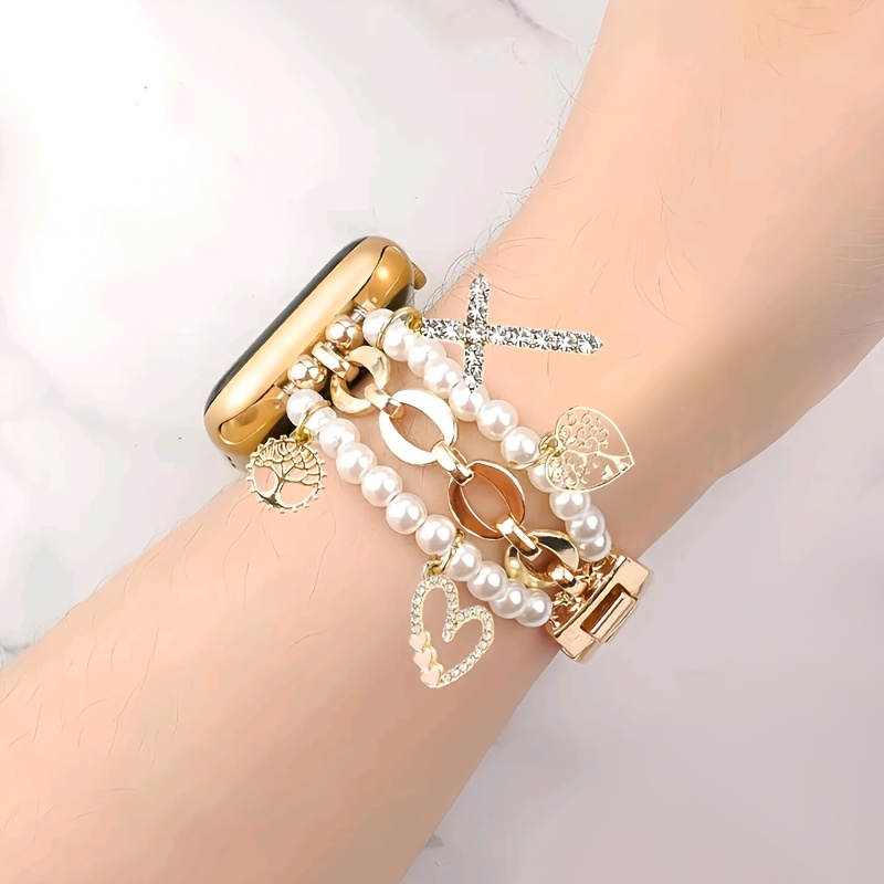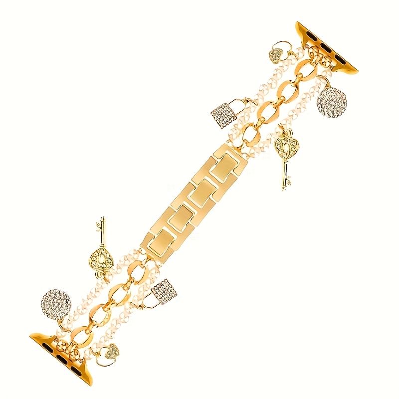 1pc Elegant Golden-Tone Heart & Star Charm Watch Strap for Apple Ultra 1/2 Series 10/9/8/7/6/5/4/3/2/1 – Adjustable, Comfortable Fit, Dainty Chain Link Design with Sparkling Accents, Perfect for Women’S Fashion Watches