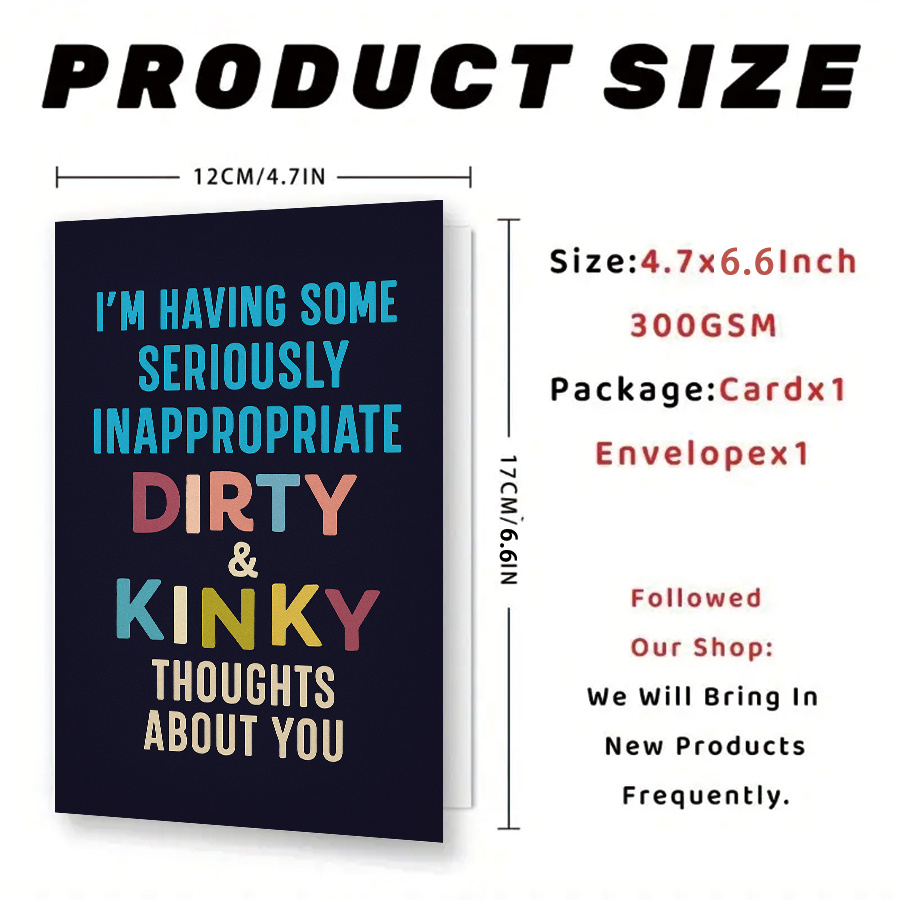 1pc Naughty Dirty Funny Greeting Card with “I’m Having Inappropriate Thoughts About You” Message – ized Cheeky Romantic Card for Couples, Partners, Valentines, Anniversaries – Humor & Christmas