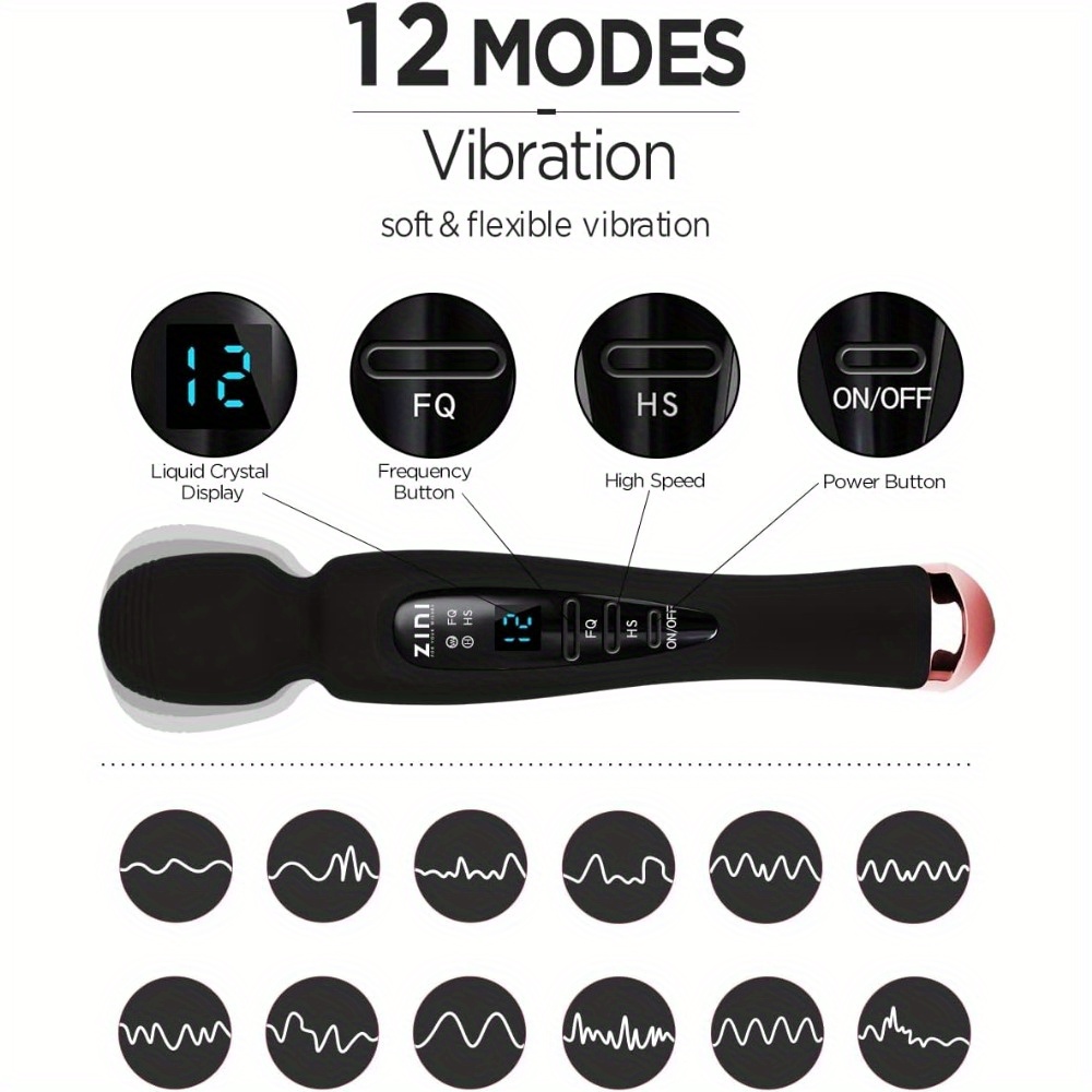 1pc Sex Toys for Women, 12 Patterns Rechargeable Vibrater for Women, Quiet Powerful Massager, Digital Display Wand Massager Dildo for Women Couples Adults Pleasure Toys Great for Christmas Gift- Black