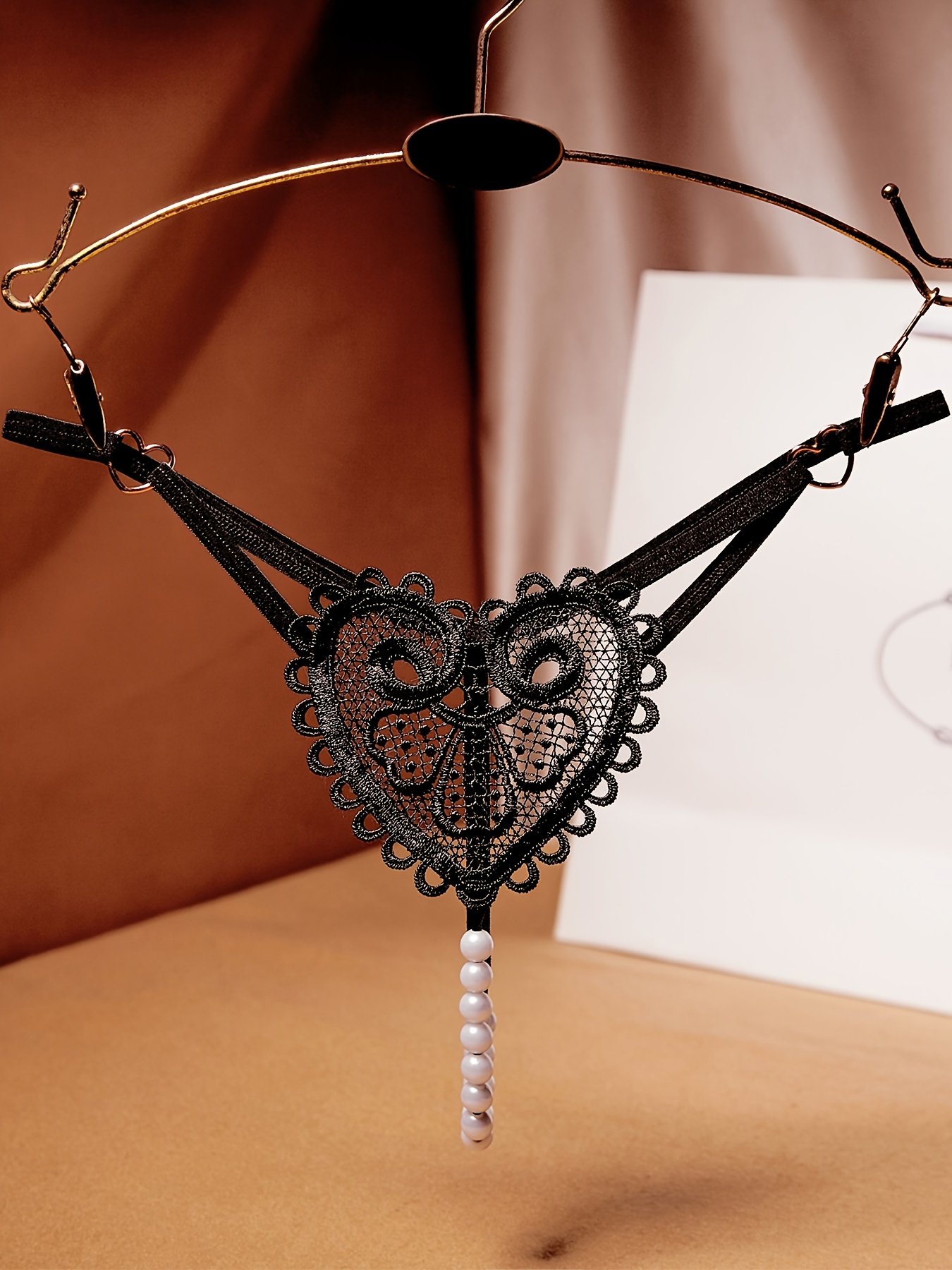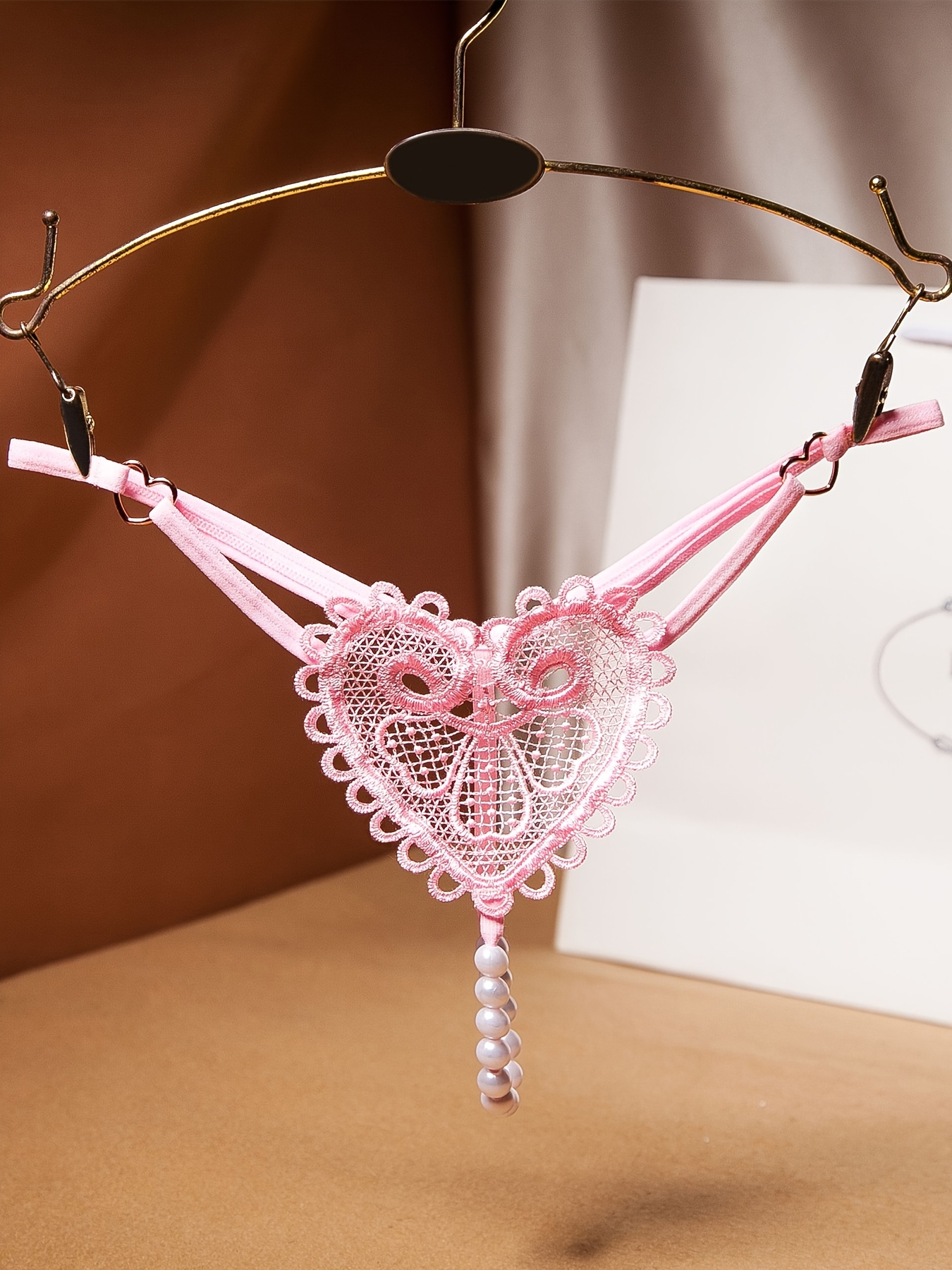 1pc Trendy Women Sexy Lingerie Erotic G-string Panties Butterfly Underwear Crotchless Faux Pearls String Thong, Ideal choice for Gifts