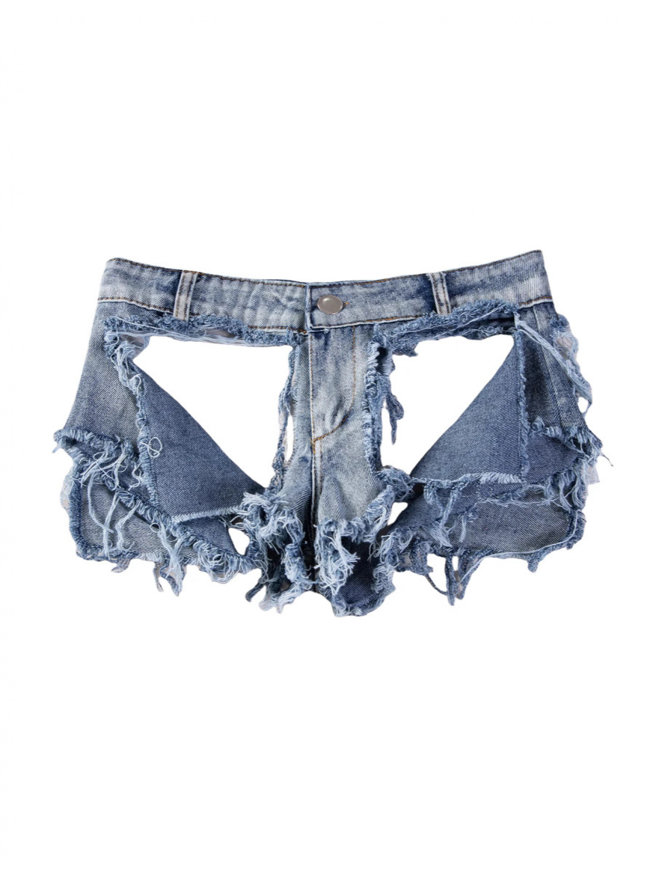1pc Women’s Low-Rise Ripped Denim Bikini Panties – Sexy Edgy Sheer Underwear, Denim Shorts Style (No Elastic) for Jeans-Like, Hand Washable Lingerie for s
