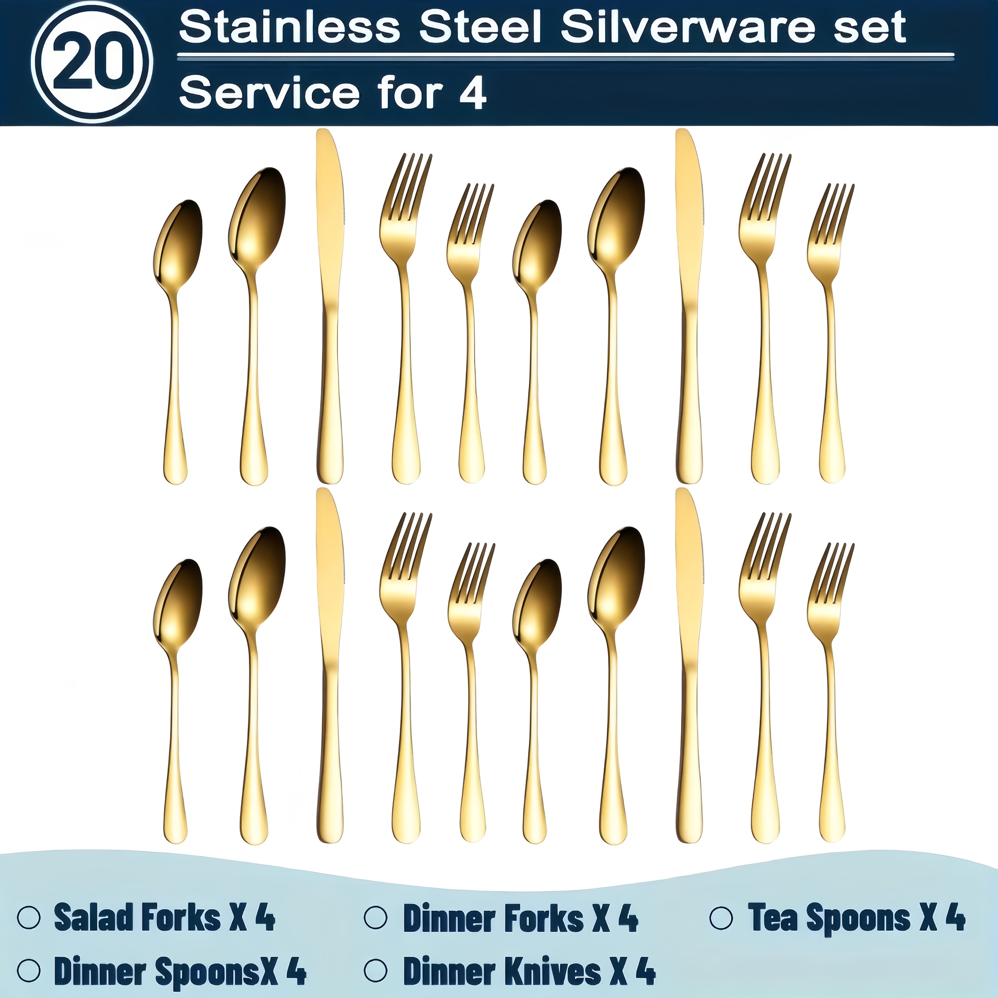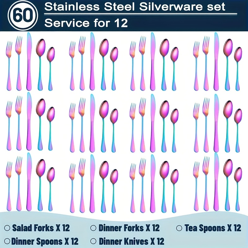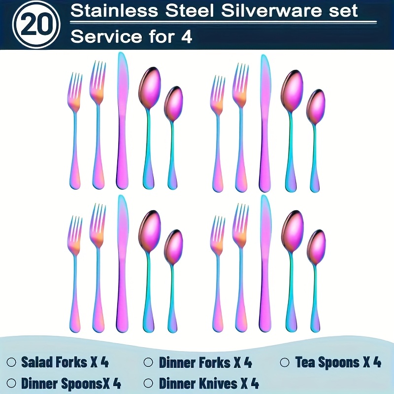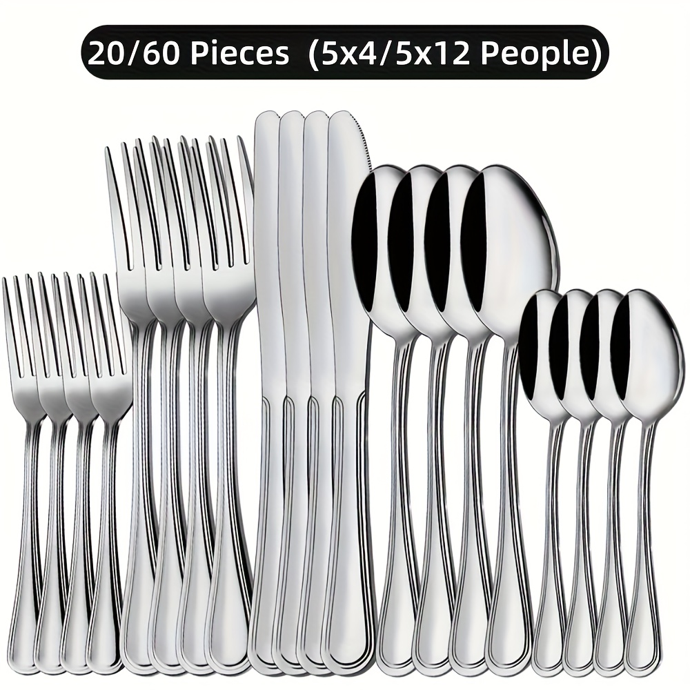 20/60pcs Stainless Steel Flatware Cutlery | Silverware For 4/12, Silvery, Mirror Polished, Dishwasher Safe | For Home Kitchen Restaurant Hotel, Perfect For Gifts And Weddings, The Best Gifts For Thanksgiving And Christmas