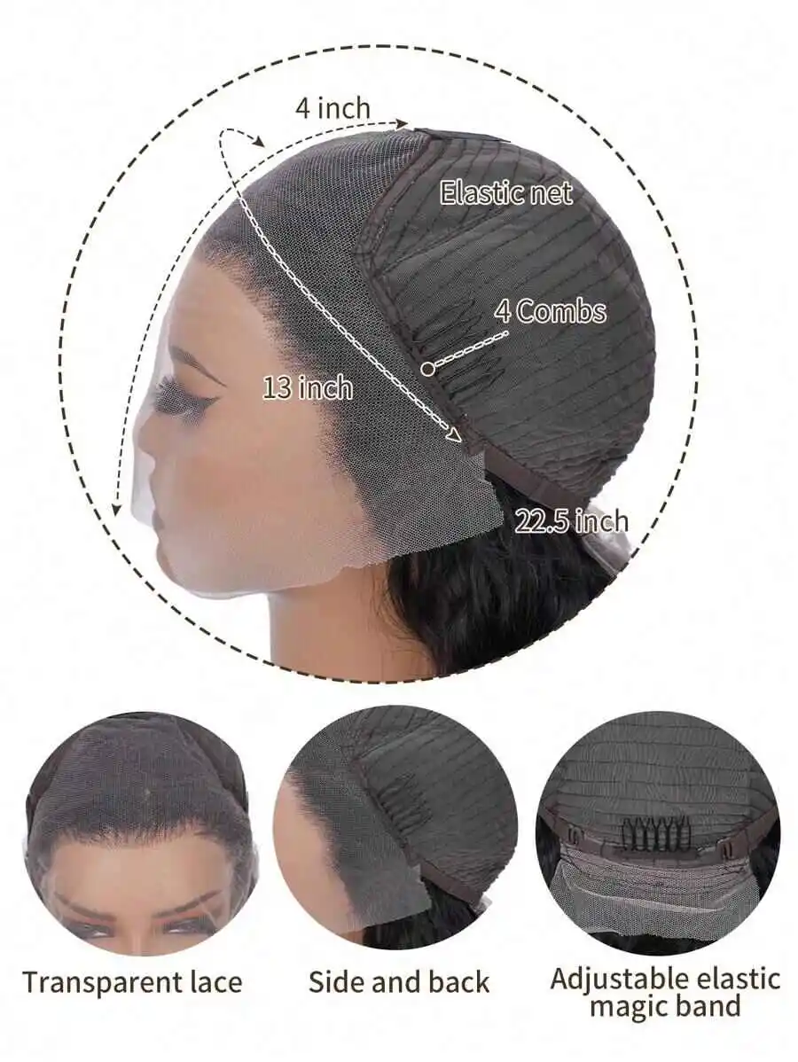 13×4 Lace Front Wigs Human Hair Cap Size:4 Inch Free Deep Parting Space,Average Cap Size(22-22.5Inch)With 4 Combs And Two Adjustable Straps Make It Easy To Install,Wigs Human Hair Easy To Adjust And Wear,Durable, Breathable And Comfortable,Glueless Lace Front Wigs