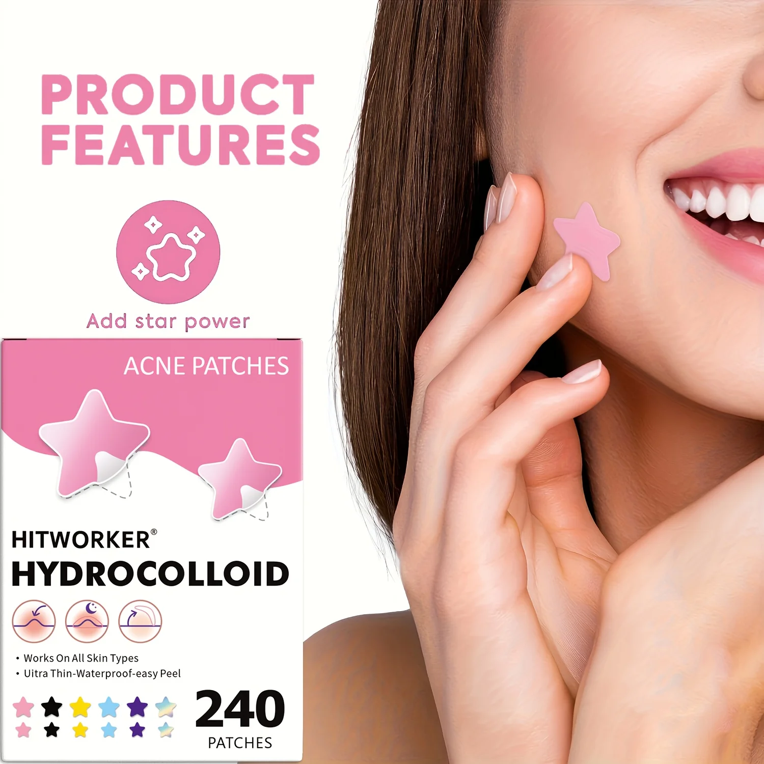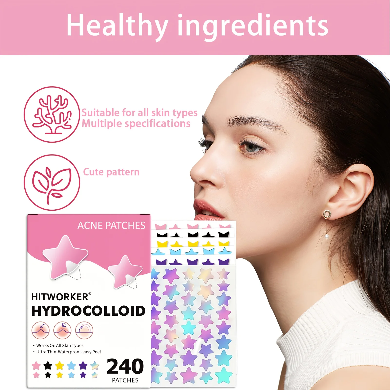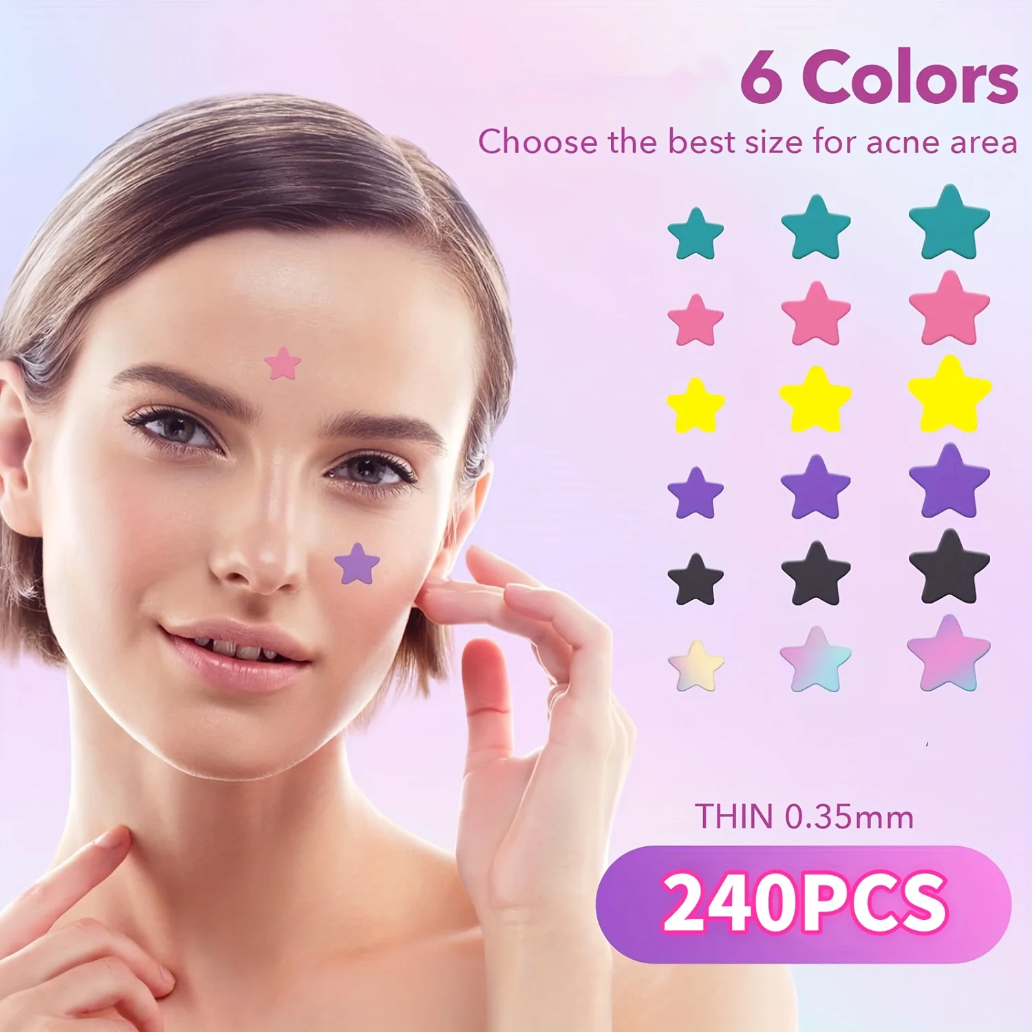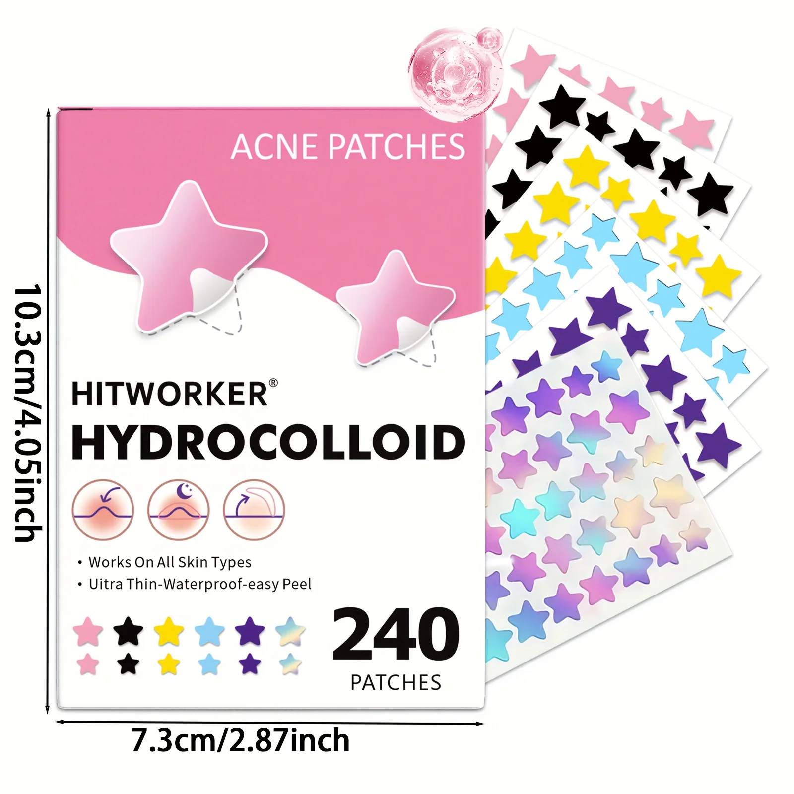 240Pcs Hitworker Waterfilm Ultra-thin Waterproof Easy-to-use Face Sticker for clearing acne and scars Vivid Star Design All Skin