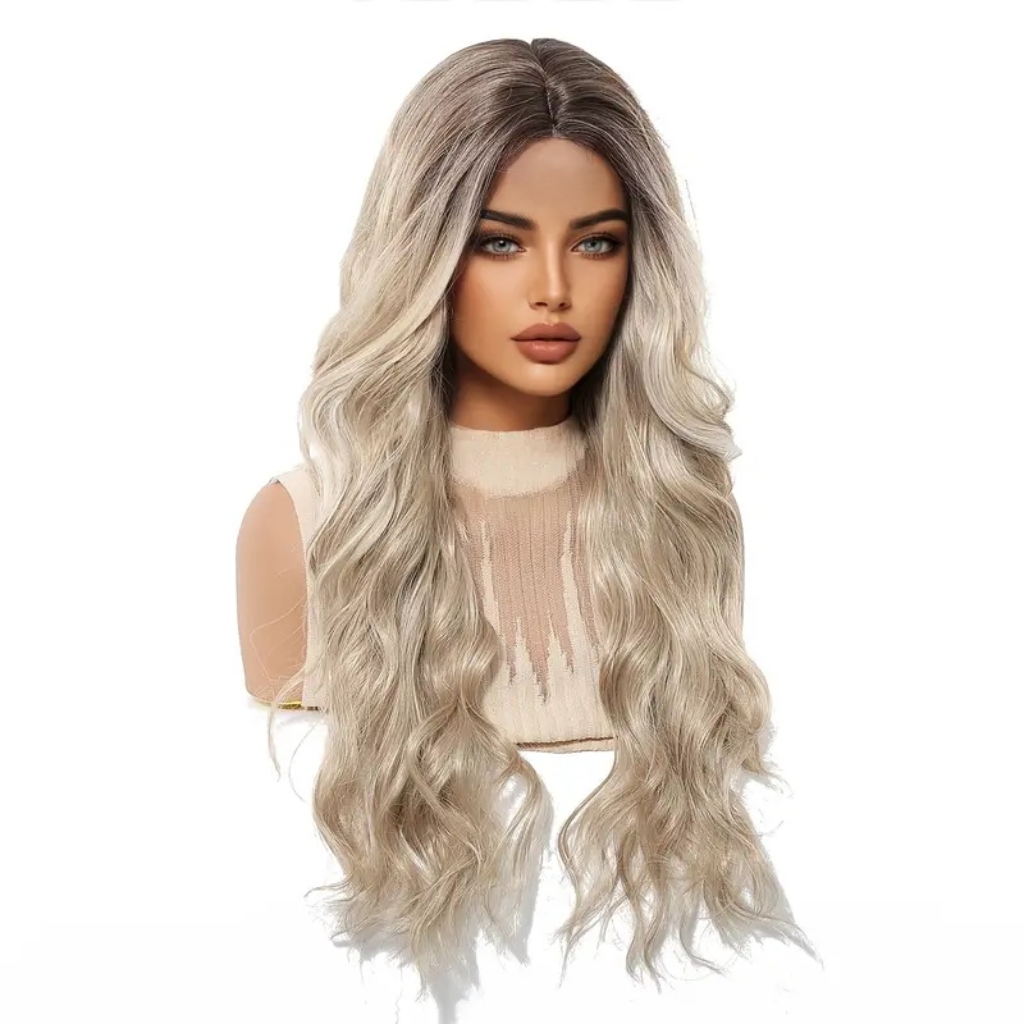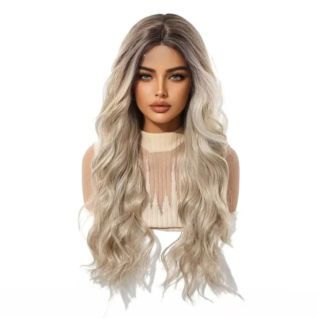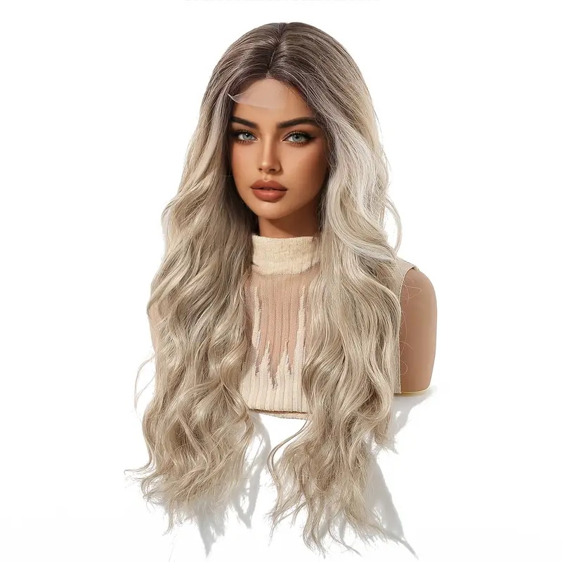 26-inch Brown to Blonde/Blowdy Blonde Gradient Curly Wave Wig for – Heat-Resistant Synthetic Hair with Natural Volume & Fullness, Daily Wear, for halloween, Net (Compatible with all Scalp Types)