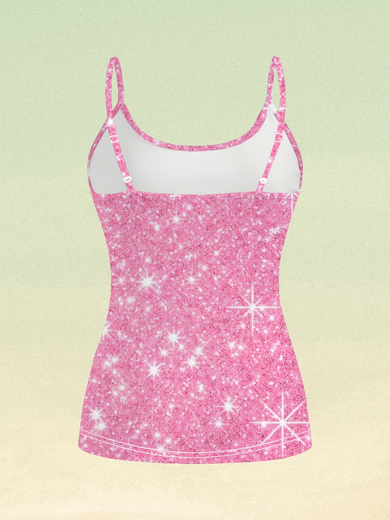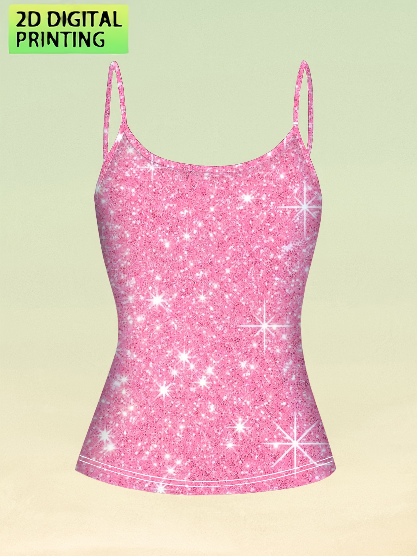 2D Digital Print Sweet Cool Glitter Star All-Over Sparkle Star Sweet Shimmer Girly Style Summer Pink Tone Eye-Catching Cool Breathable New Hot Casual Super Slim Strap Tank Top, Designed for Sweet Girly Style, Equipped with Adjustable Buckle Design