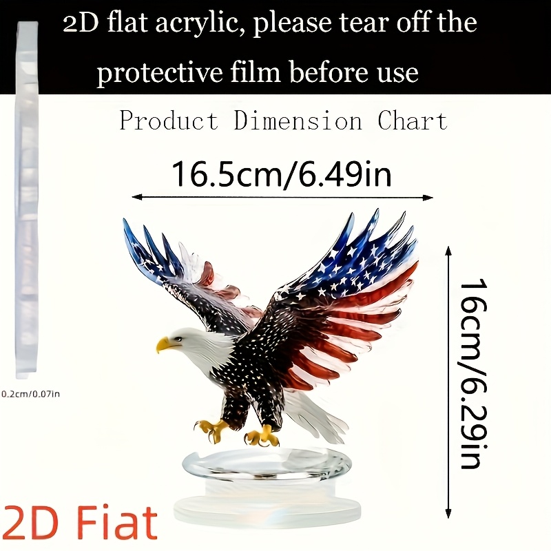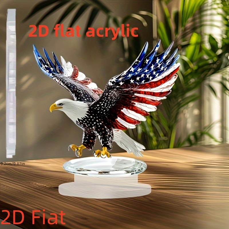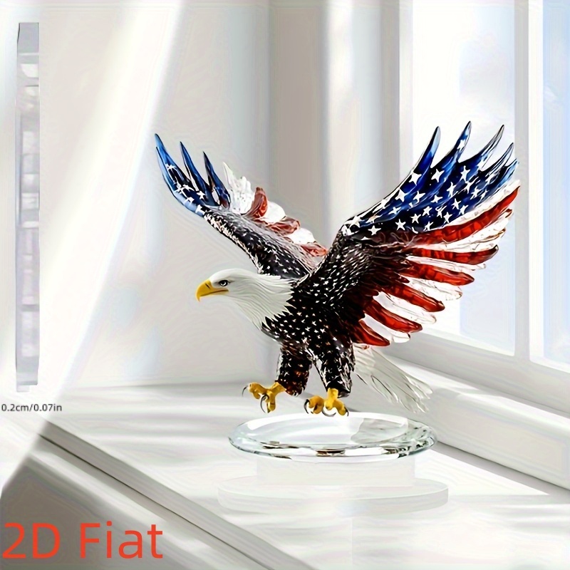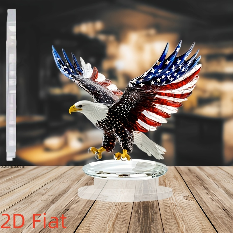 2D Flat – A 2D Acrylic Bohemian Style Eagle Sculpture Featuring The American Flag Design, Perfect for Home And Office Decor, Desk And Living Room Decoration, an Ideal Christmas Gift, And a Piece of Art for The Living Room with a Crystal Base.