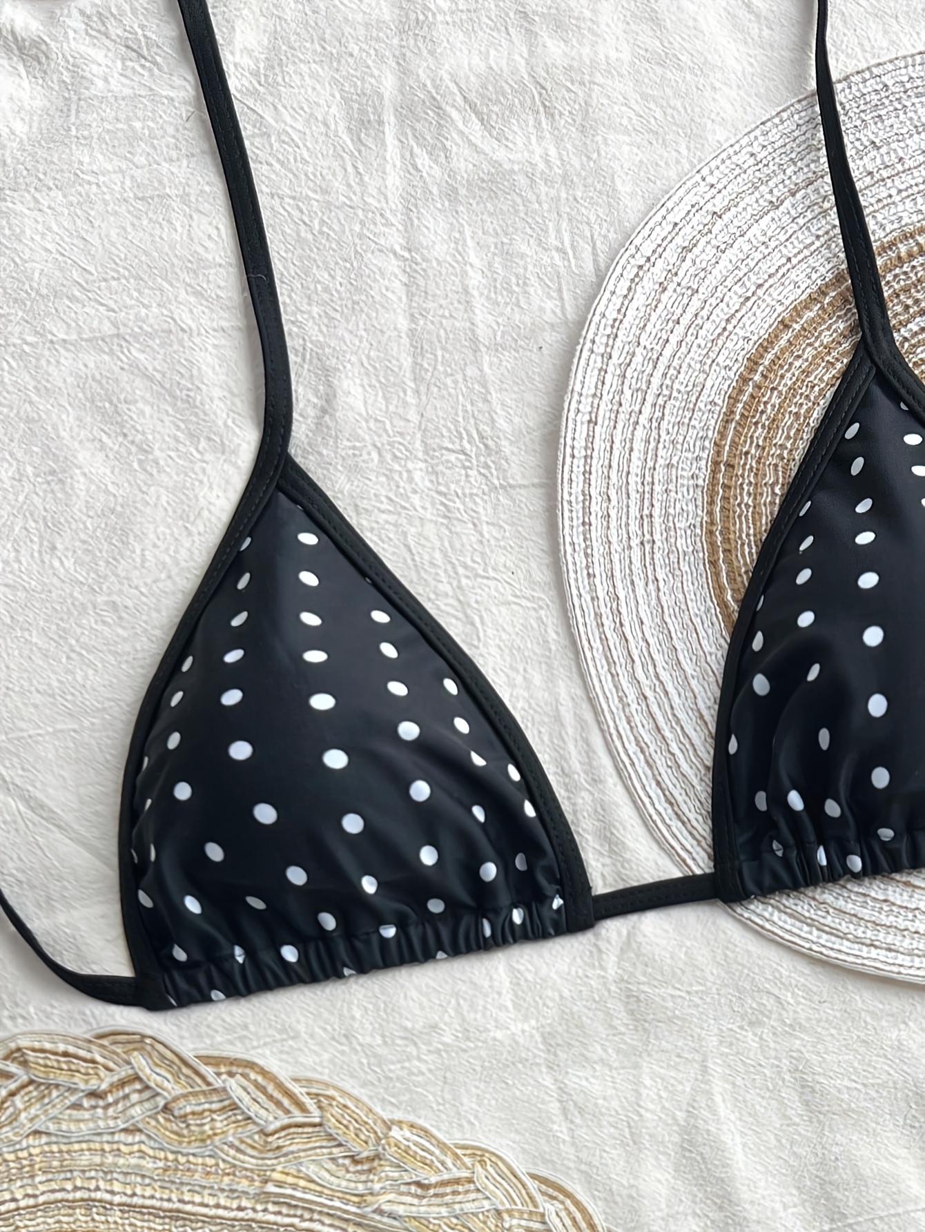 2pcs Black-white Polka Dot Bikini | Halter Triangle Top + Ruffled Skirt Bottom, Ideal for Beach Retro Sweet Style Looks, Sleeveless, Spaghetti Strap, Slight Stretch Fabric