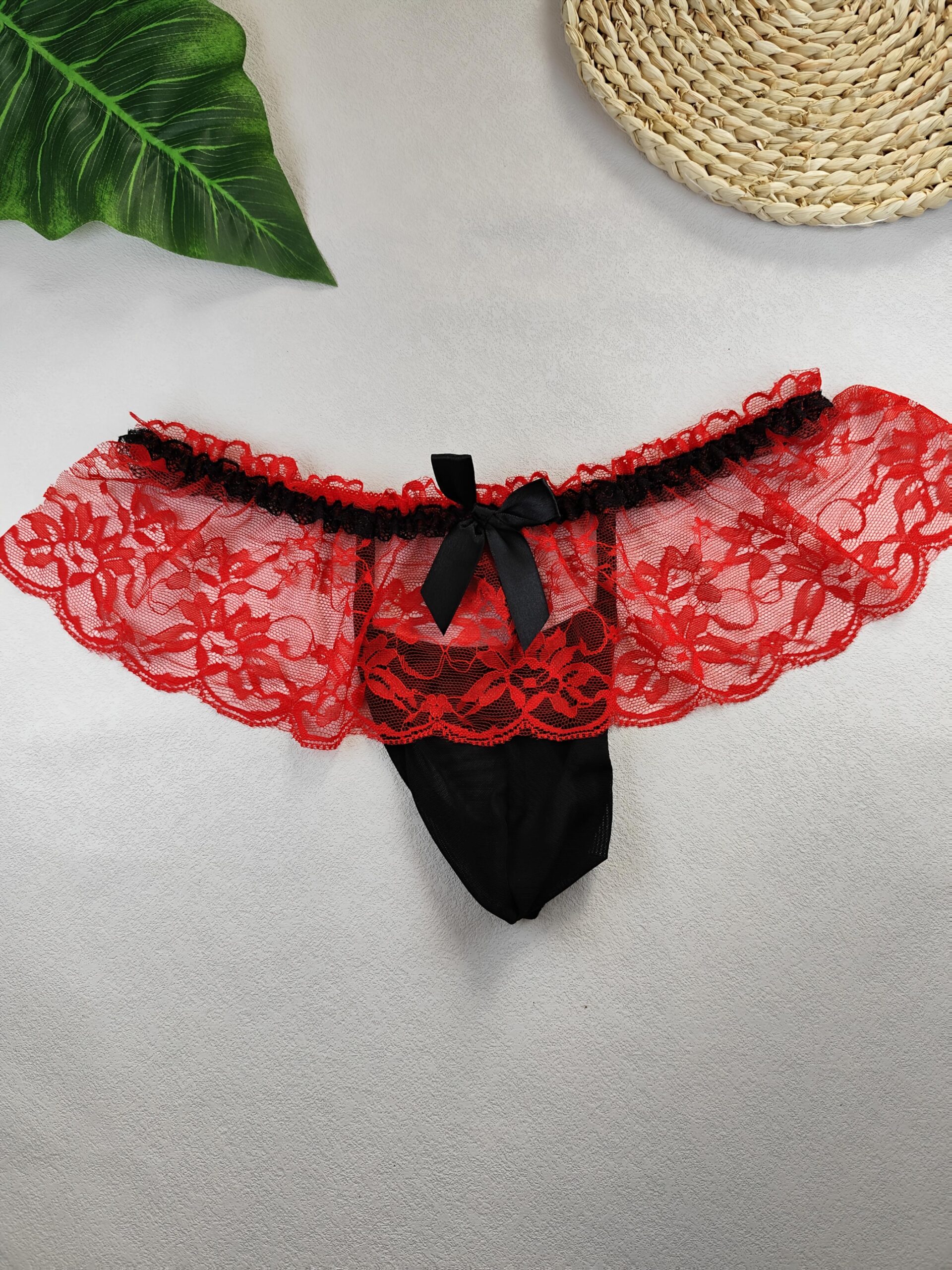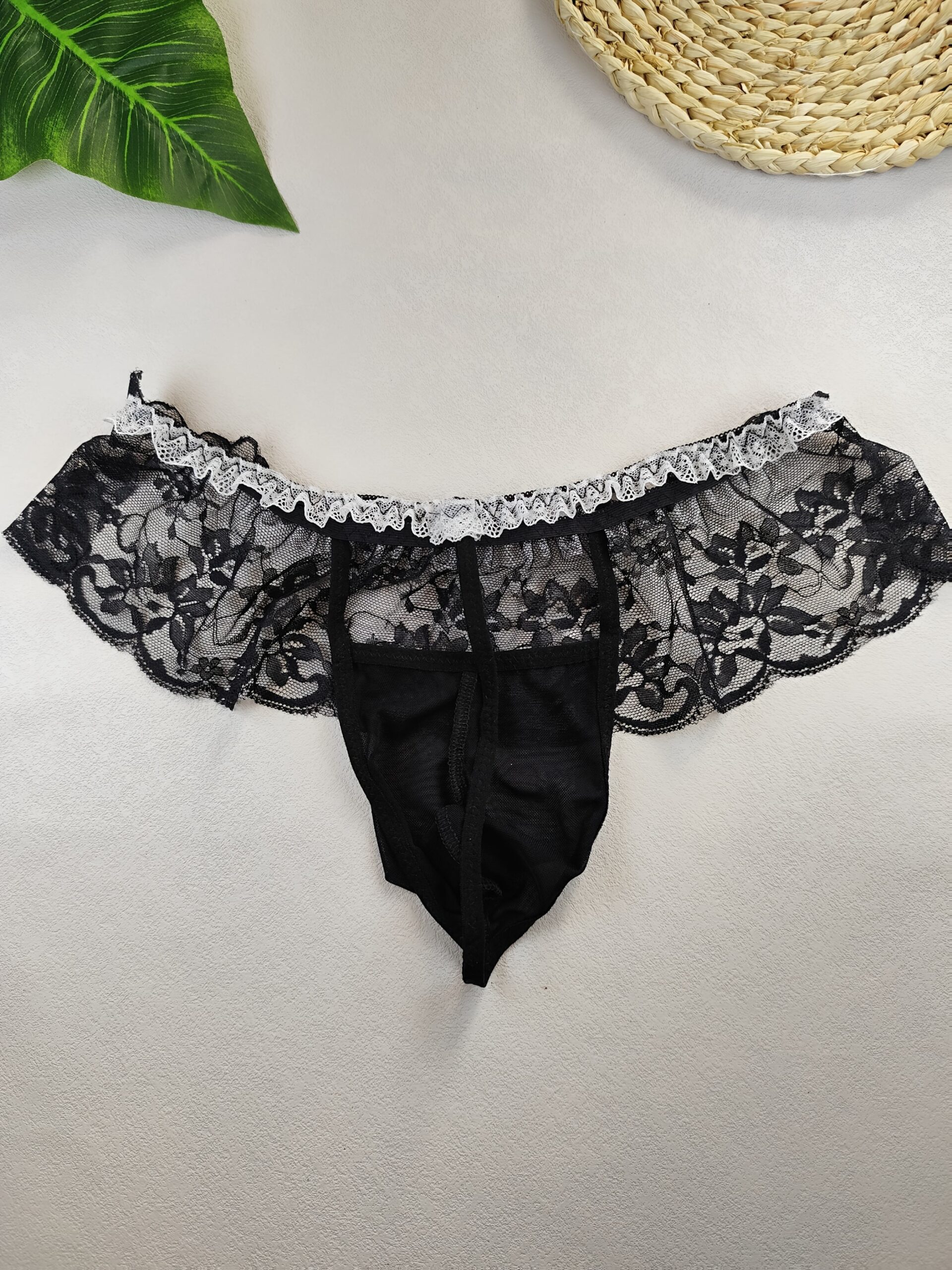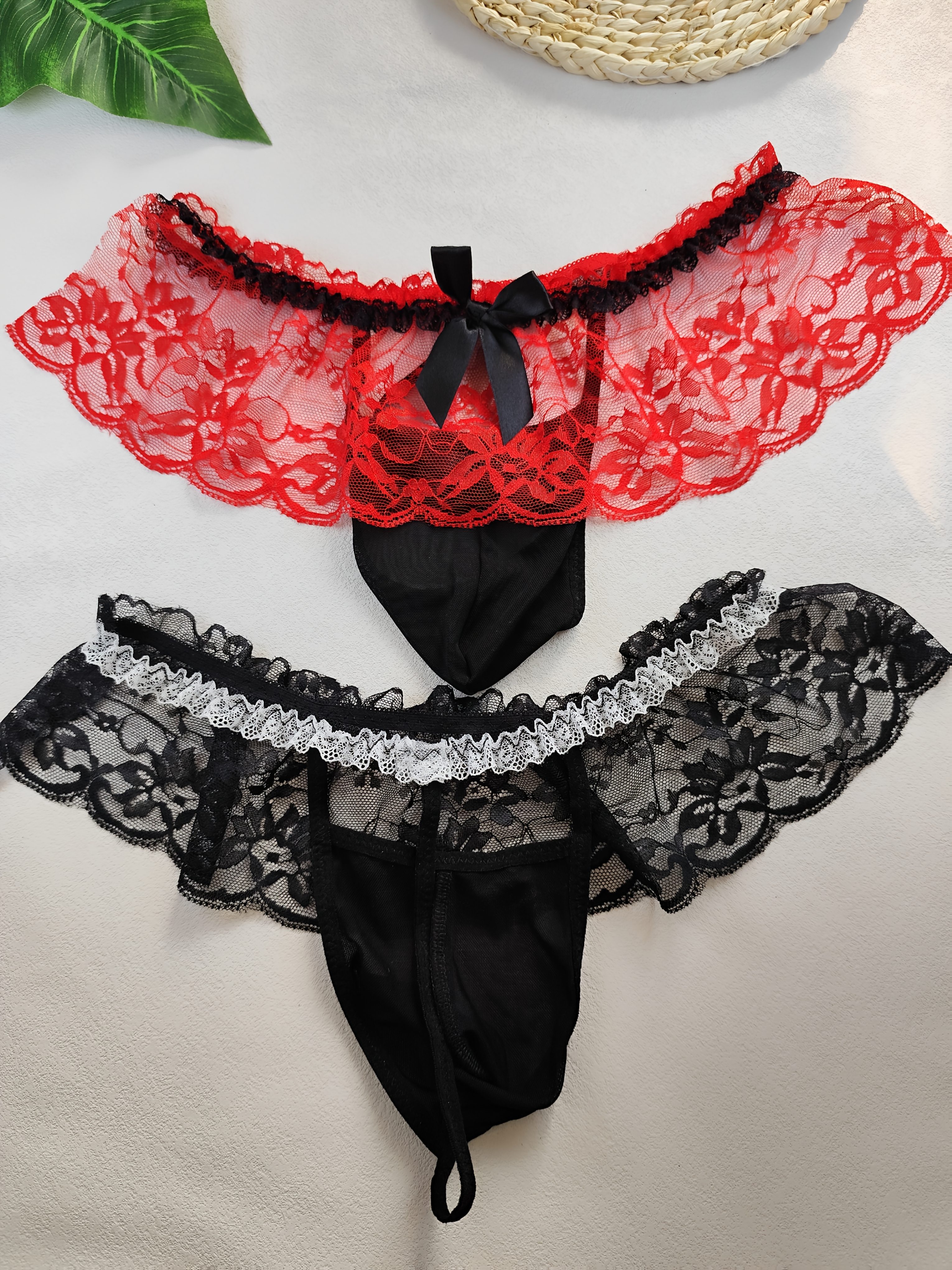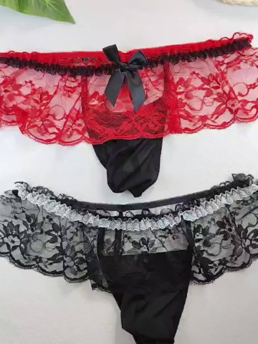 2pcs Men Sexy Lace Underwear, Hollow Thongs, Lace Skirt, Cross Dressing Lace Briefs