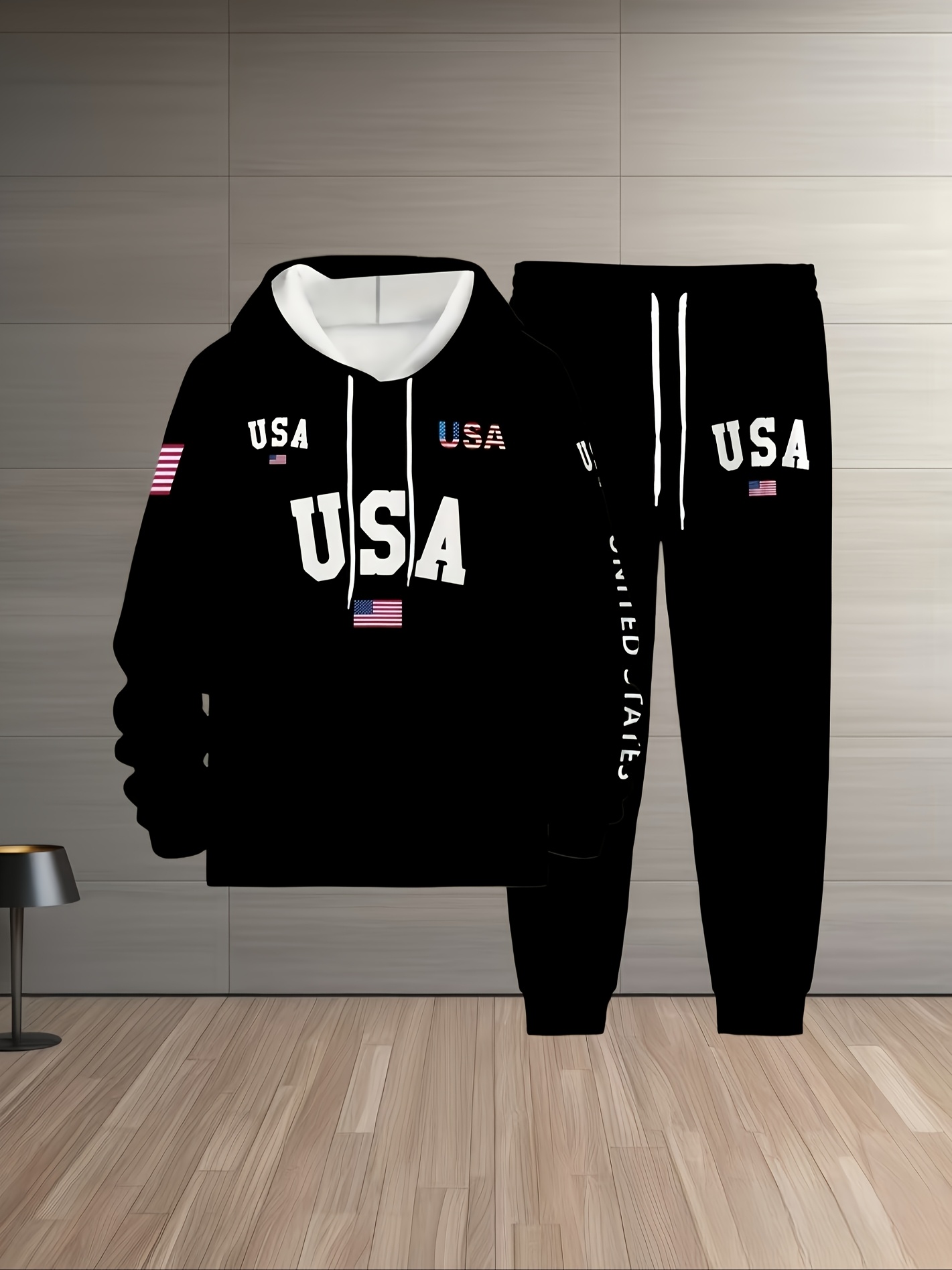 2pcs Set [Store Bestseller] [Limited Time Discount] Black Retro Letter Print, Men’s Two-piece Set, Casual Round Neck Long Sleeved Hooded Sweatshirt And Sweatpants Set, Suitable for Winter And Autumn, Sportswear Set
