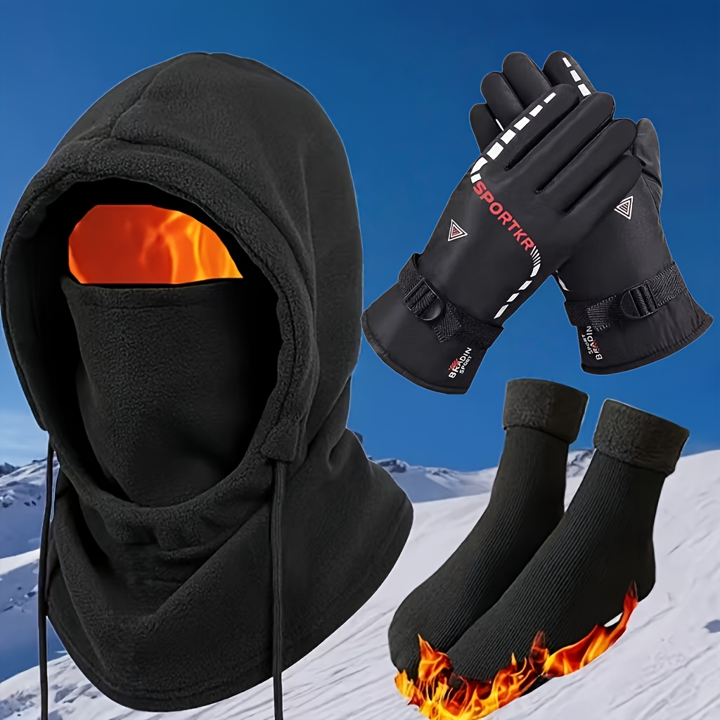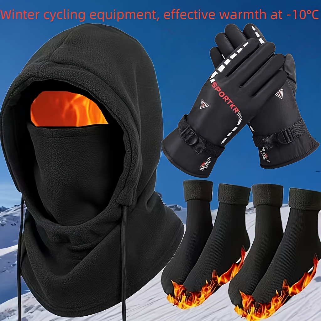 3/4pcs Autumn Winter Warmth Set, Integrated Windproof Hat with Thick Fleece Gloves And Snow Socks, Winter Outfit, Winter Accessories, Winter Fashion