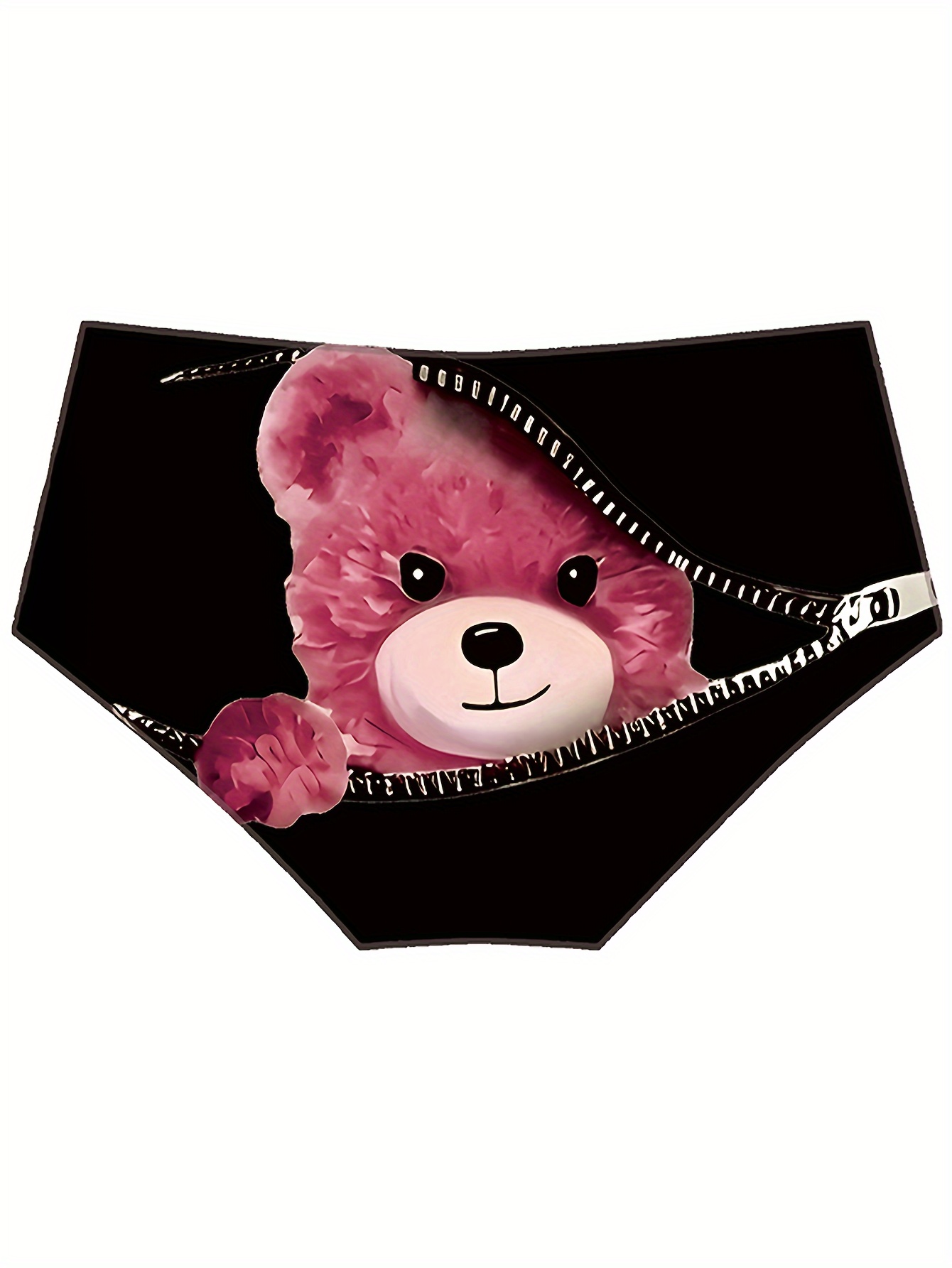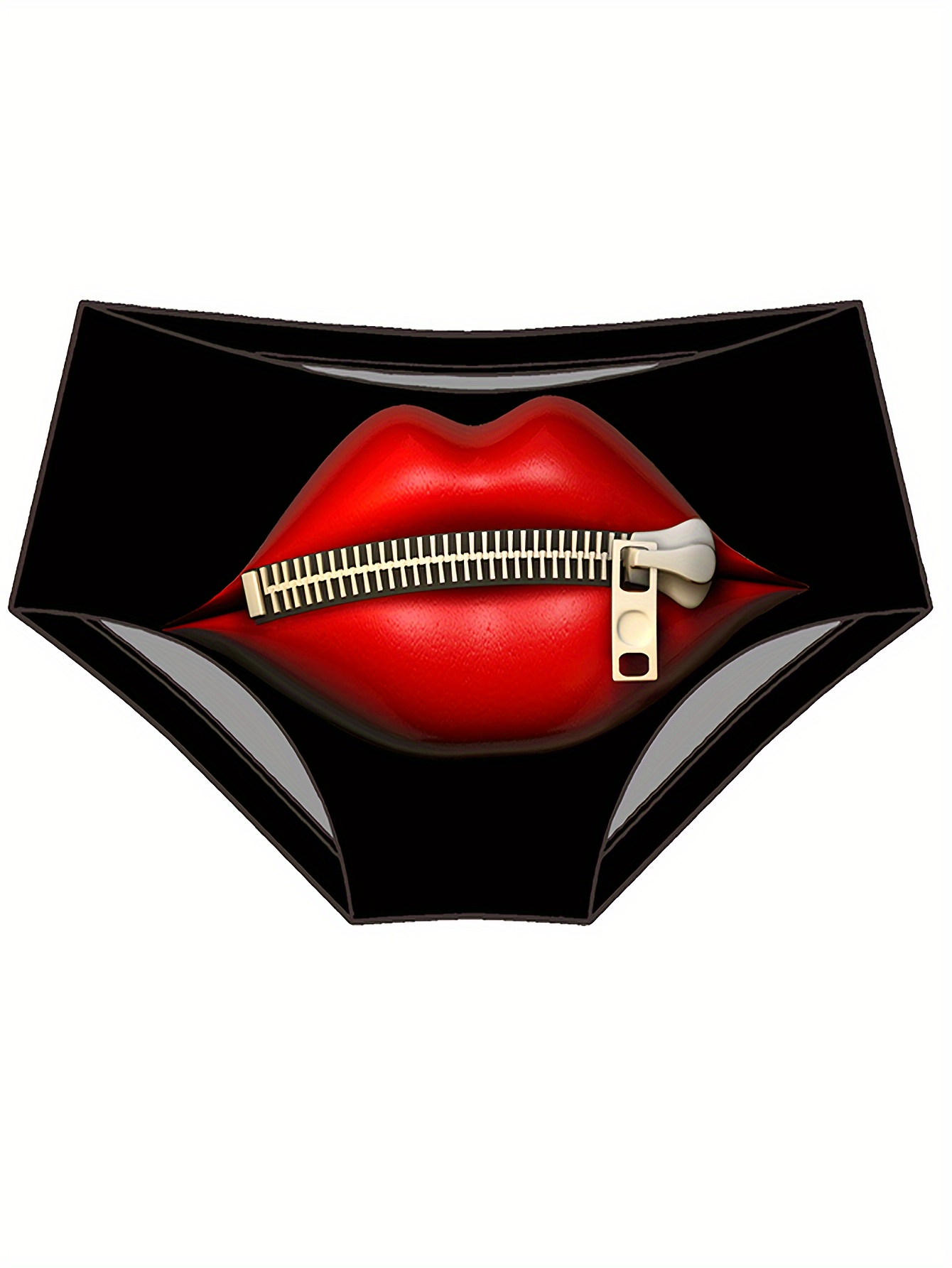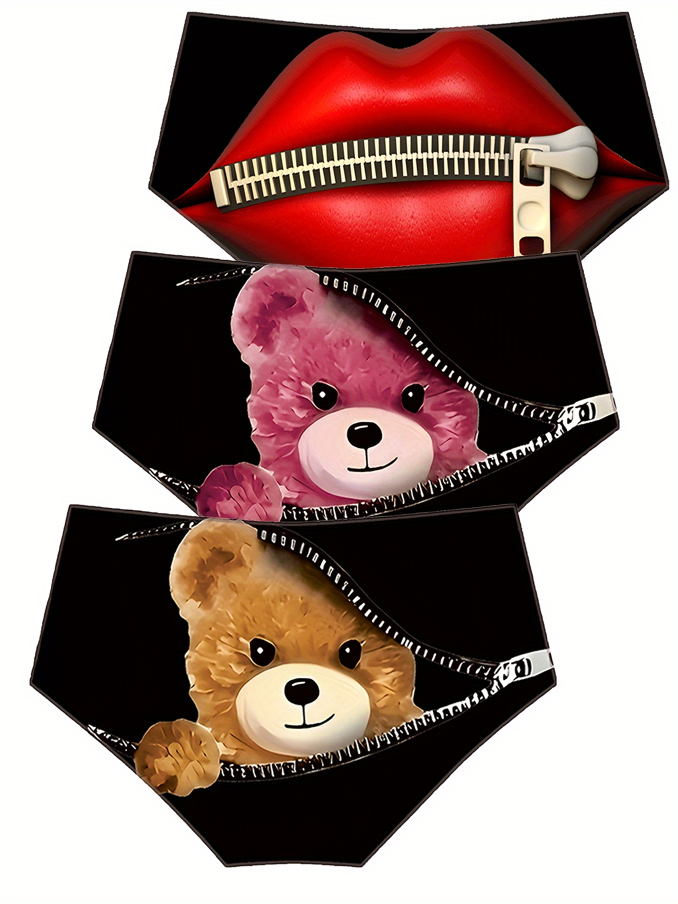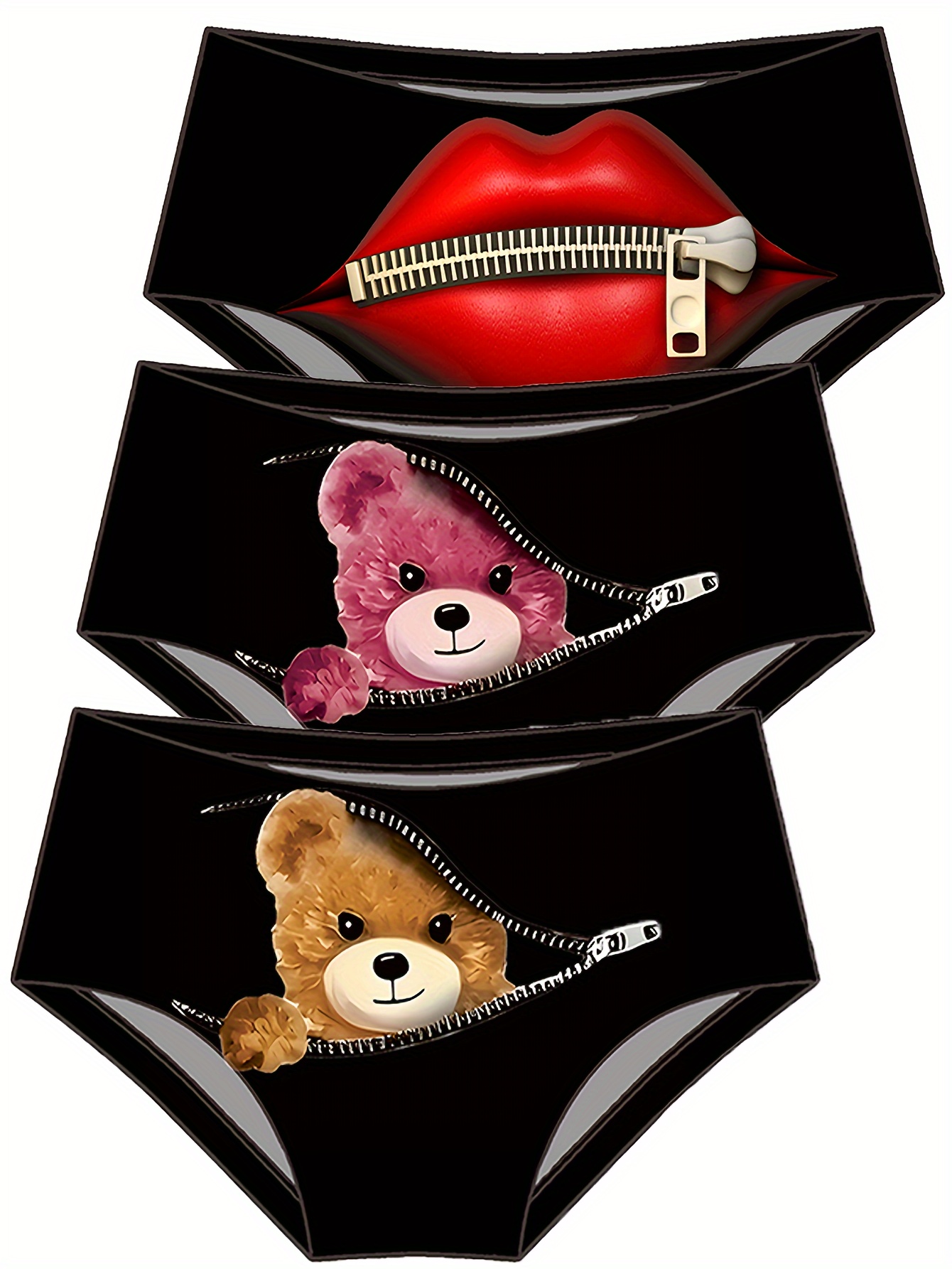 3-Pack Cartoon Bear Lips Zipper Print Comfortable Breathable Quick-Dry Women’S Triangle Panties | Seamless, Drop Waist, Glam Style