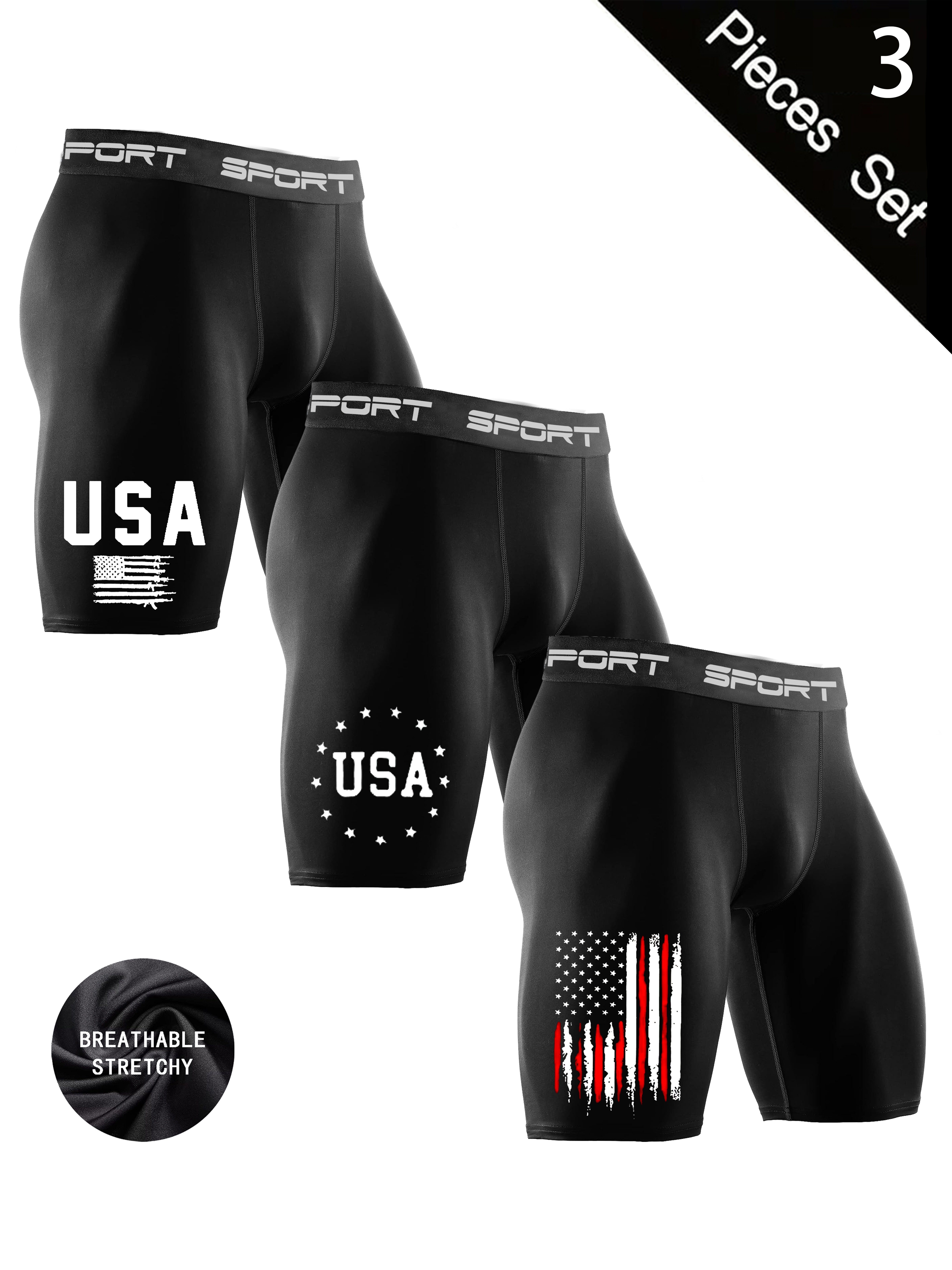 3-Pack Men’s High-Compression Workout Shorts – Breathable Stretchy Fabric, USA Patriotic Print, All-Season Tight-Fit for Cycling, Running, Gym & Outdoor Sports, Gym Shorts, Running Gear, American Flag Design, Smooth Texture, Elastic Waistband, Cycling Gear, Performance Wear, Moisturewicking Fabric, Activewear Bottoms, Fitness Enthusiasts