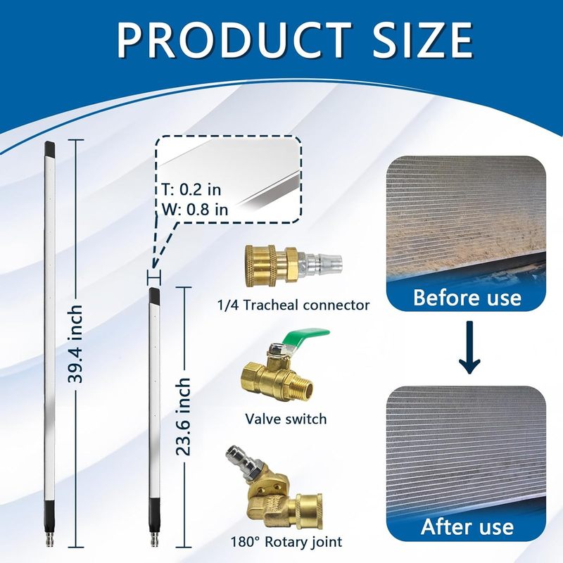 39″ & 24″ Radiator Cleaning Wand 2-Piece Set – Portable Radiator Cleaning Tool for Household Cars, Trucks, RV