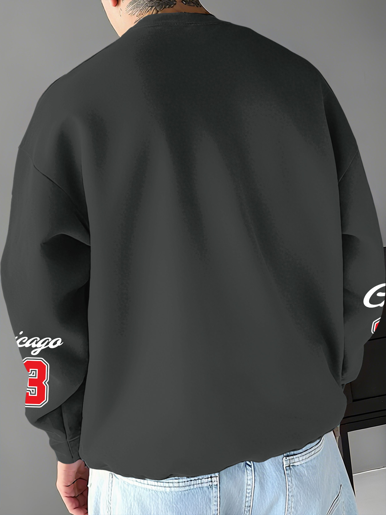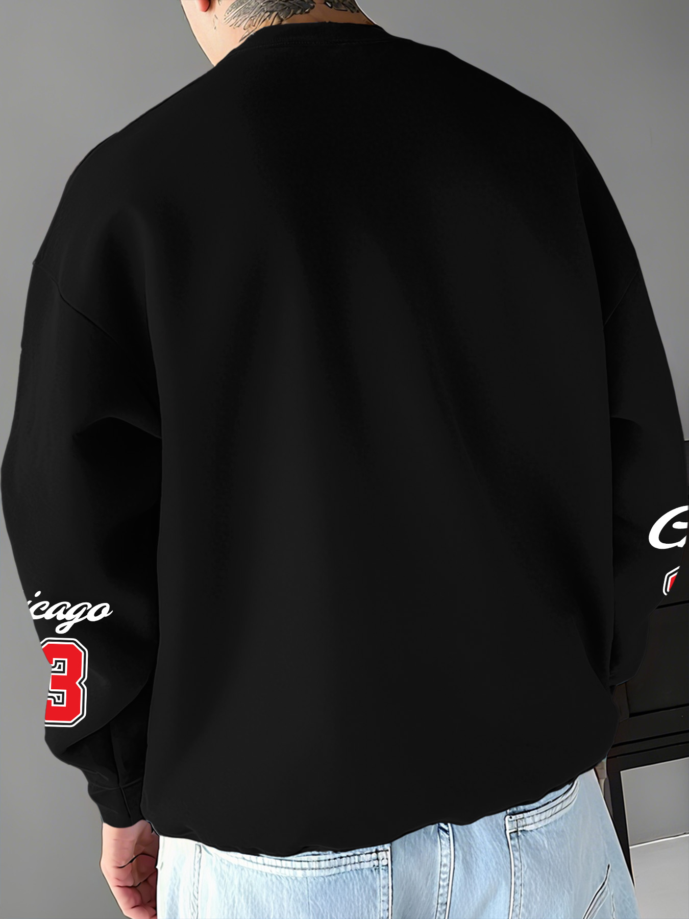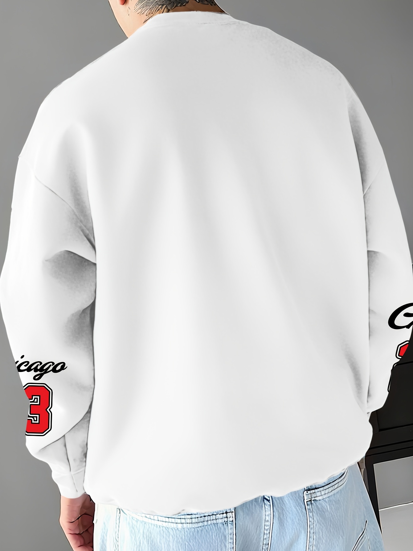 [3D Lettering Sweatshirt] Men’s Chicago 23 Graphic Print Sweatshirt – Oversized Casual Pullover with 3D Lettering, Soft Polyester, Round Neck for Travel, Outdoor & Casual Attire