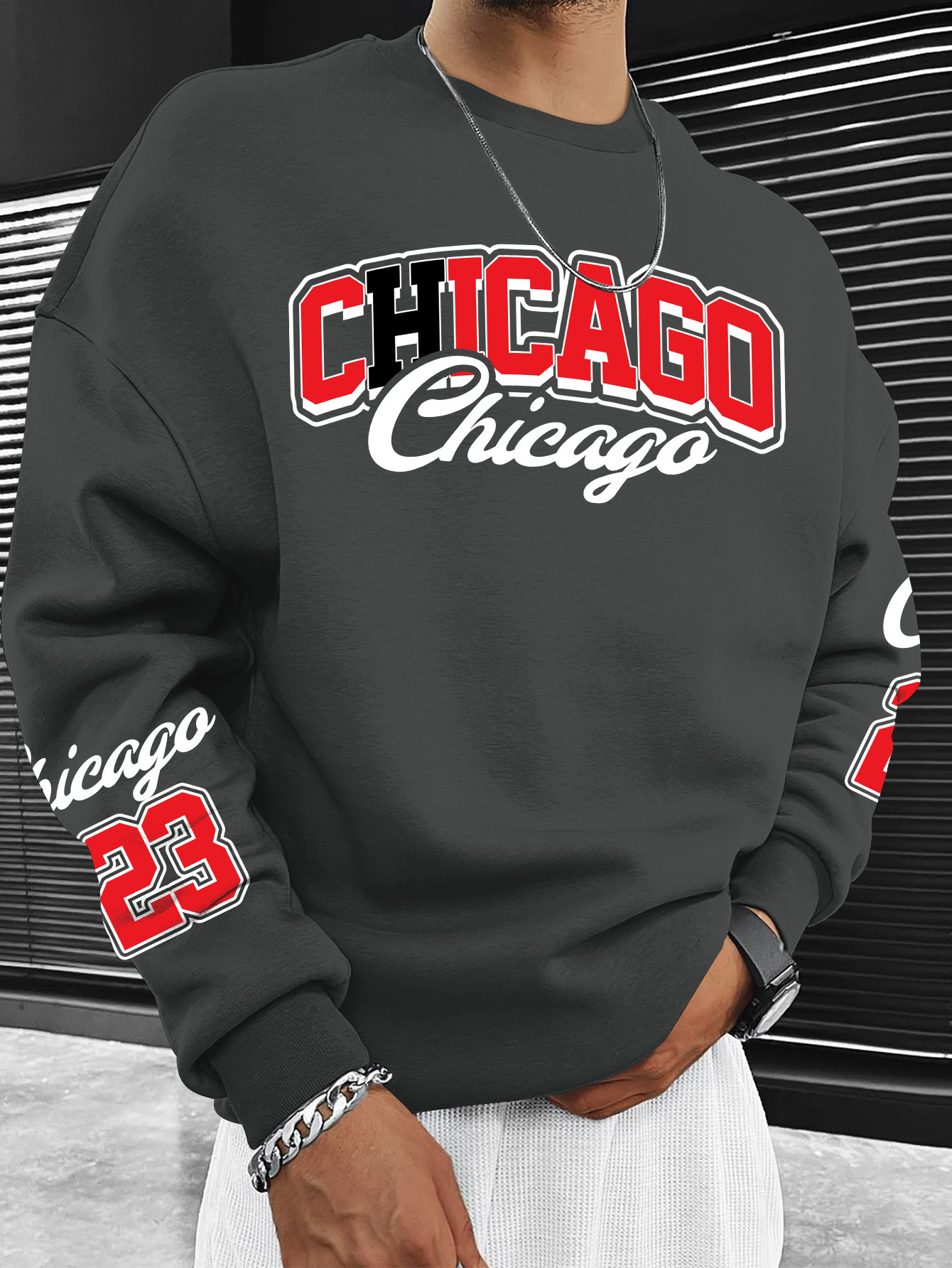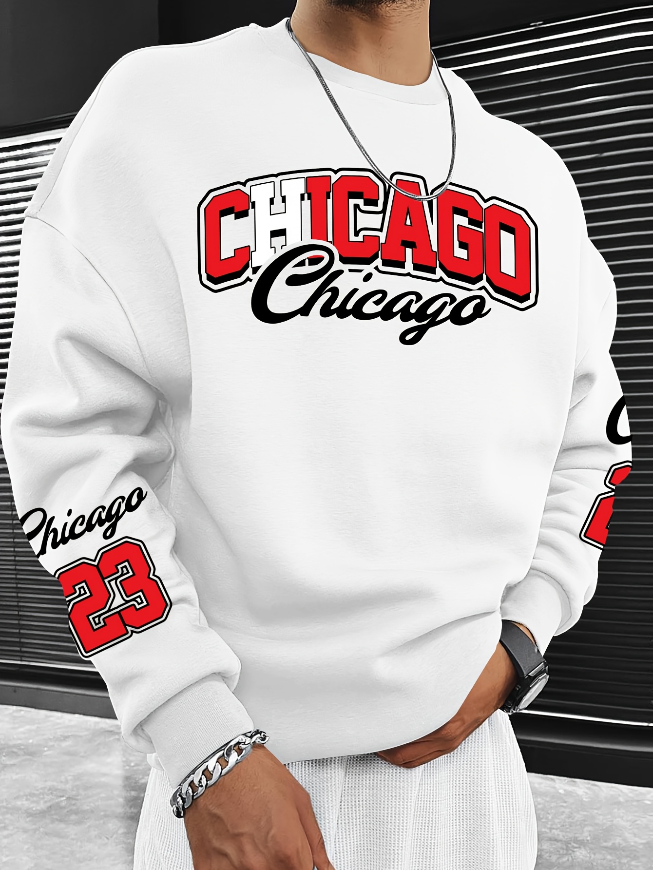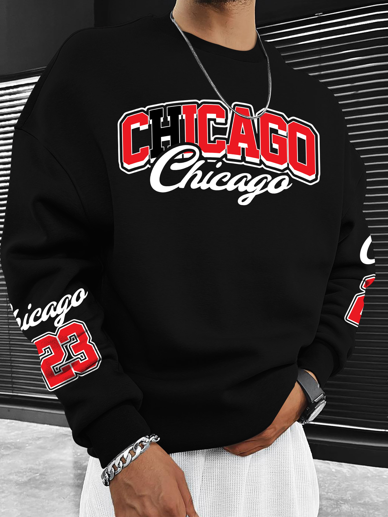 [3D Lettering Sweatshirt] Men’s Chicago 23 Graphic Print Sweatshirt – Oversized Casual Pullover with 3D Lettering, Soft Polyester, Round Neck for Travel, Outdoor & Casual Attire