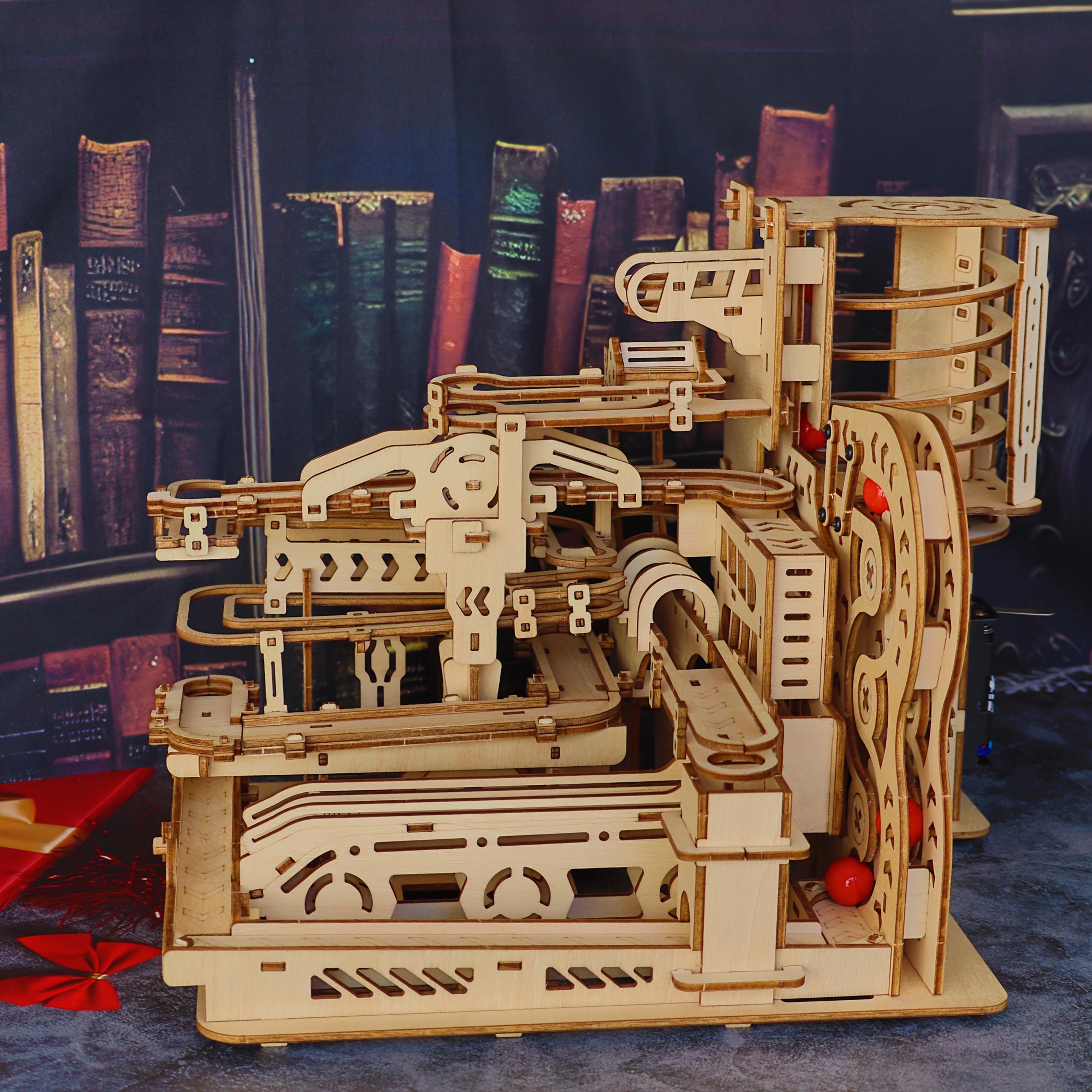 [3D Wooden Marble Run Kit] 3D Puzzle Wooden Marble Run Model Building Kit – DIY Mechanical Puzzle Assembly, Wood Crafts for Adults & Teens 14+ Years Old, Detailed Wooden Model Kit with Colorful Marbles, Educational STEM Toy, Creative Gift Idea, Marble Run Toy, Educational Toy, Detailed Craftsmanship, Durable Construction