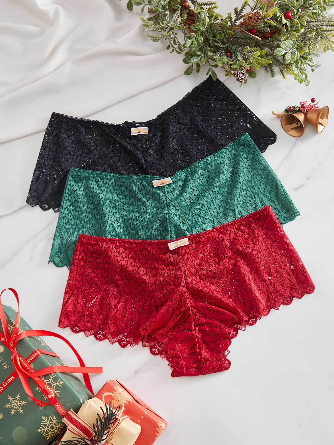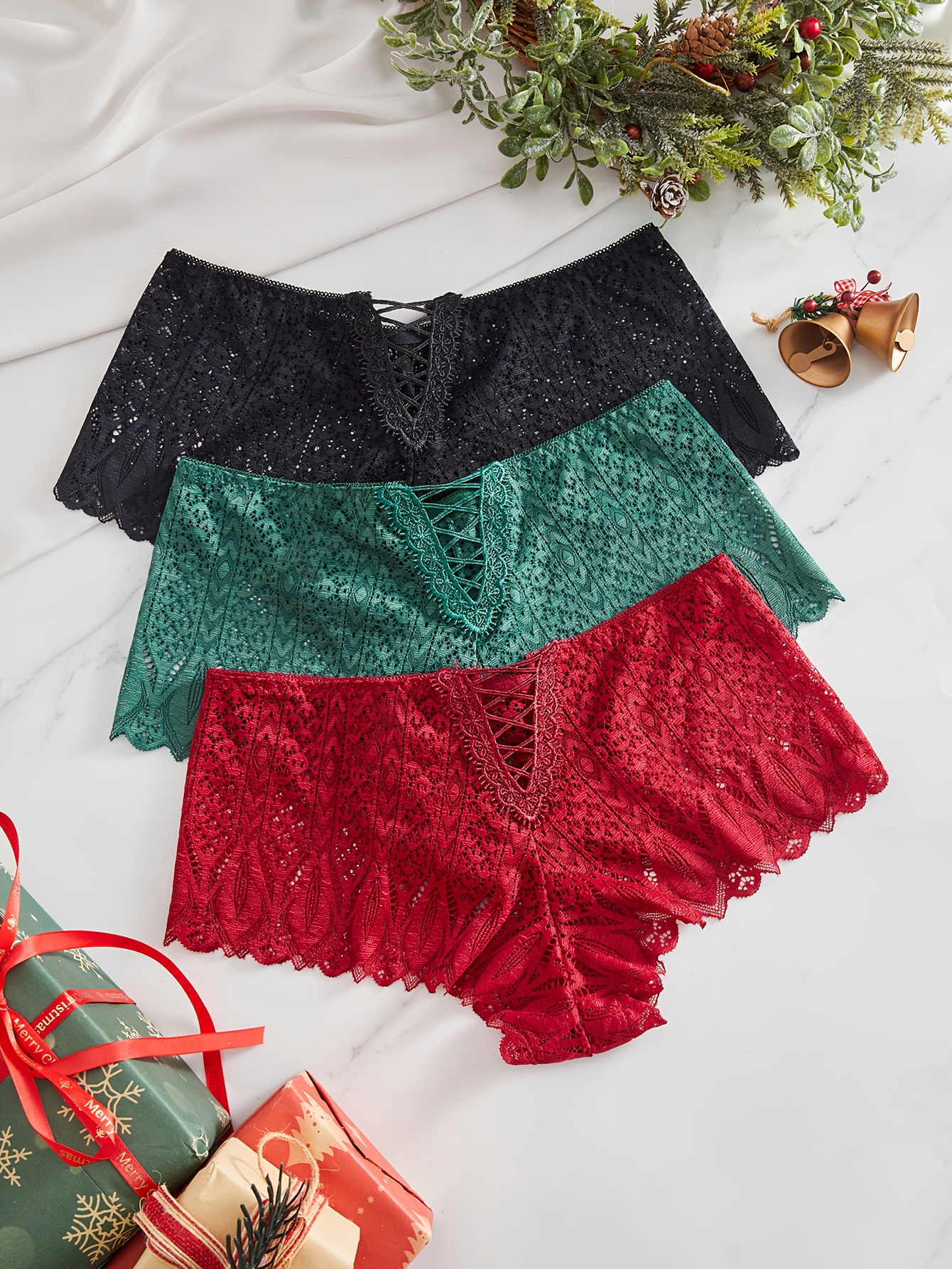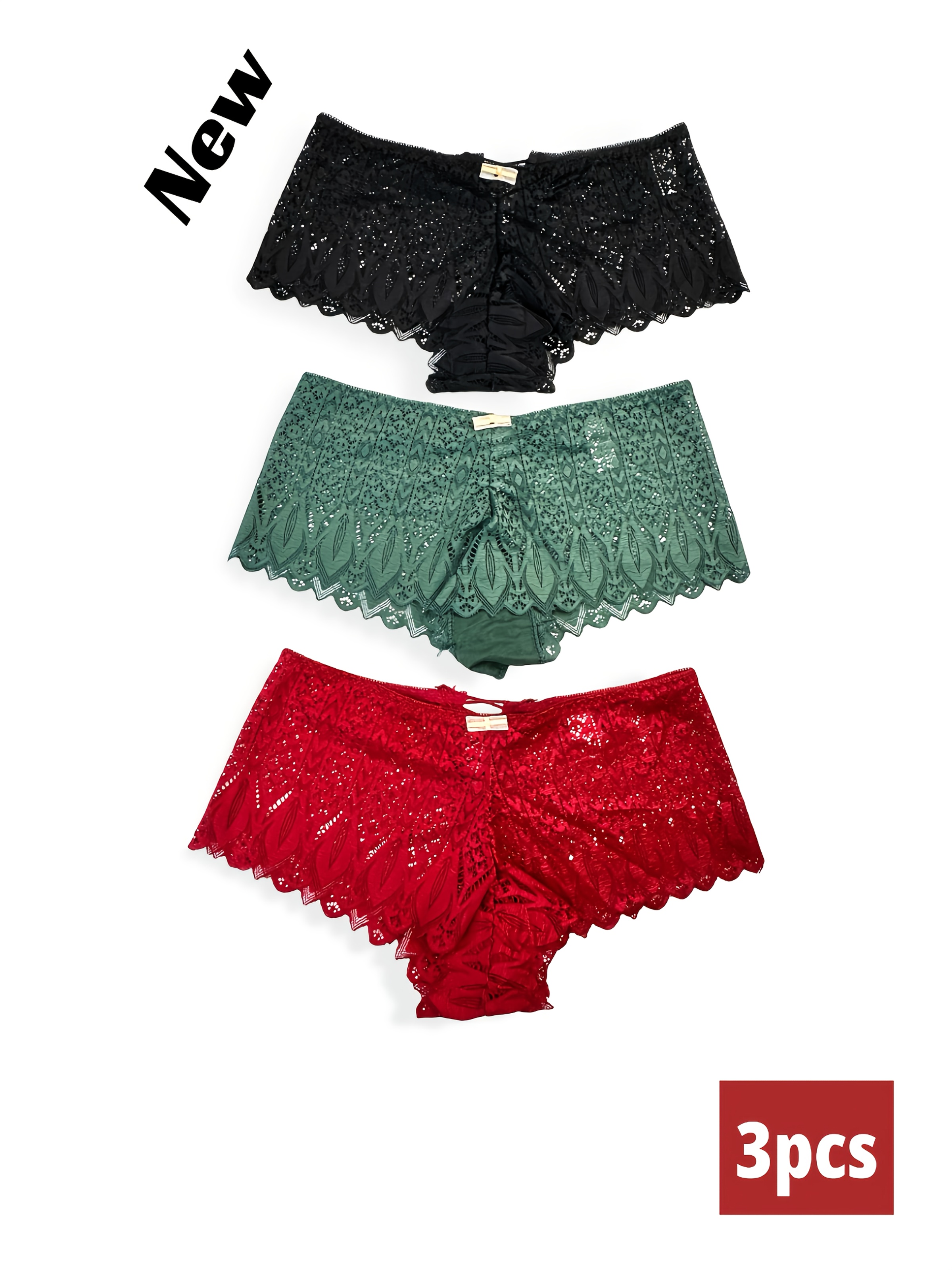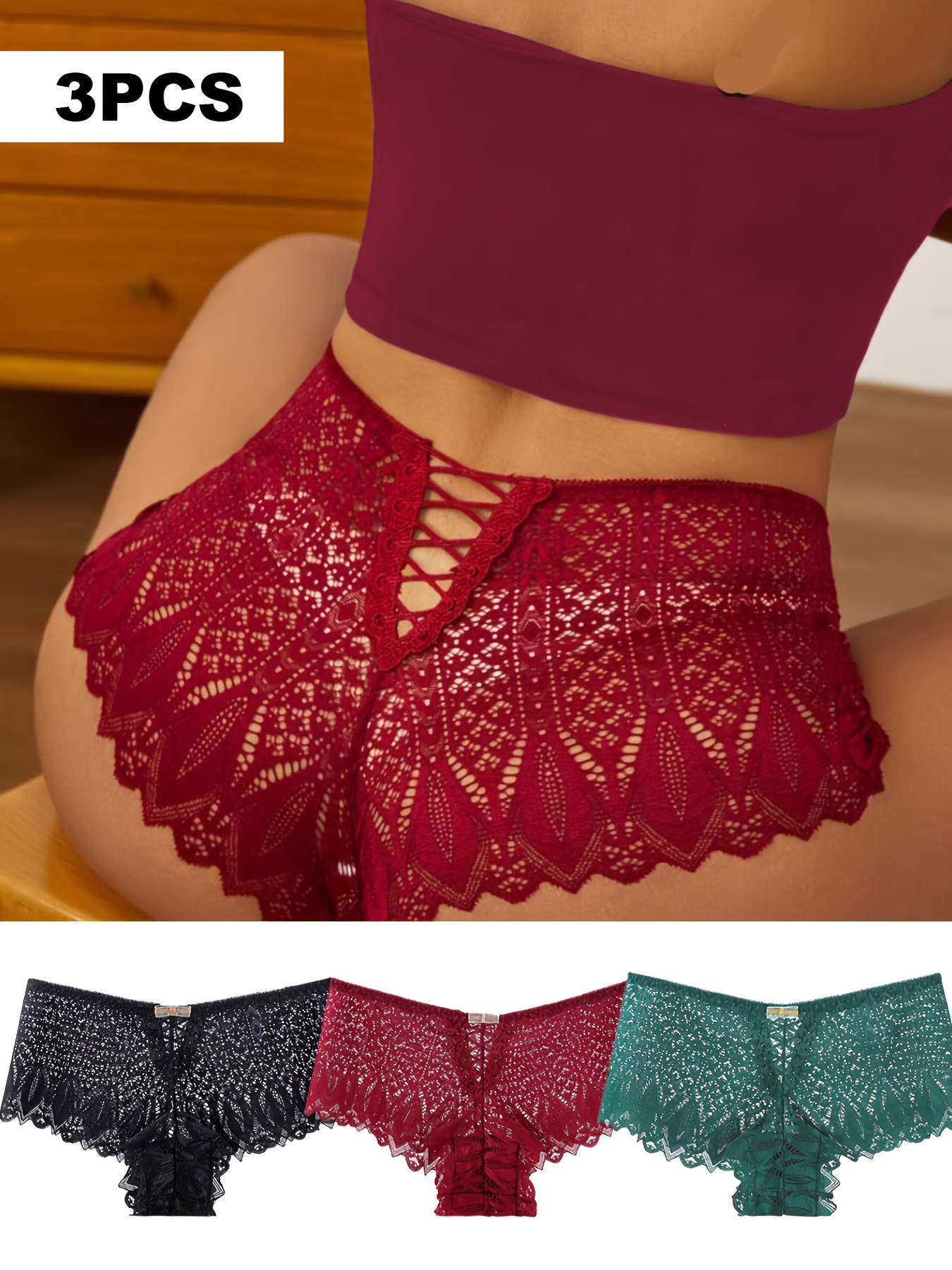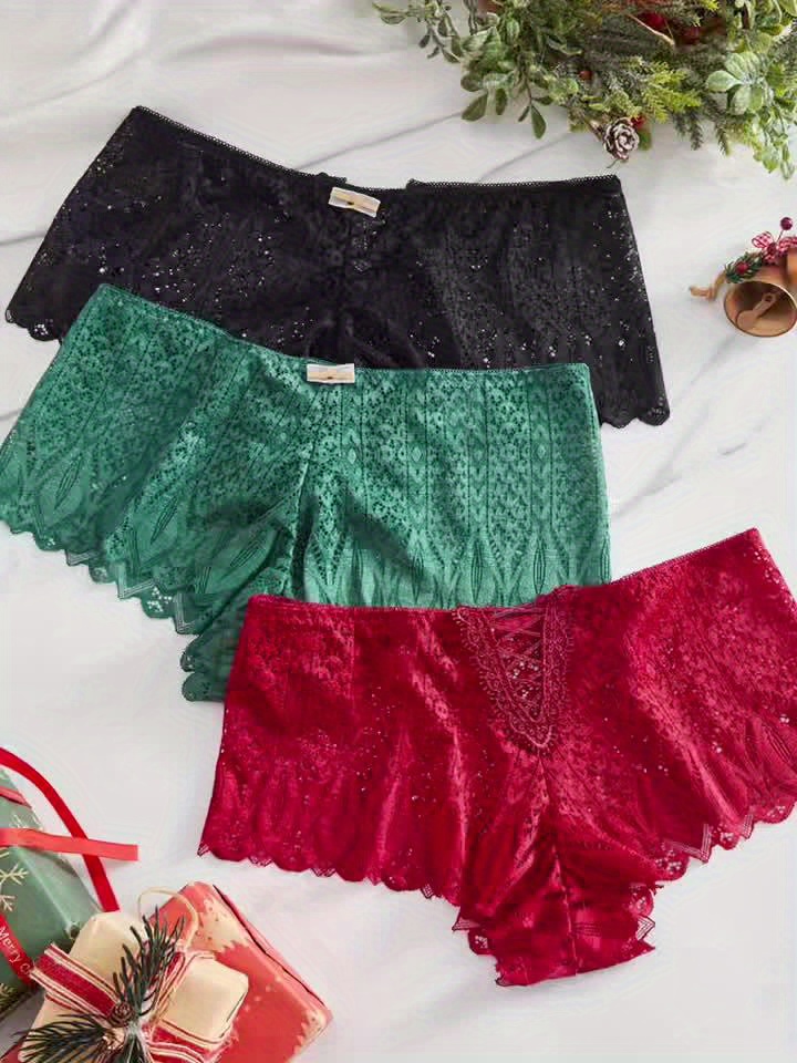 3pcs Comfortable Breathable Women’s Sexy Lace Seamless Underwear for Christmas Gifts to Wife Girlfriend Valentine’s Day