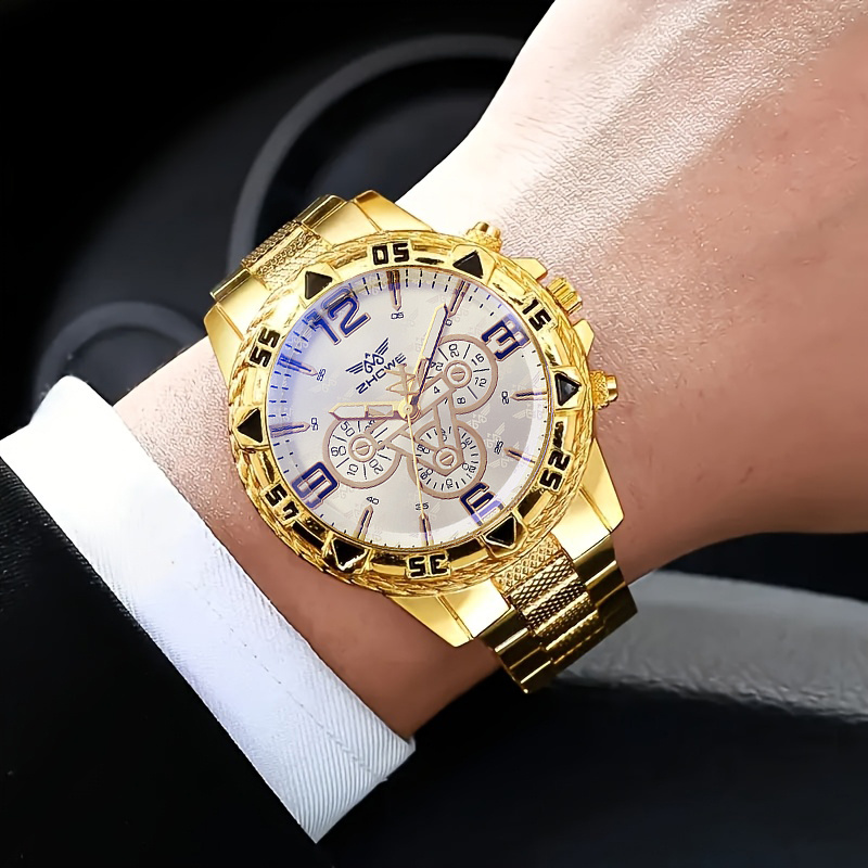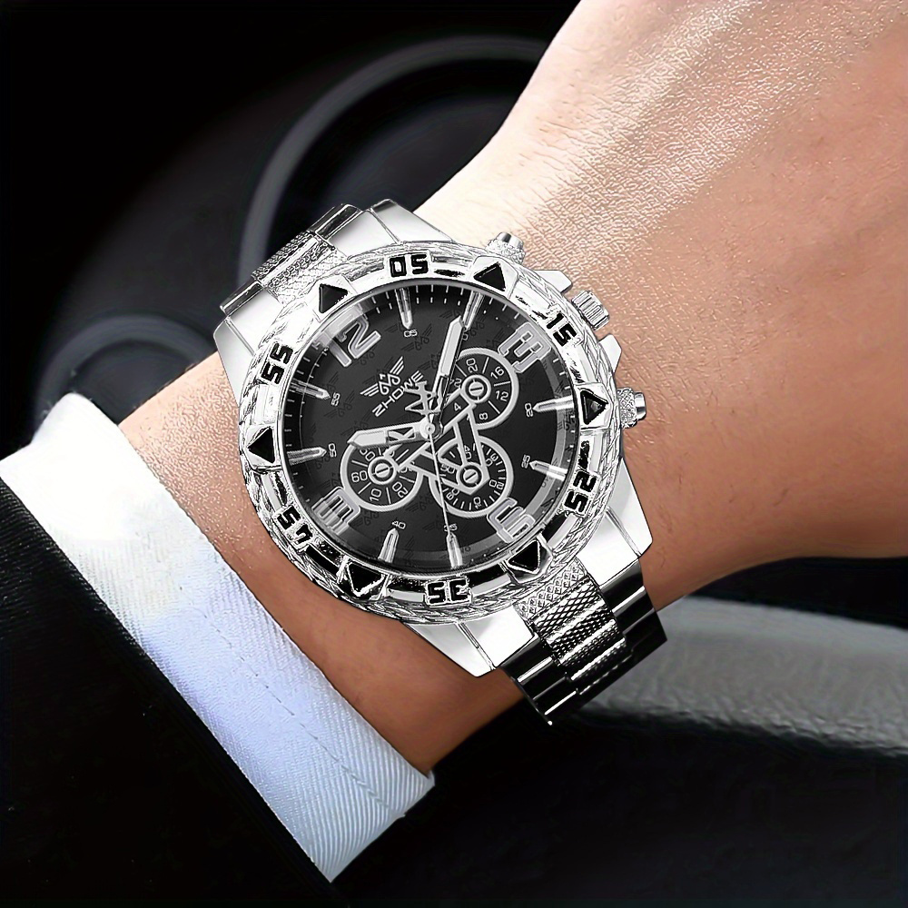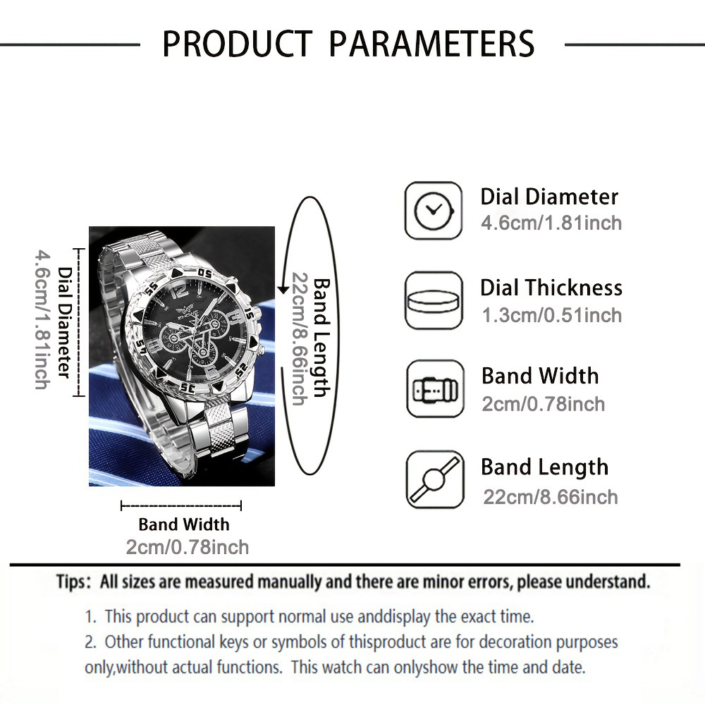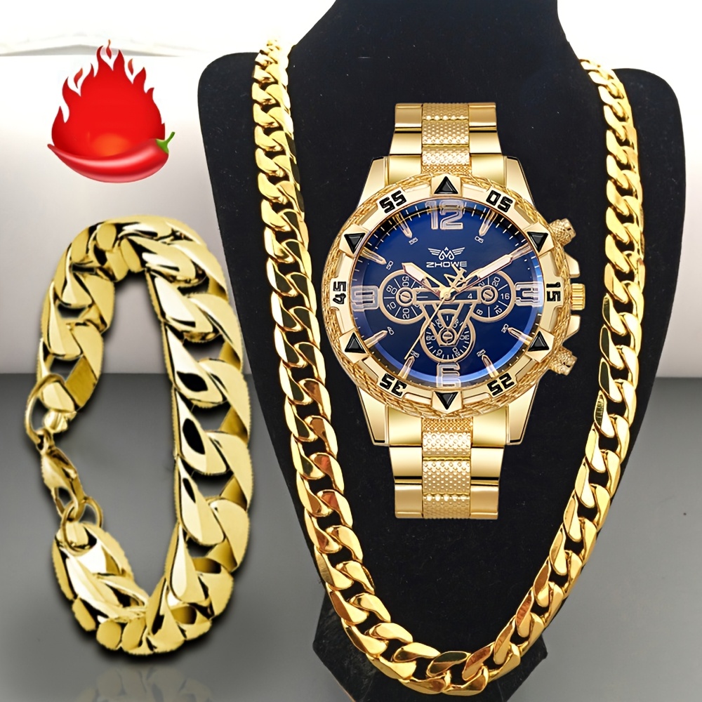 3pcs Luxury Men’s Quartz Watch & Bracelet Set with Necklace – Stainless Steel Strap, Large Dial Analog Business Watches, Round Alloy Case – Durable Watch Gift Suitable for Christmas, Thanksgiving, Day of the Dead – Elegant Men’s