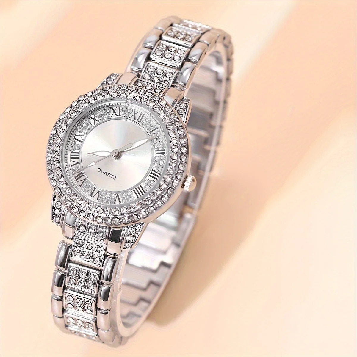 3pcs Luxury Women’s Watch & Jewelry Set – Vintage Roman Numeral Quartz Watch with Rhinestone Cross Pendant Necklace & Bracelet, Alloy Case & – Elegant,, Prom – Suitable for Weddings, Parties, Daily Wear