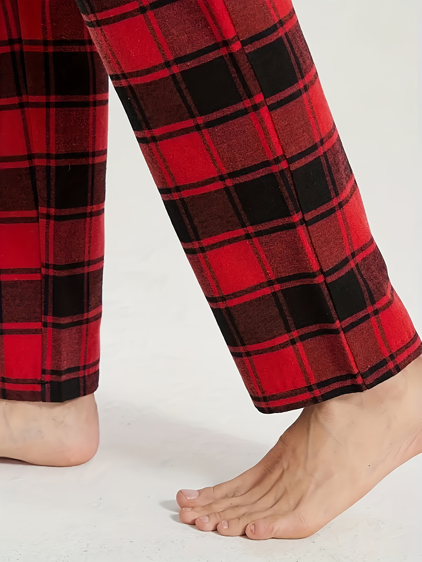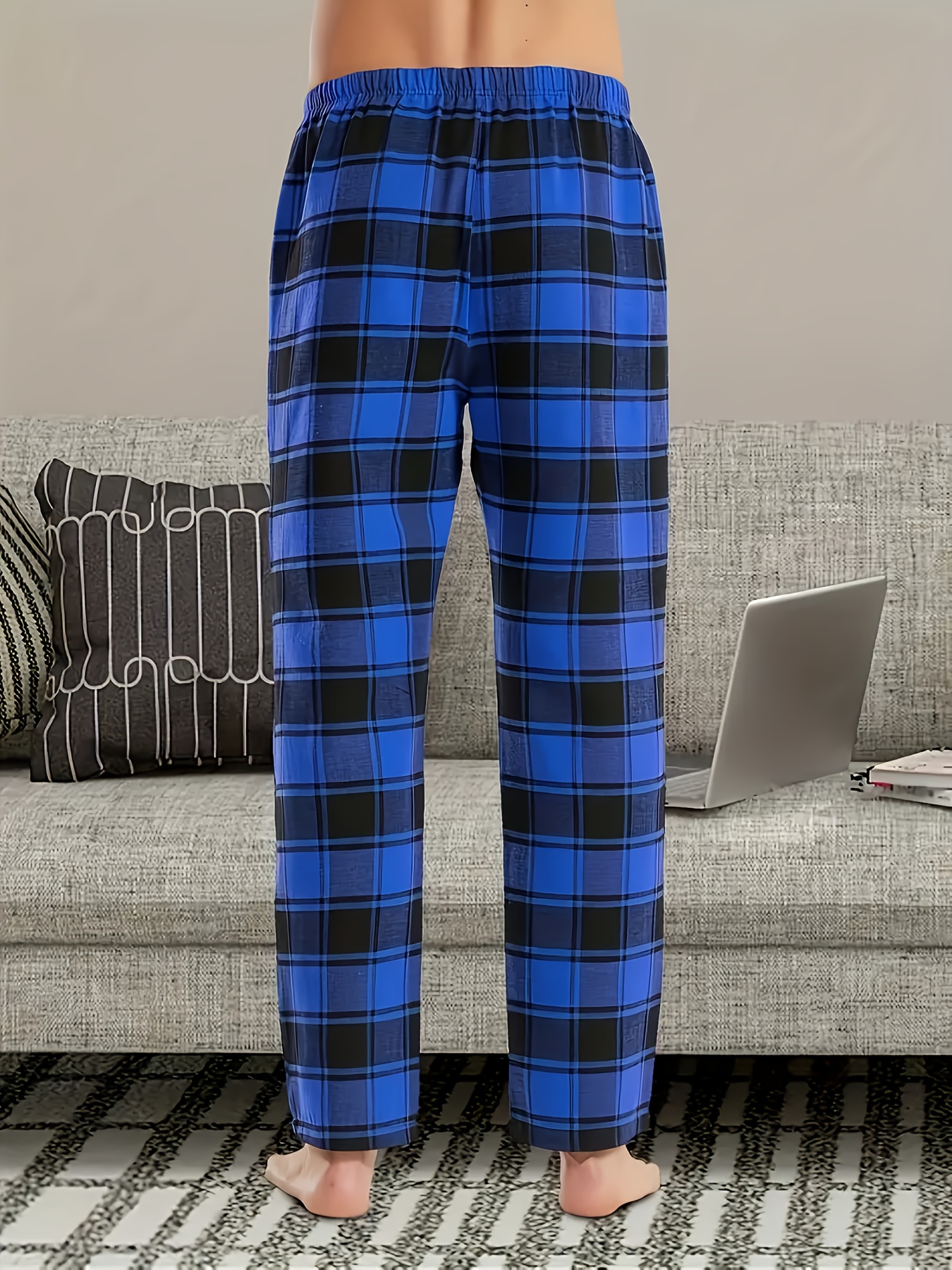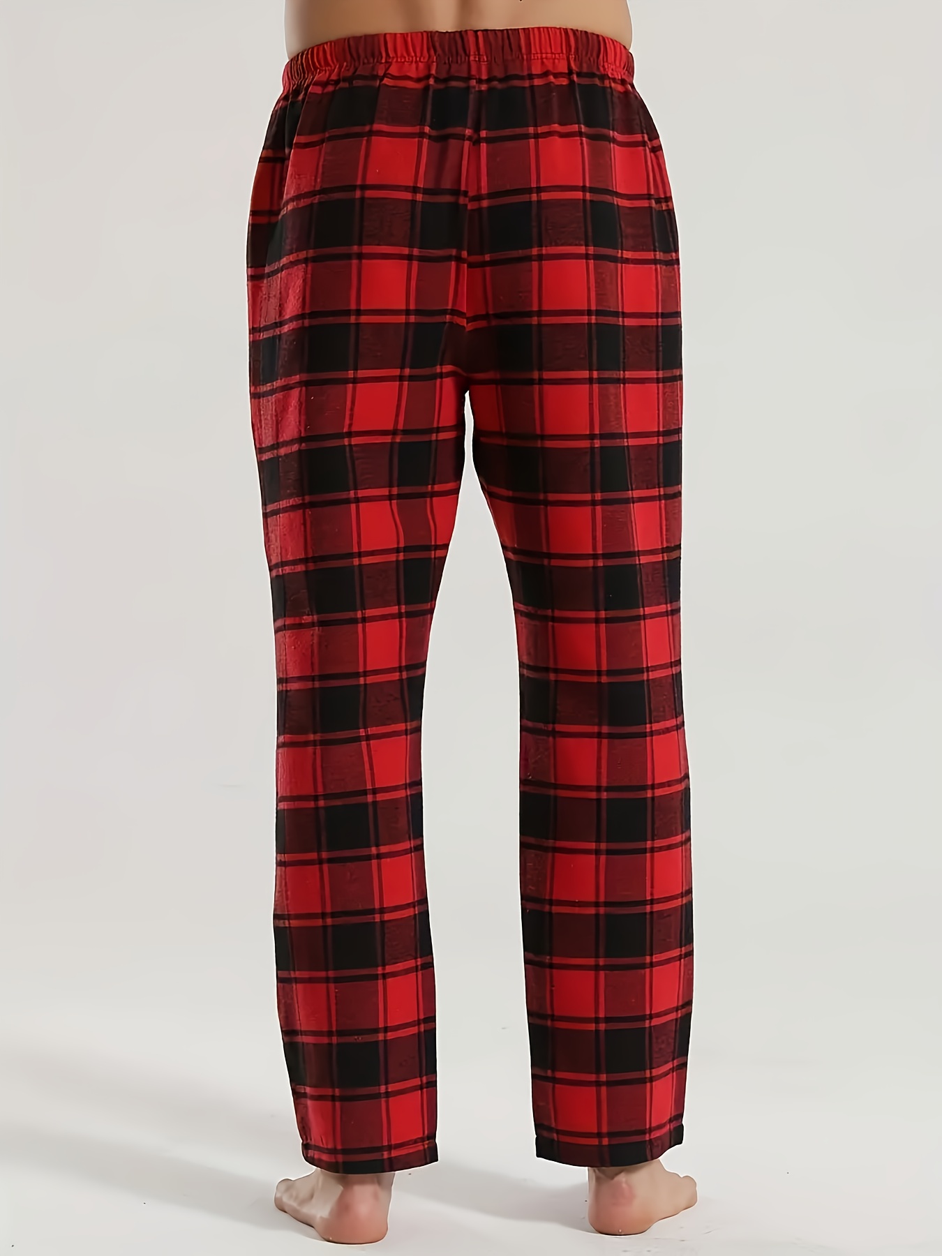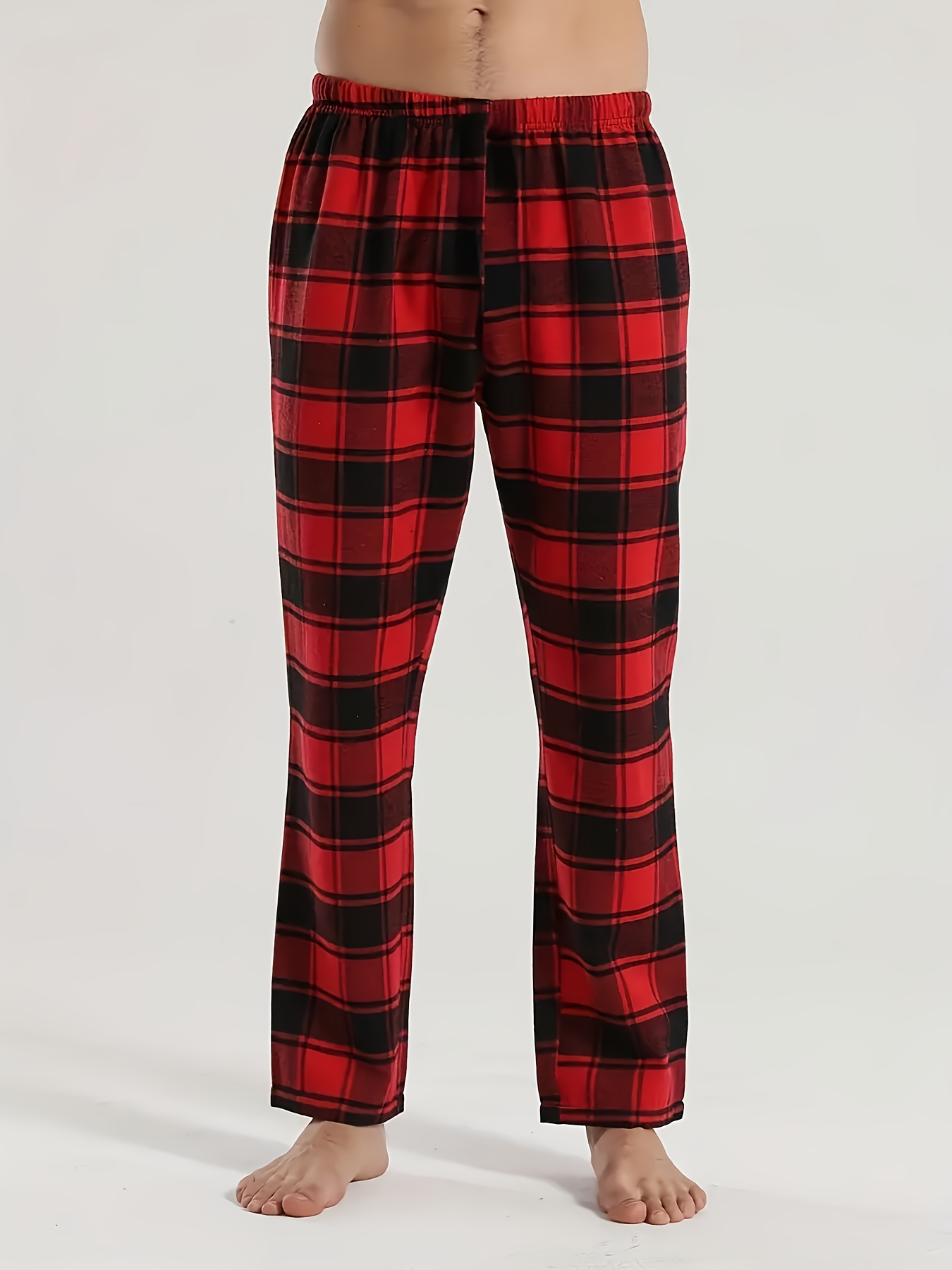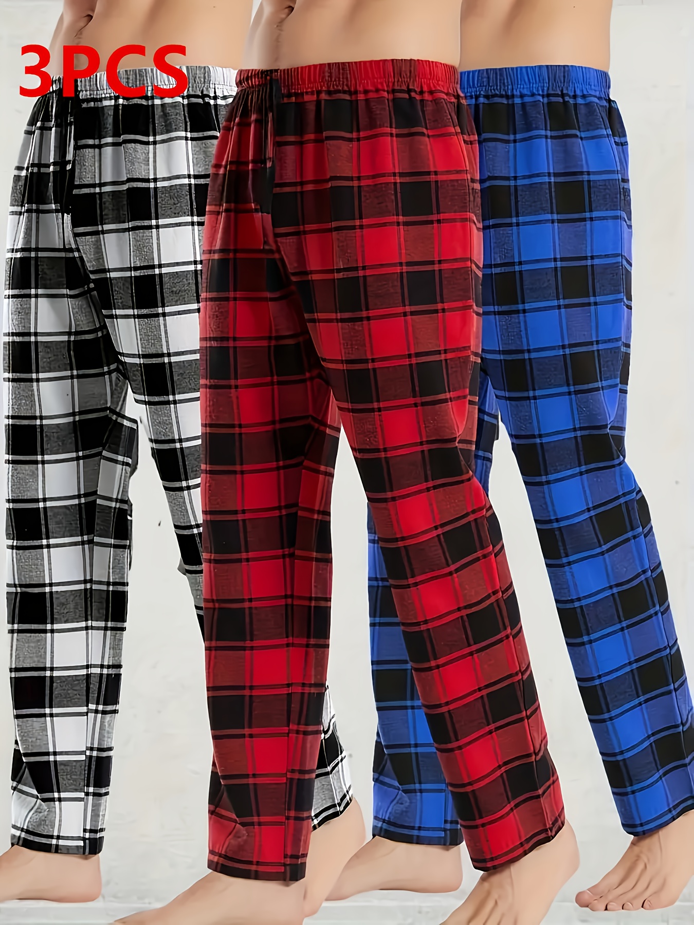3pcs Men’S Casual Plaid Pants – All-Season Comfort, Non-Stretch Fabric, Regular Fit with Heat Transfer Print, Black/White/Red/Blue/Gray Checkered Design for Year-Round Loungewear & Casual Attire, Comfortable Pajamas, Trendy Pants, Durable Pants