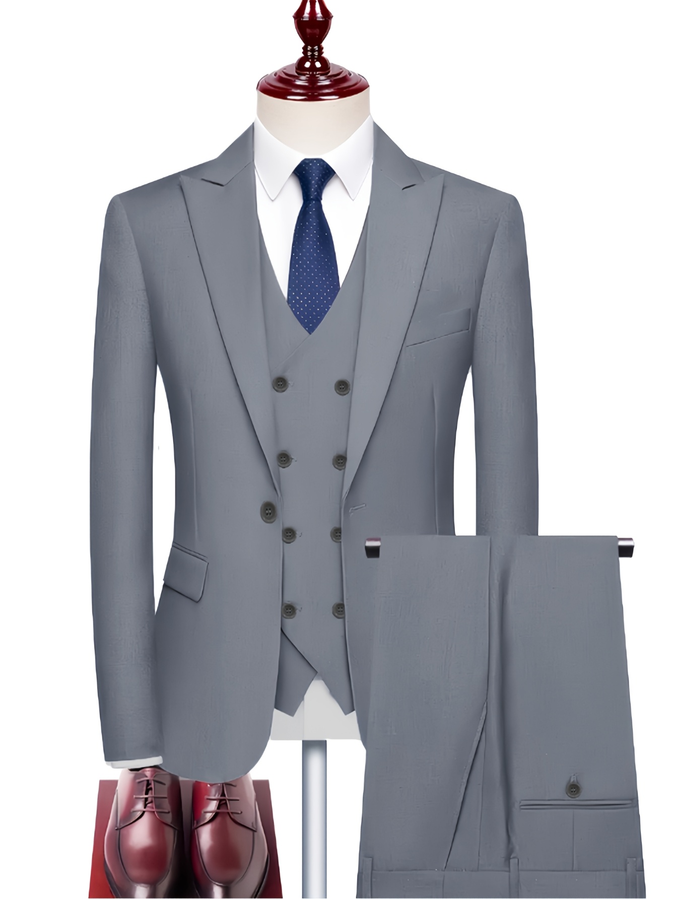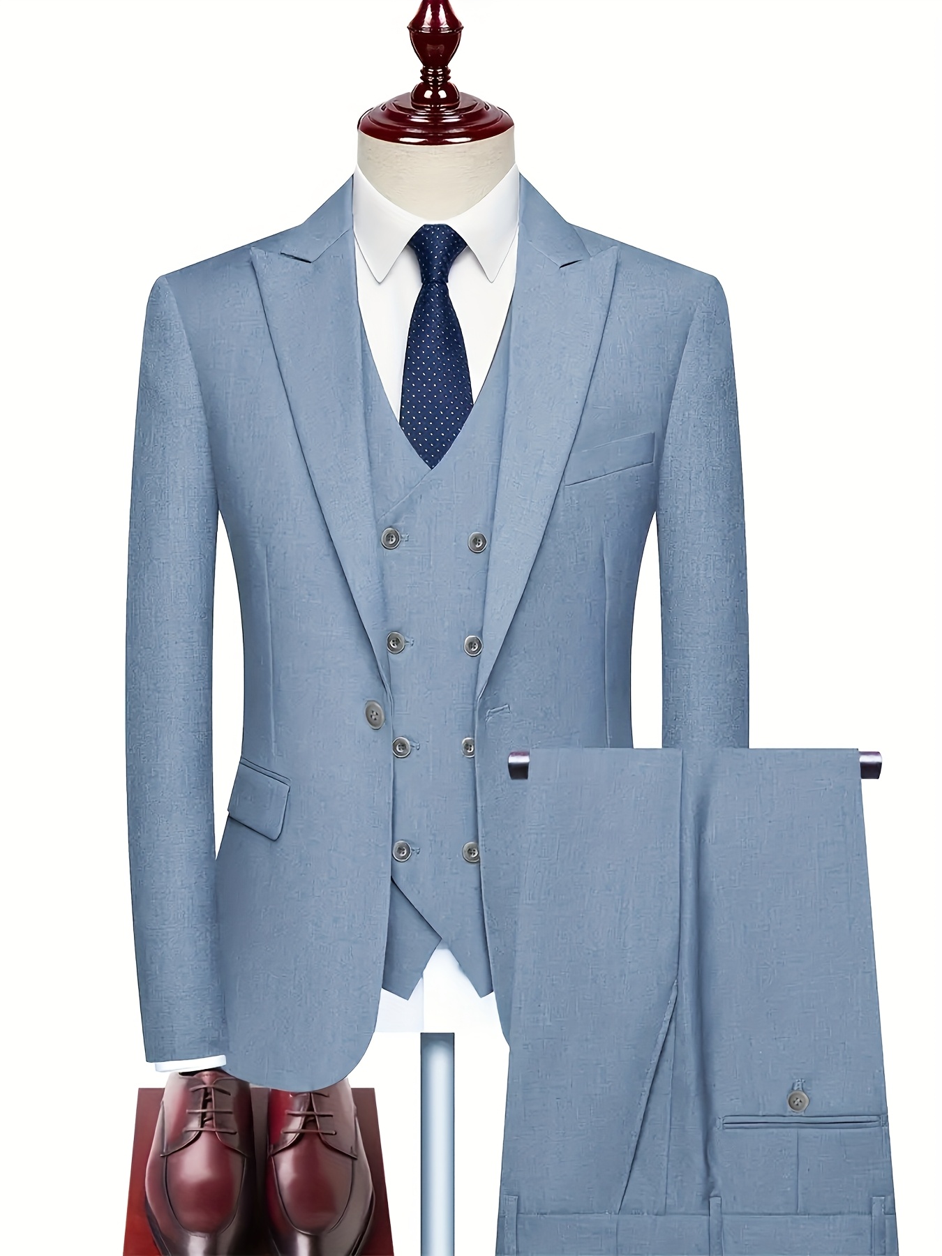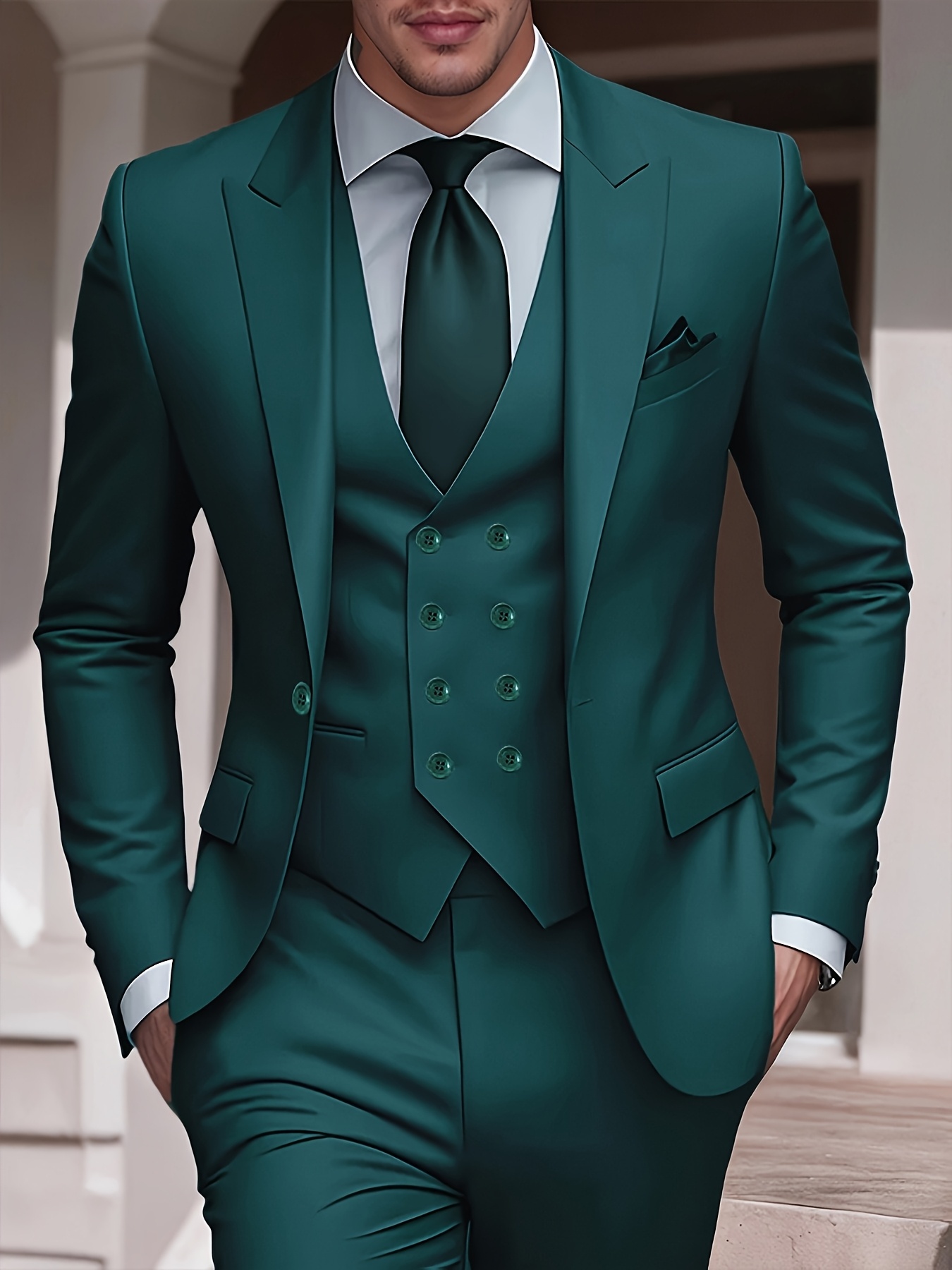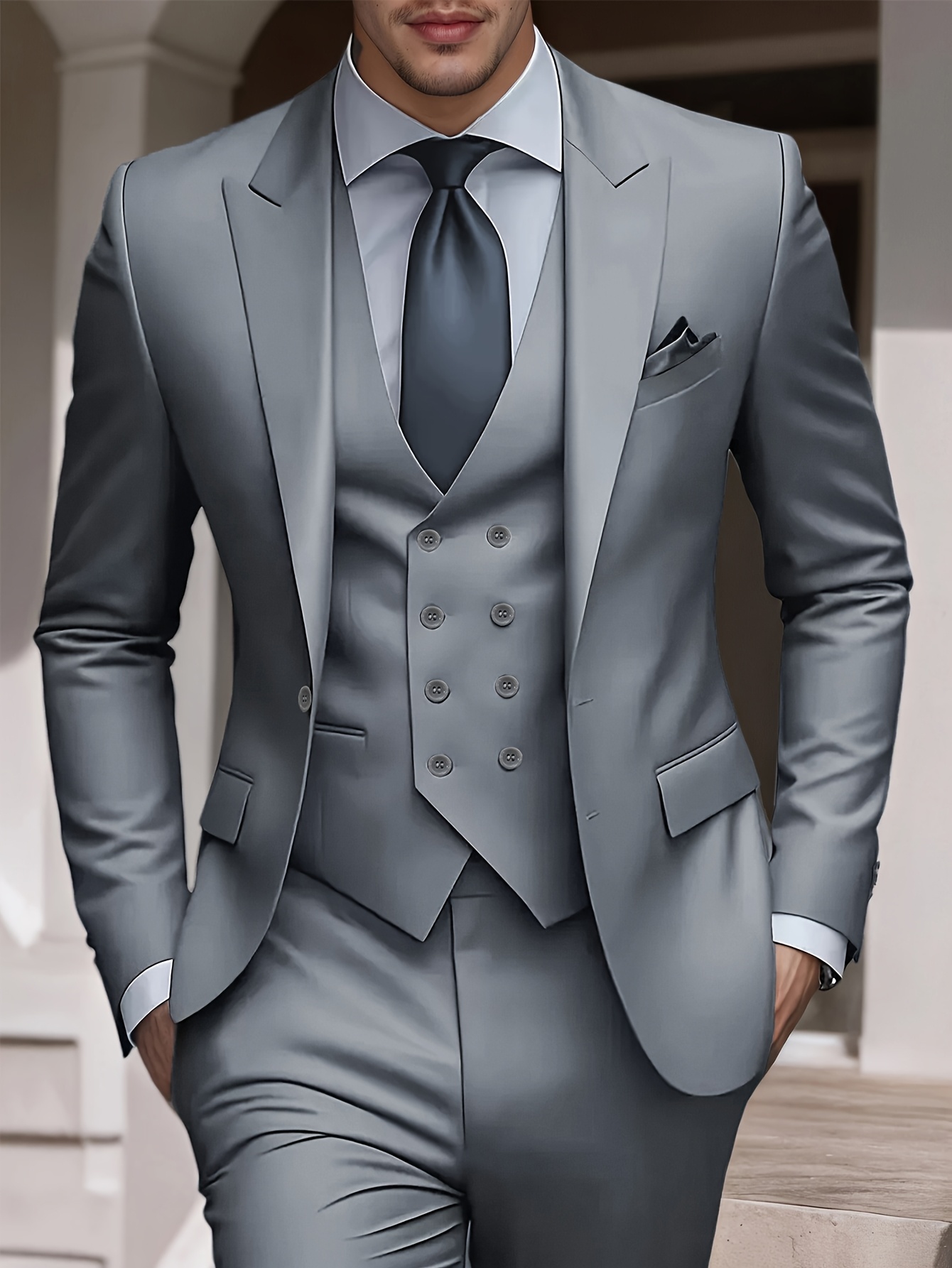 3pcs Men’S Solid Color Suit, Stylish And Refined for Business Or Wedding Occasions