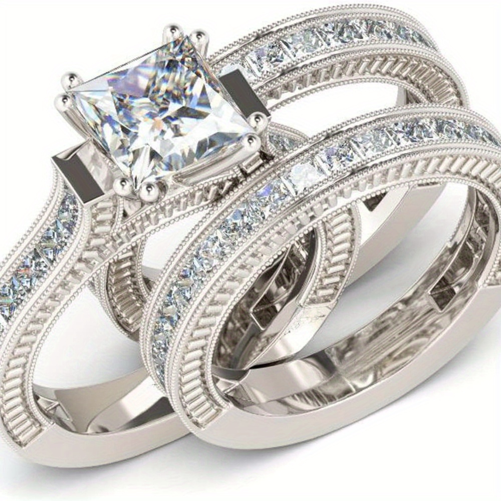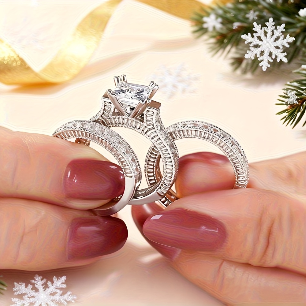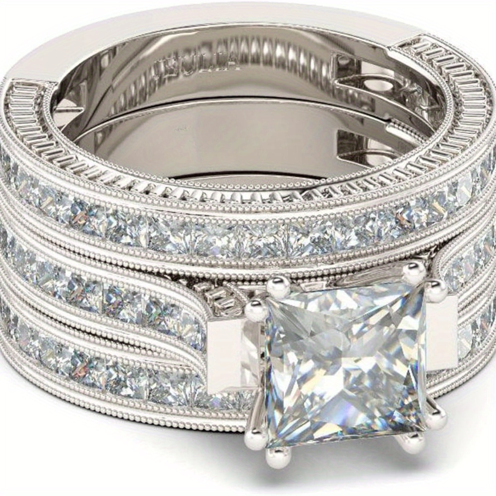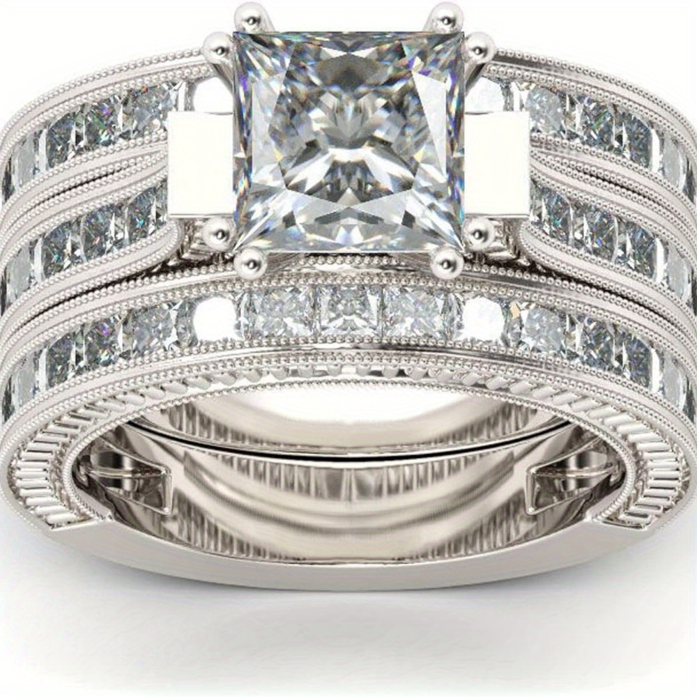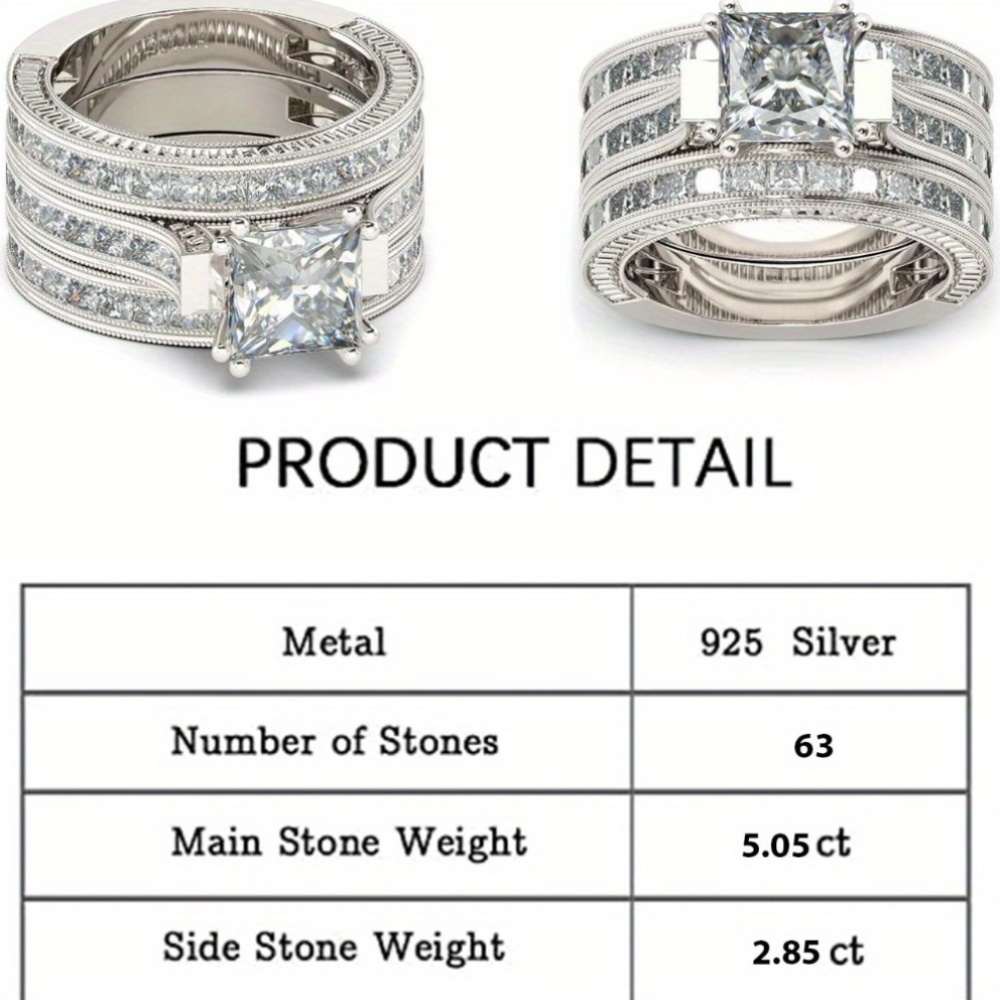 [3pcs Moissanite Bridal Set] 3pcs Sterling Silver Halo Moissanite Bridal Set | Princess Cut Ring Set for Engagement Wedding Band, Anniversary Promise, Valentines Jewelry Gift with Box, For Teenager