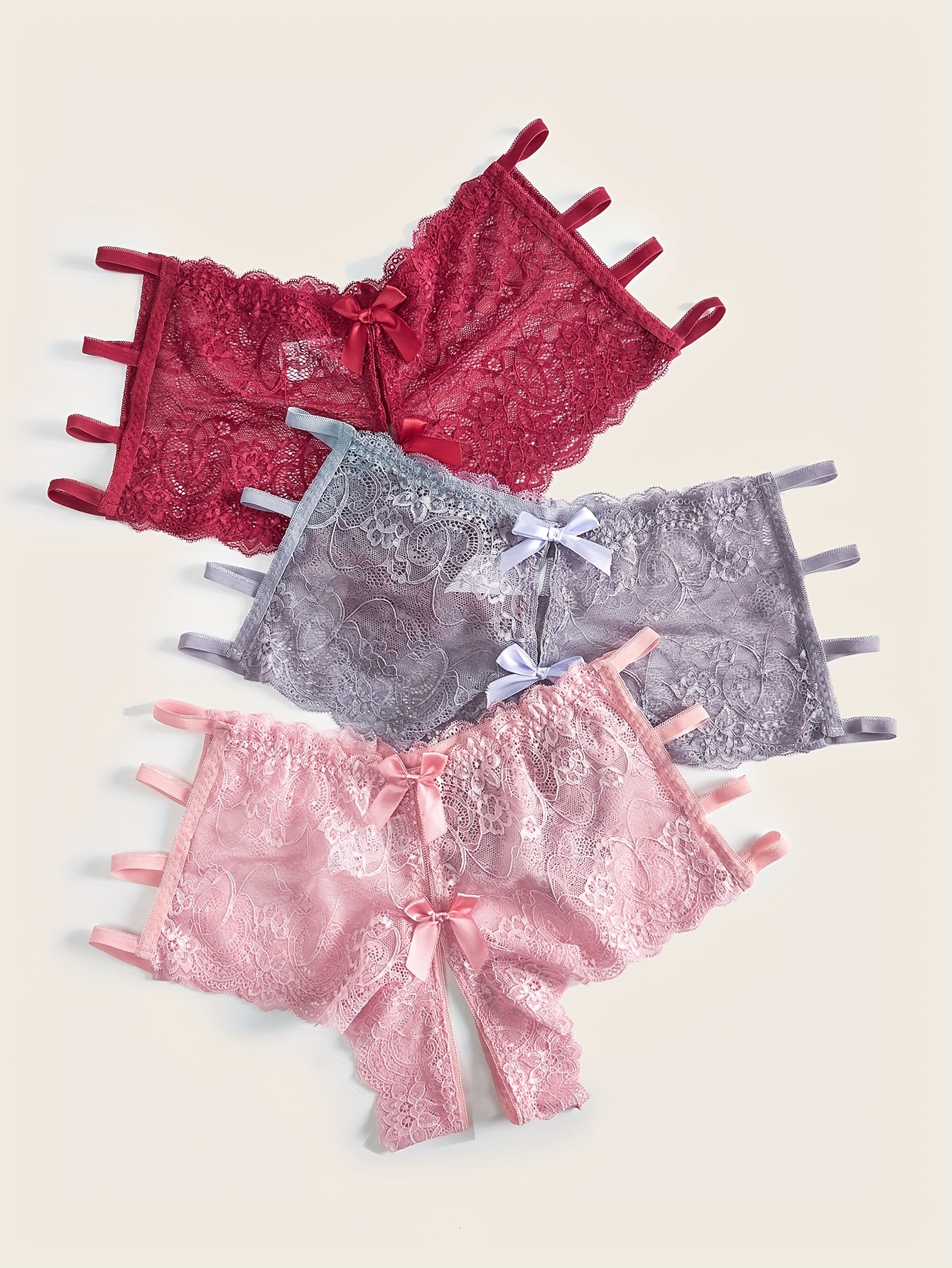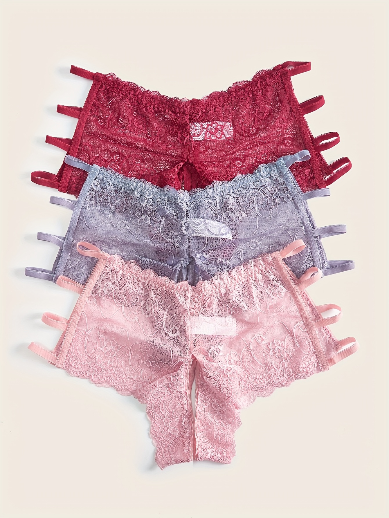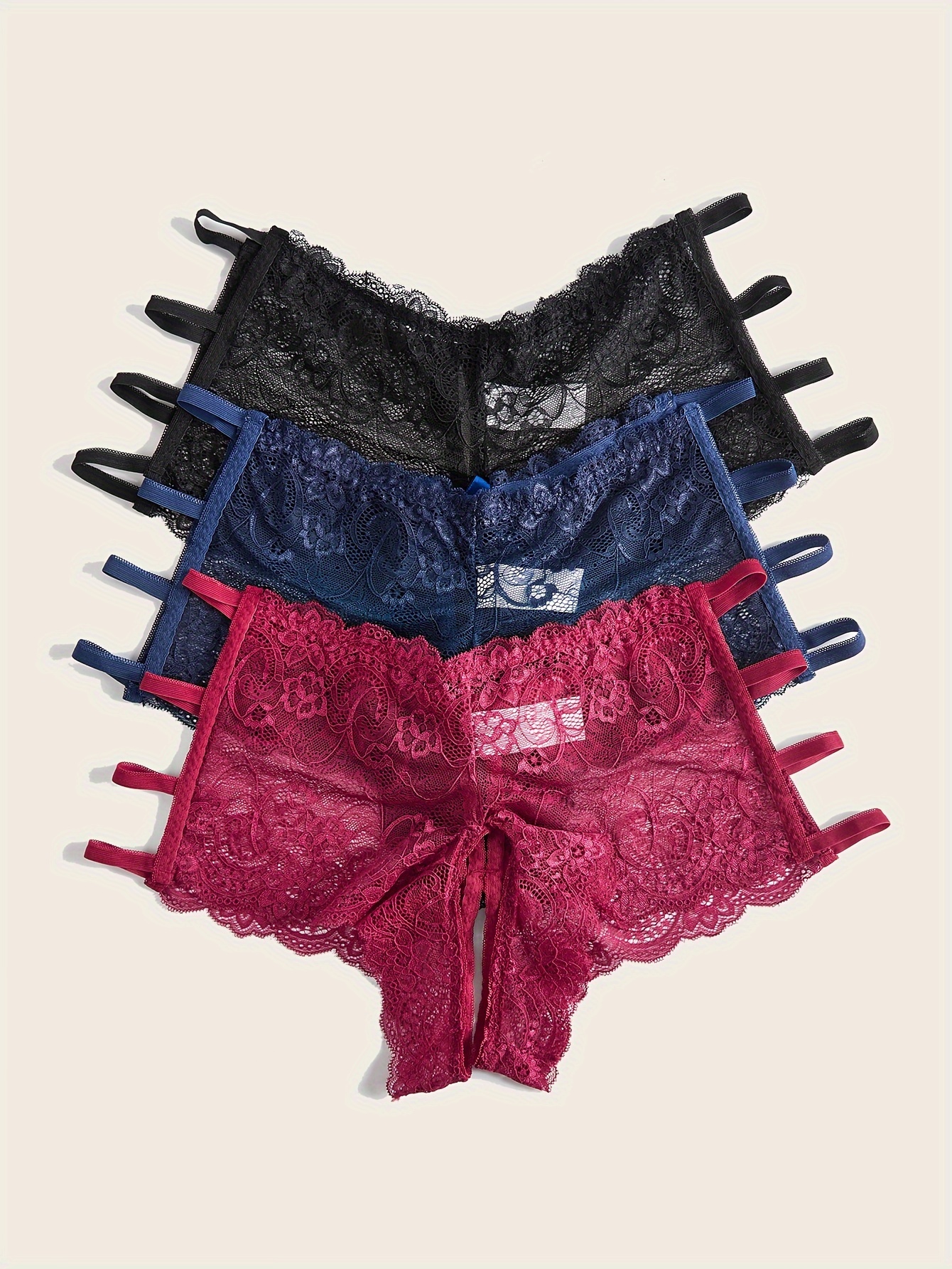 [3pcs Plus Size Lace Panties] 3pcs Women’s Plus Size Sexy Floral Lace Brief | Open Crotch Mid Waist Panties