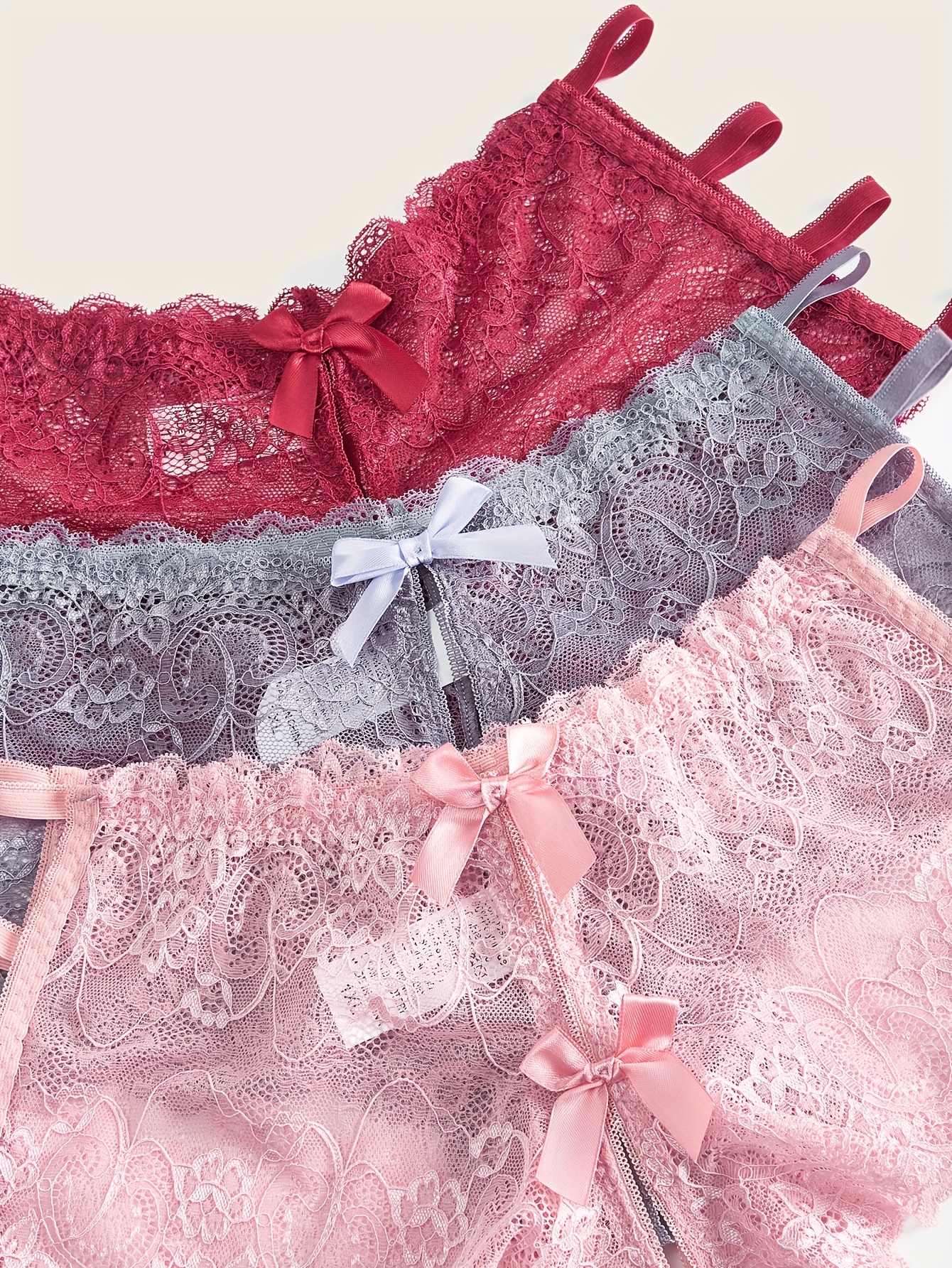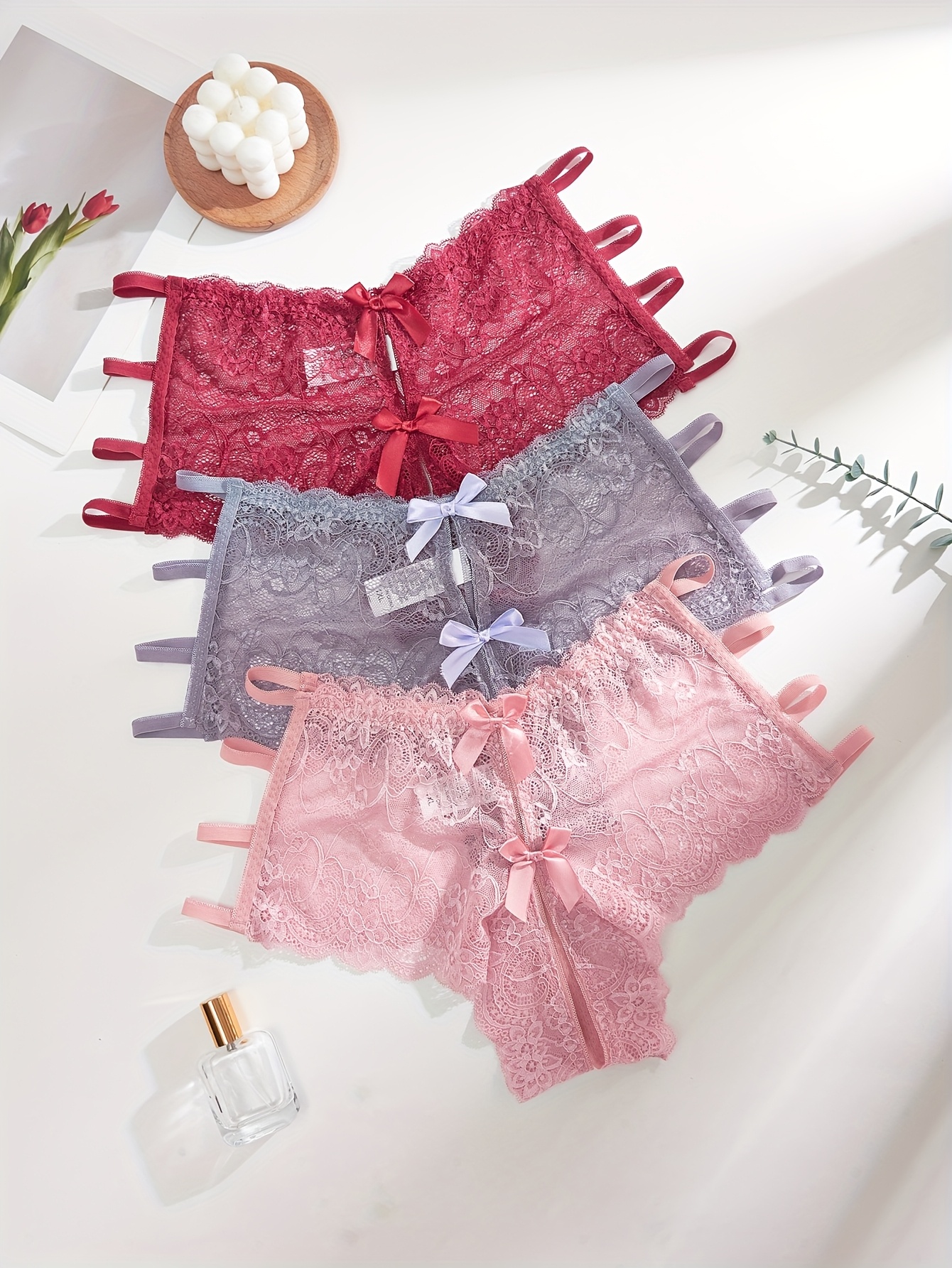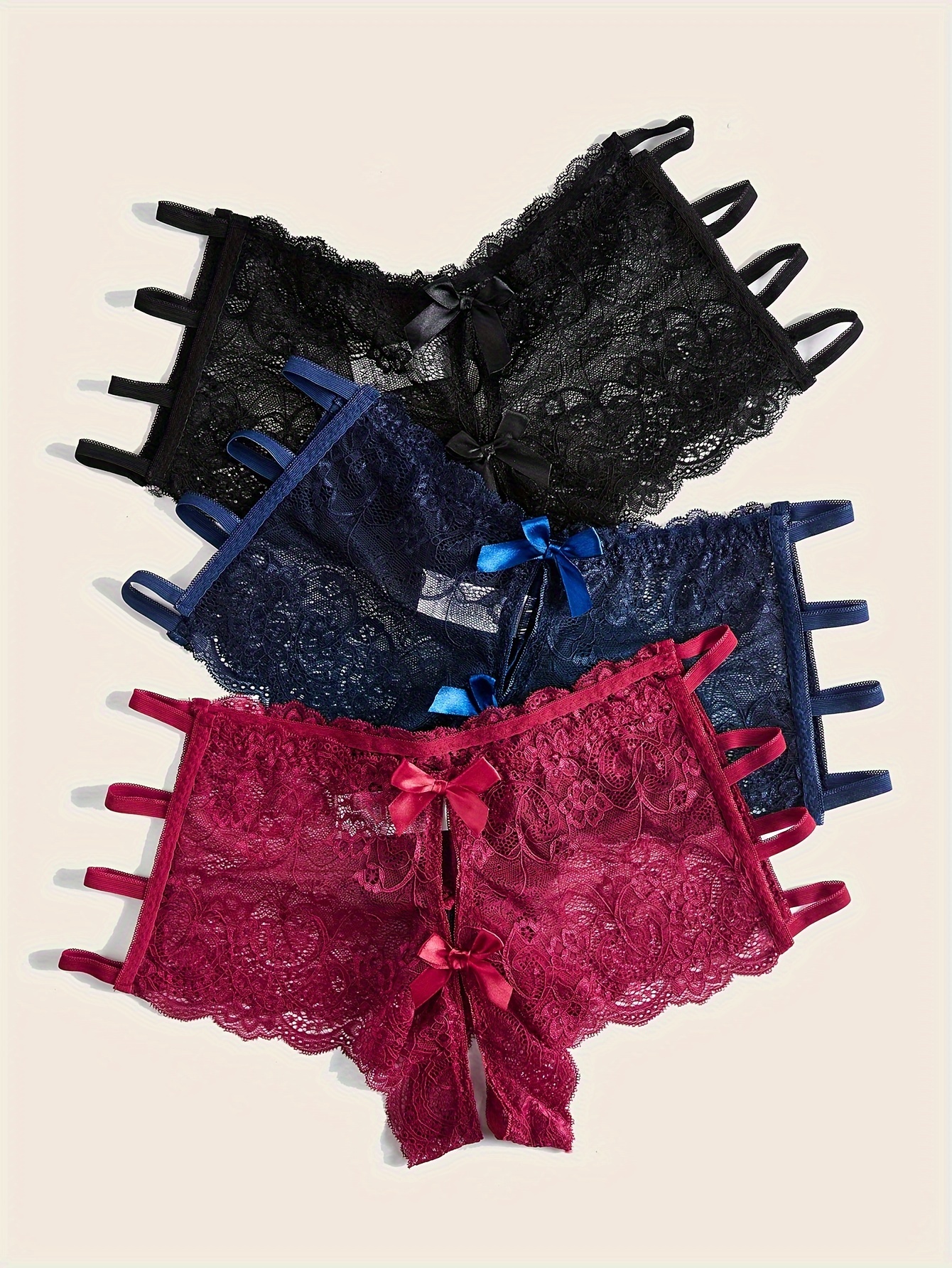 [3pcs Plus Size Lace Panties] 3pcs Women’s Plus Size Sexy Floral Lace Brief | Open Crotch Mid Waist Panties