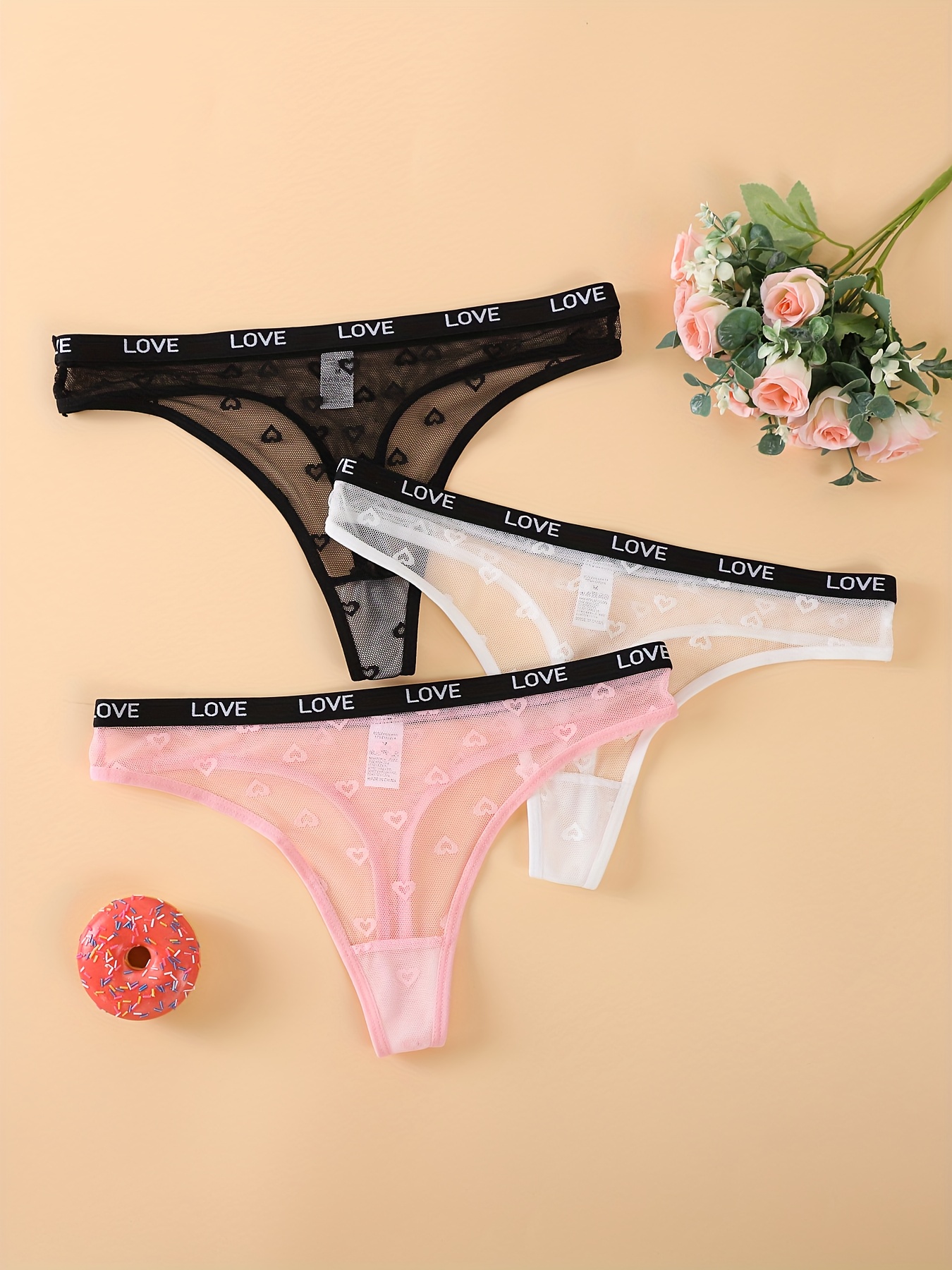 3pcs Women’S Thong Underwear – Soft Breathable Low-Rise Panties with Lace Trim & Heart Print, Elastic Comfort Fit, Pink/White/Black, Everyday & Special Occasion Underwear for Women, Cute Underwear, Comfortable Lingerie, Playful Lingerie, Durable Lingerie, Stylish Lingerie, Comfort Seekers, Lingerie Essentials, Feminine Lingerie, Lightweight Lingerie, Women’S Lingerie