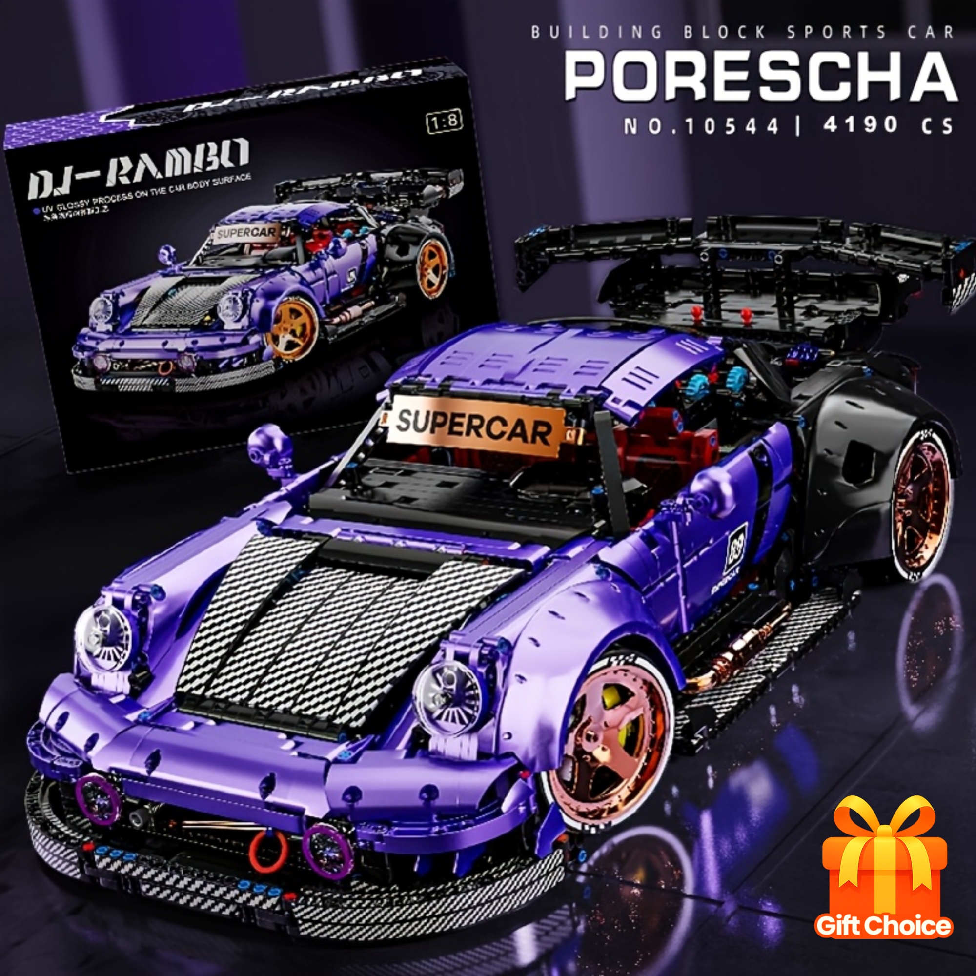 4190pcs Supercar Building Block Racing Model Toys, Adult Collectible Puzzle Sets, Birthday Gifts for Boys And Girls Halloween Decorations Christmas 1:8 Model Building Block Sports Car, Holiday Decorations, Miniature Vehicle, Detailed Replica, Highquality Bricks, Sturdy Assembly, Construction Kit, Gift for Adults, Car Enthusiasts